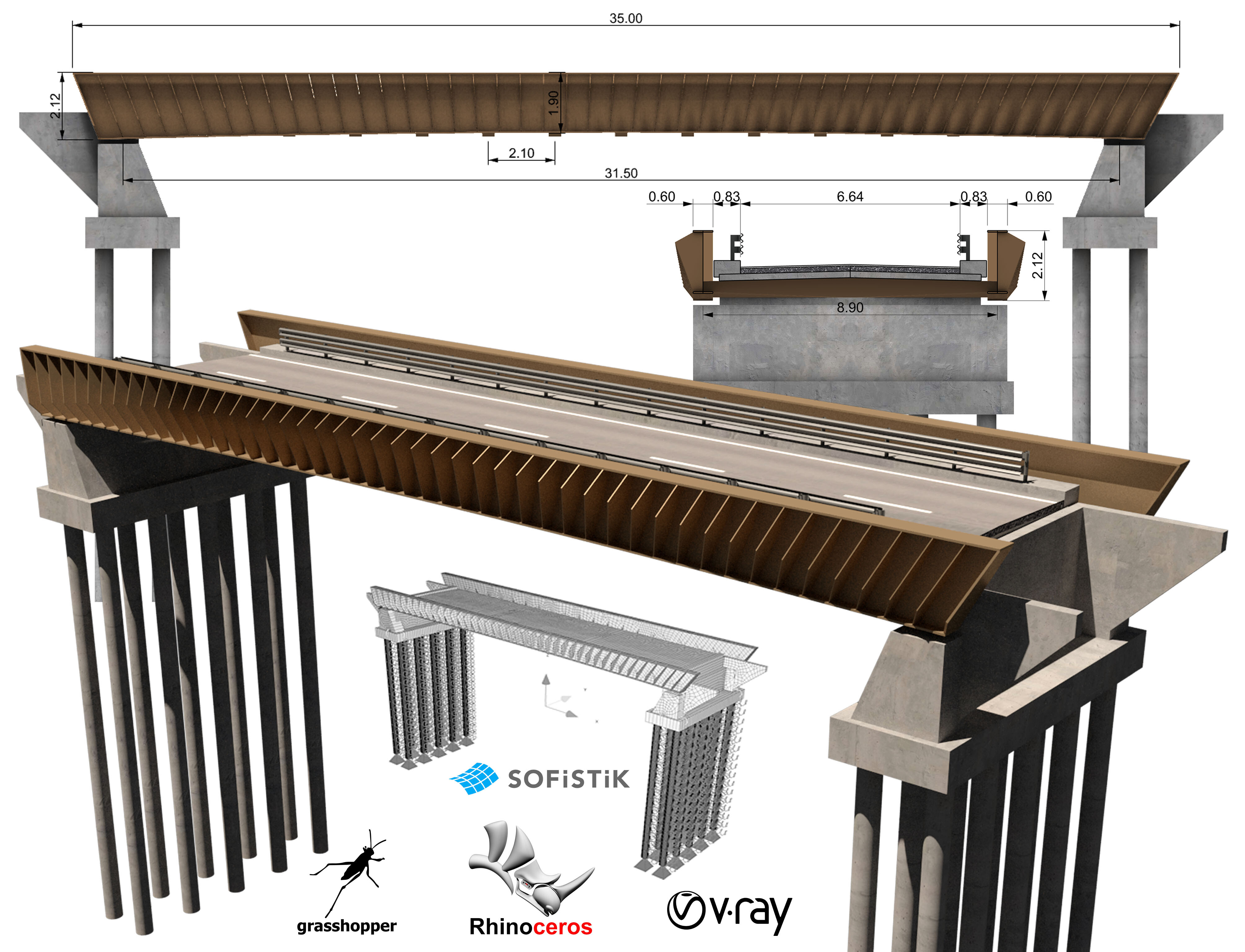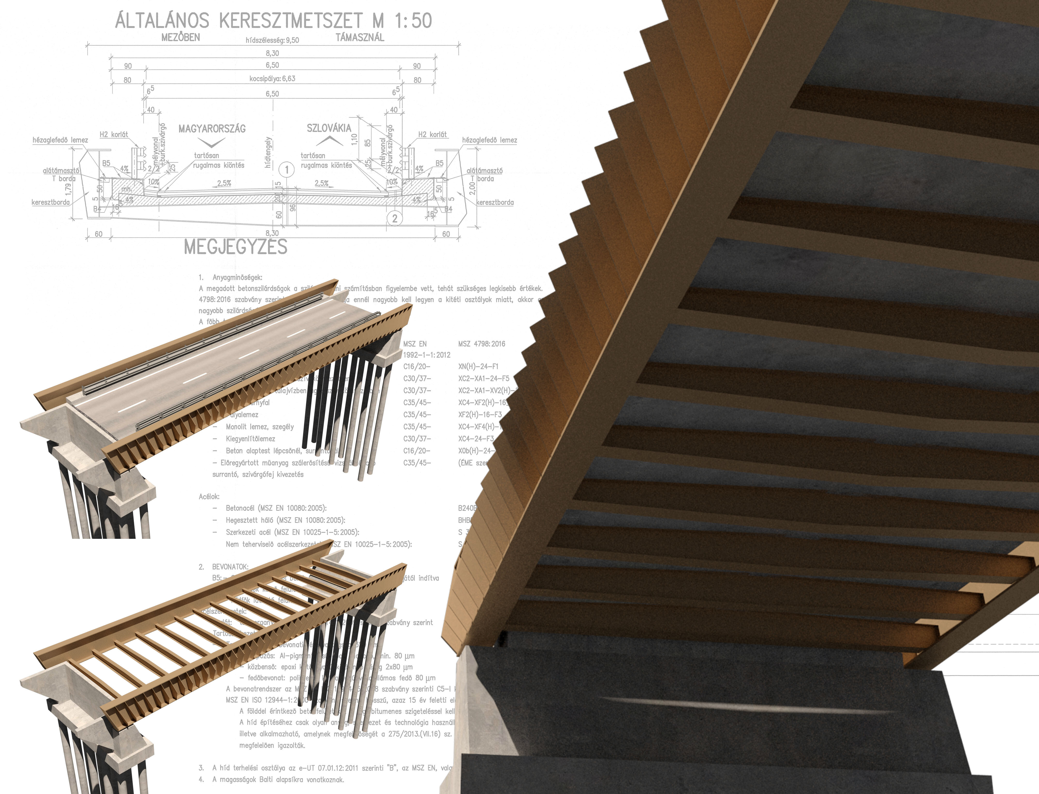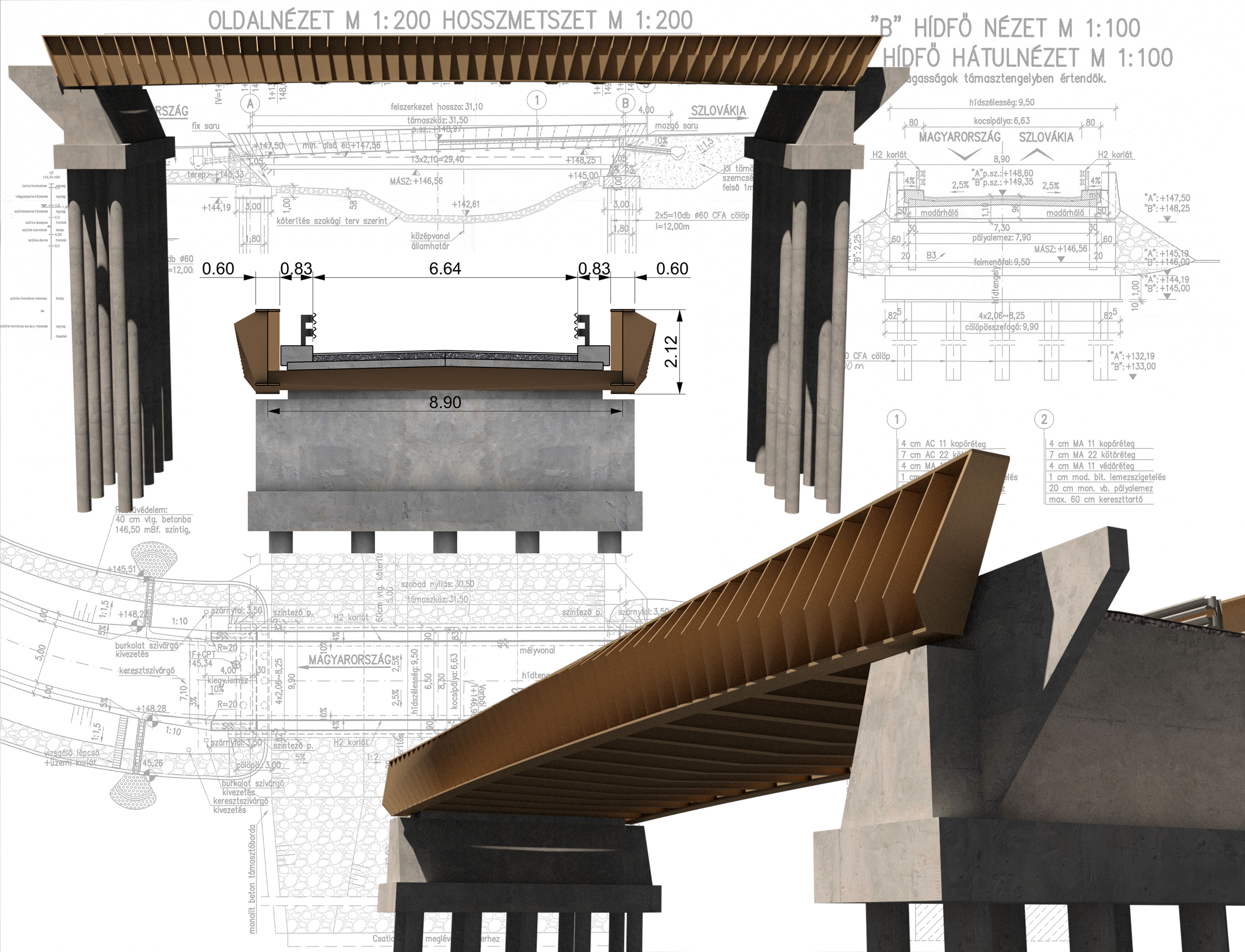A FŐMTERV-en belüli 3D-s tervezés egyik korai darabja mutatkozik meg ebben a hídban, ugyanis a teljes szerkezet 3D-s modellje Grasshopper-Rhino környezetben, míg a híd statikai modellje Grasshopper-Sofistik környezetben készült el.”