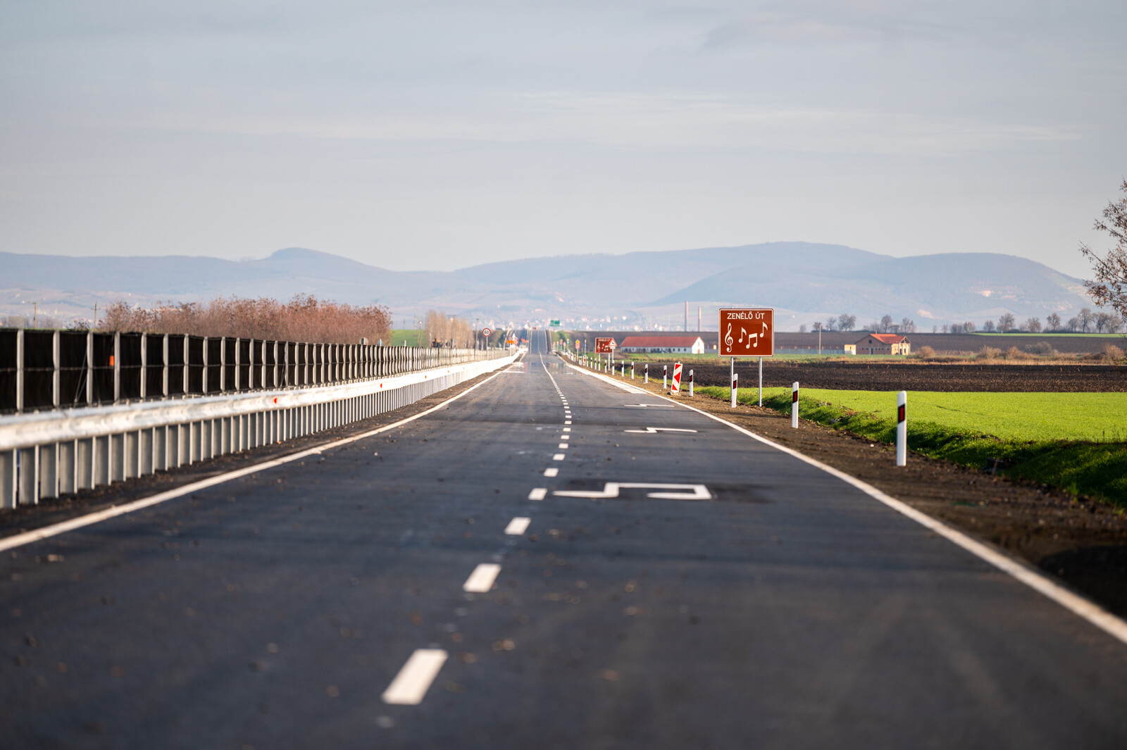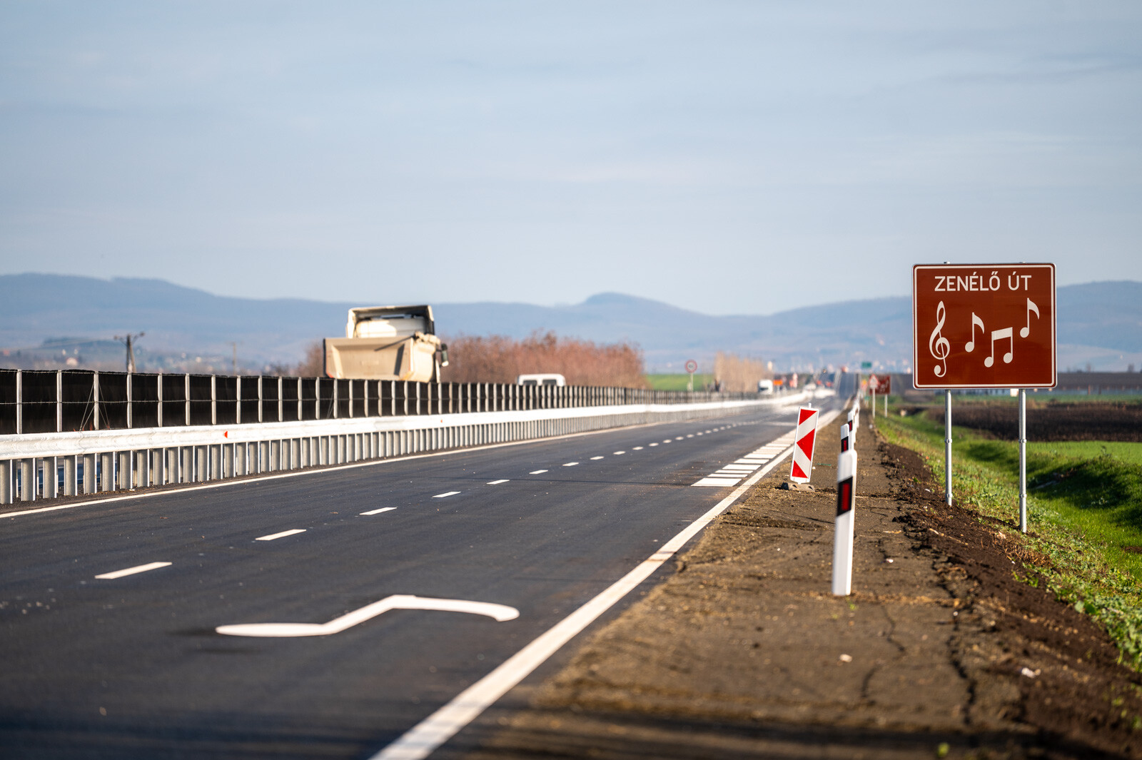 Ismertette, az útszakasz építése során több új forgalomtechnikai megoldást alkalmazott a beruházó Nemzeti Infrastruktúra Fejlesztő (NIF) Zrt. a zenélő út mellett.