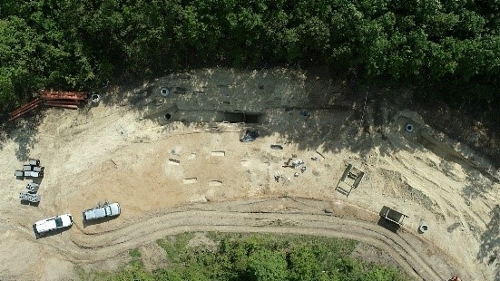 A munkaterületen eredetileg erdő volt, amelyet a korábbi tulajdonos, a Pilisi Parkerdő Zrt. az építési munkák megkezdése előtt kitisztított. A humuszos fedőréteg és gyökerek eltávolítása után megkezdődött az út építése.