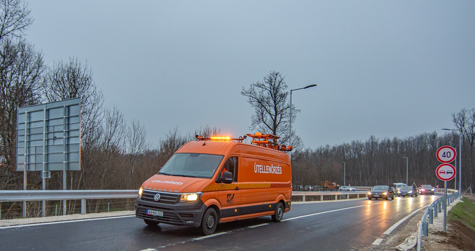 A forgalomtechnikai kiépítés részeként 495 méter szalagkorlát épült. Az út mindkét oldalán 2,40 méter magasságú fém oszlopos védőkerítést telepítettek, összesen 718 méter hosszan. A 2141. jelű összekötő út teljes szakaszán közvilágítás épült ki az ívek külső oldalán: összesen 15 db közvilágítási oszlop helyeztek ki a szakemberek.