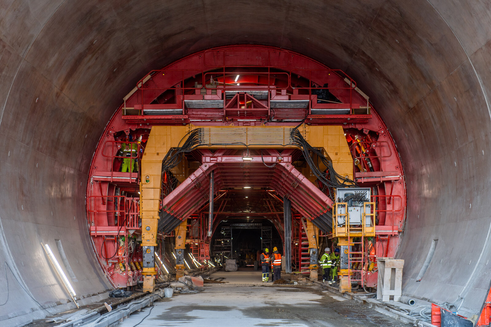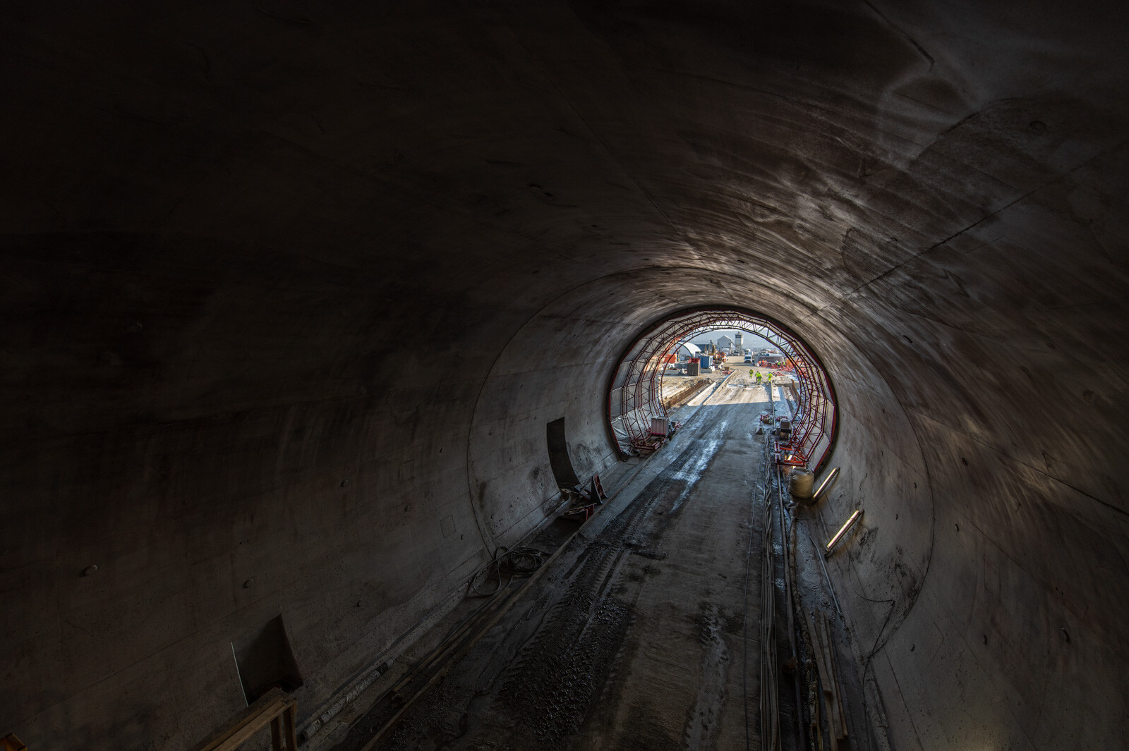 A nyugati oldalon az alagút irányításáért és működtetéséért felelős irányító központ szerkezetépítése elkészült, az épület belső munkálatai folyamatban van.