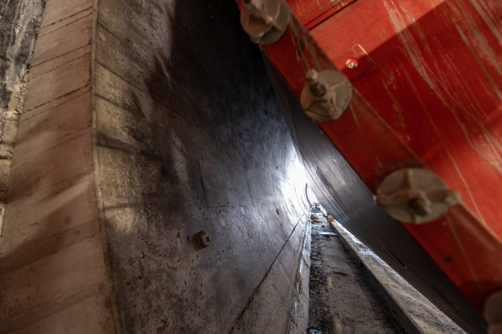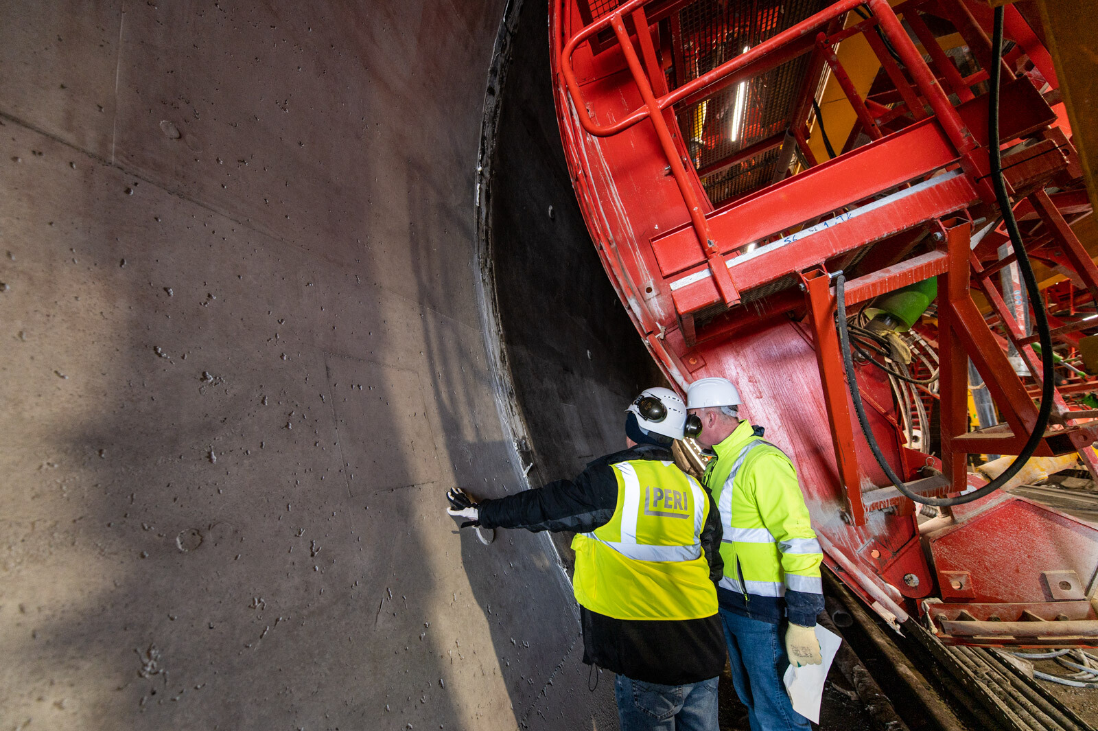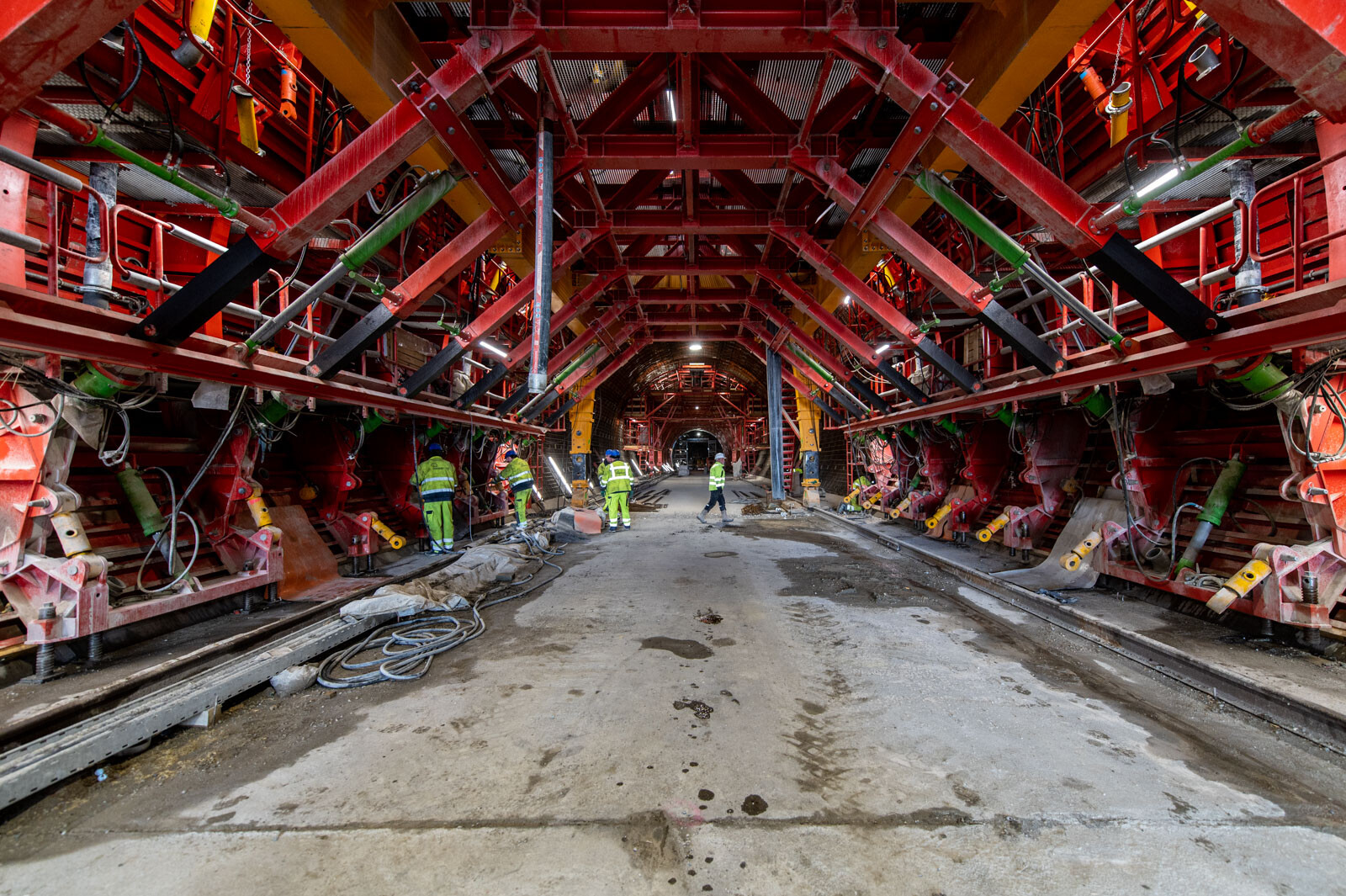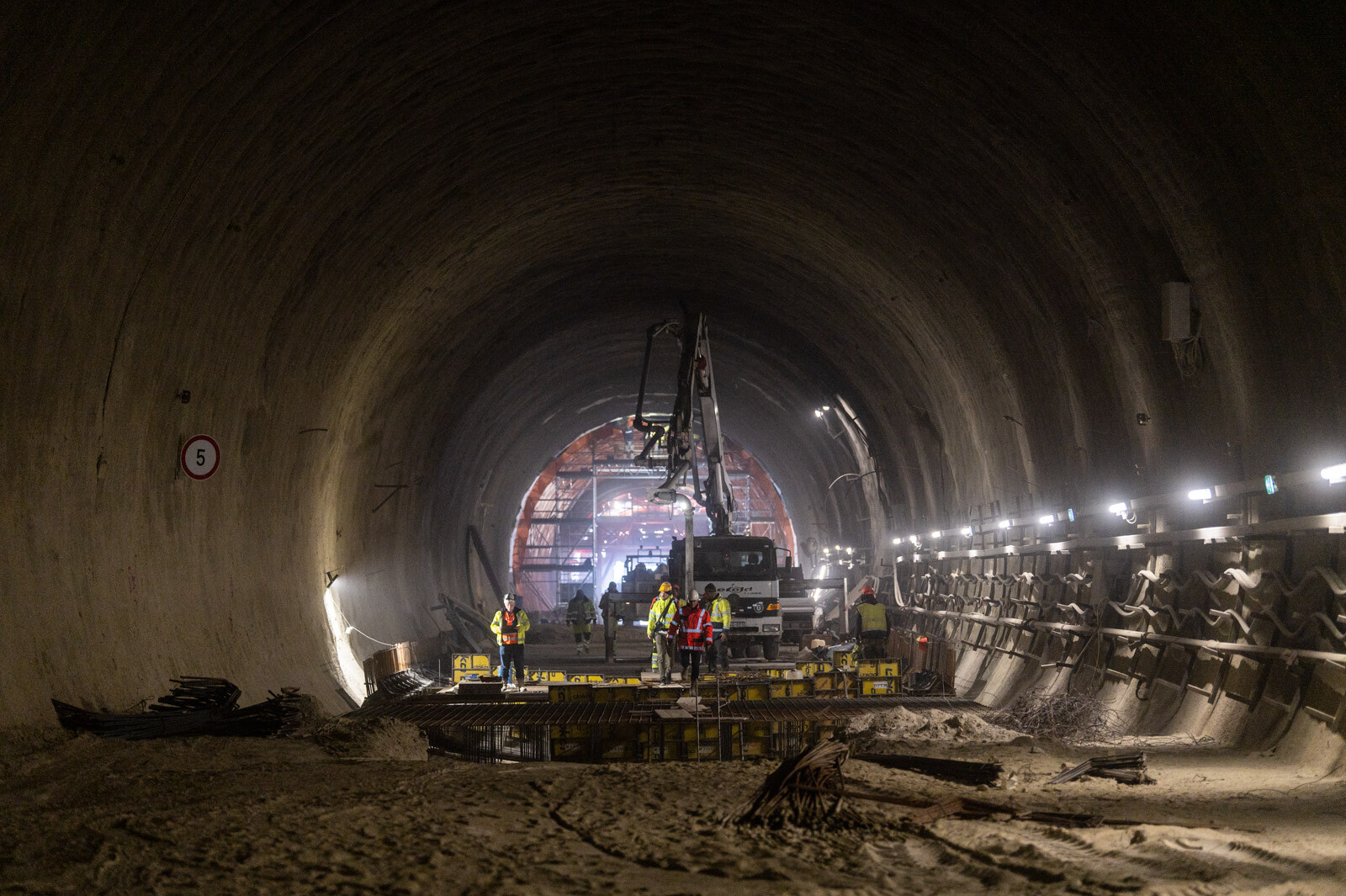 Ahogy azt korábban is jeleztük, az északi járatban februárban jutottak el a kivitelezők a két irányból zajló fejtés találkozását jelentő lyukasztásig. A déli járatban ugyanakkor már jóval előrébb tartanak a munkálatok a tavaly nyári lyukasztás után, itt már a végleges szerkezet betonozását végzik – ezúttal ezt a járatot járta be a fotósunk.