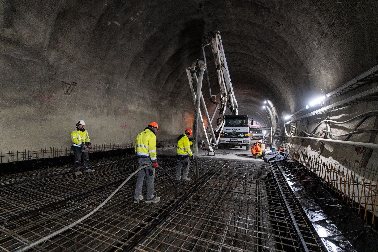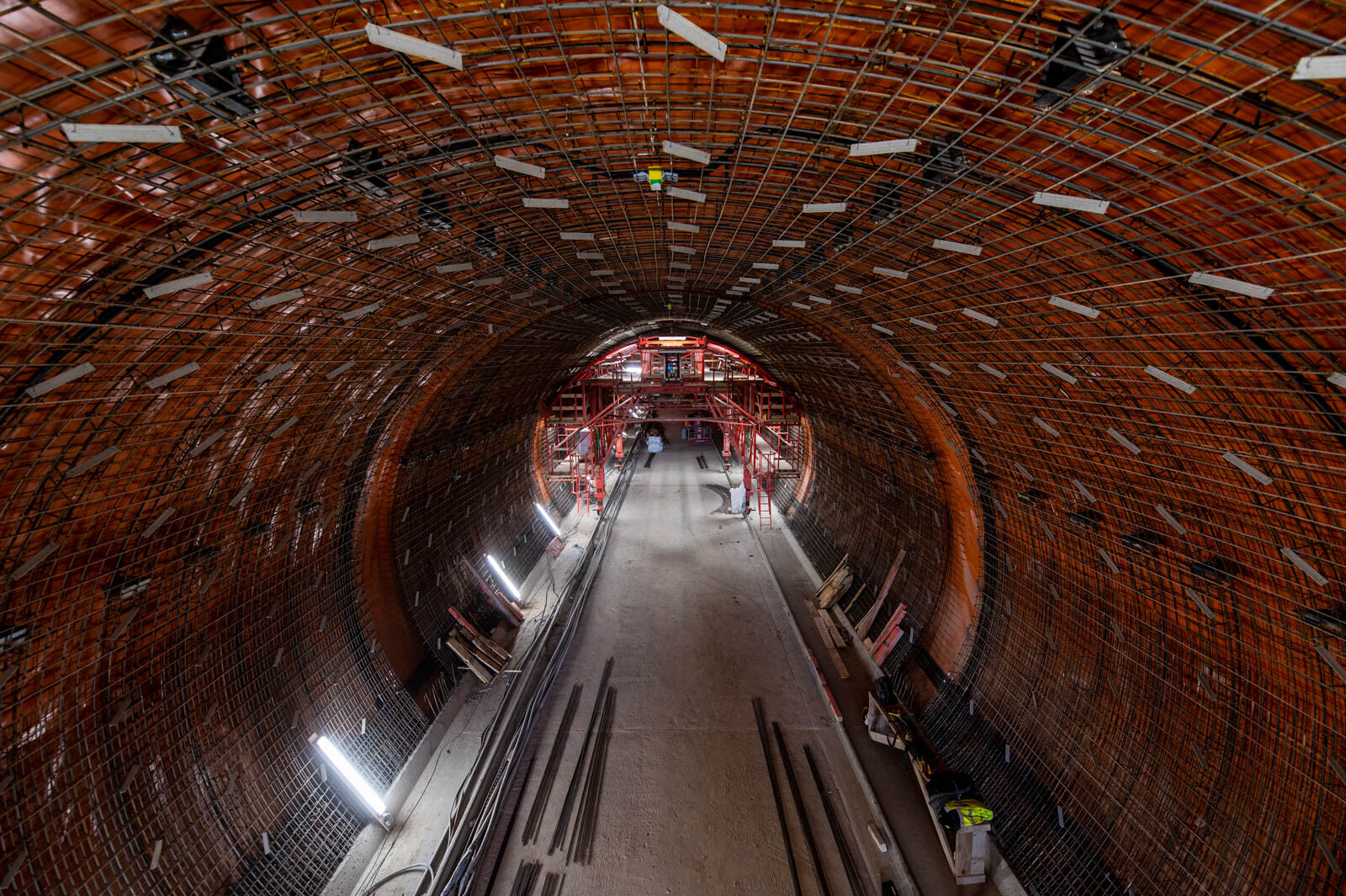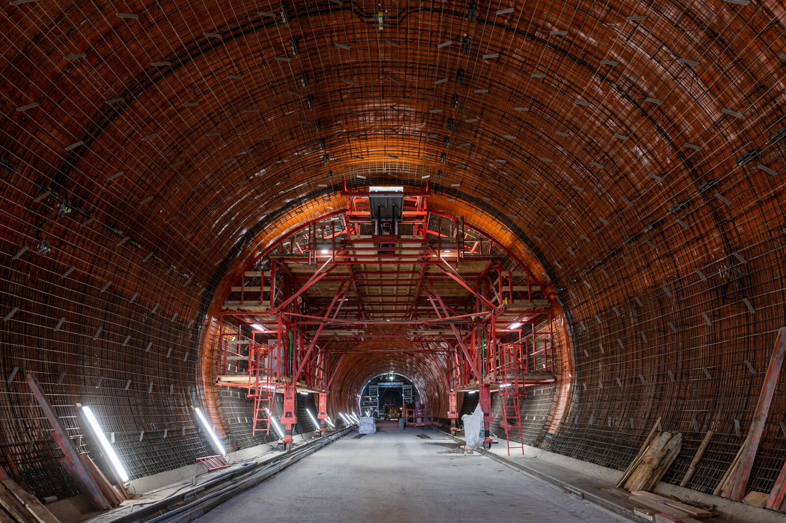 A közel 800 méteres alagút betonozását – a nyitott szakaszokkal együtt - járatonként 64 blokkra felosztva készítik el. A projekt jelenlegi előrehaladása szerint az északi járatban 18 ellenbolt míg a déli járatban 33 ellenbolt már elkészült. Ugyanakkor a déli járatban a boltozat szigetelése a 17-es- blokkig volt kész, míg a 15-ös blokkig jutottak el a vasszereléssel, és 13 olyan blokk volt, amelynél már a boltozat betonozása is lezárult a zsaluzókocsi által.