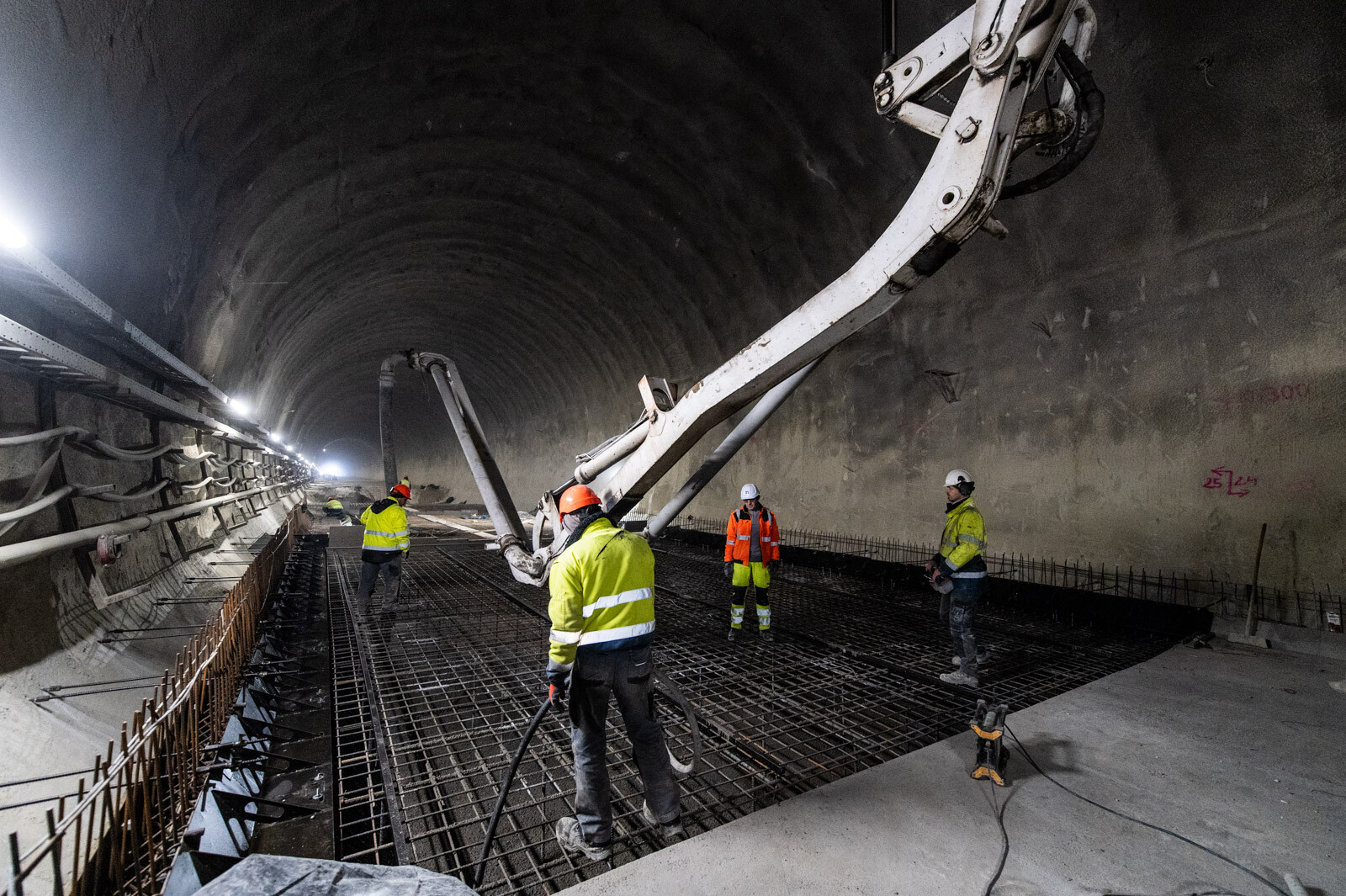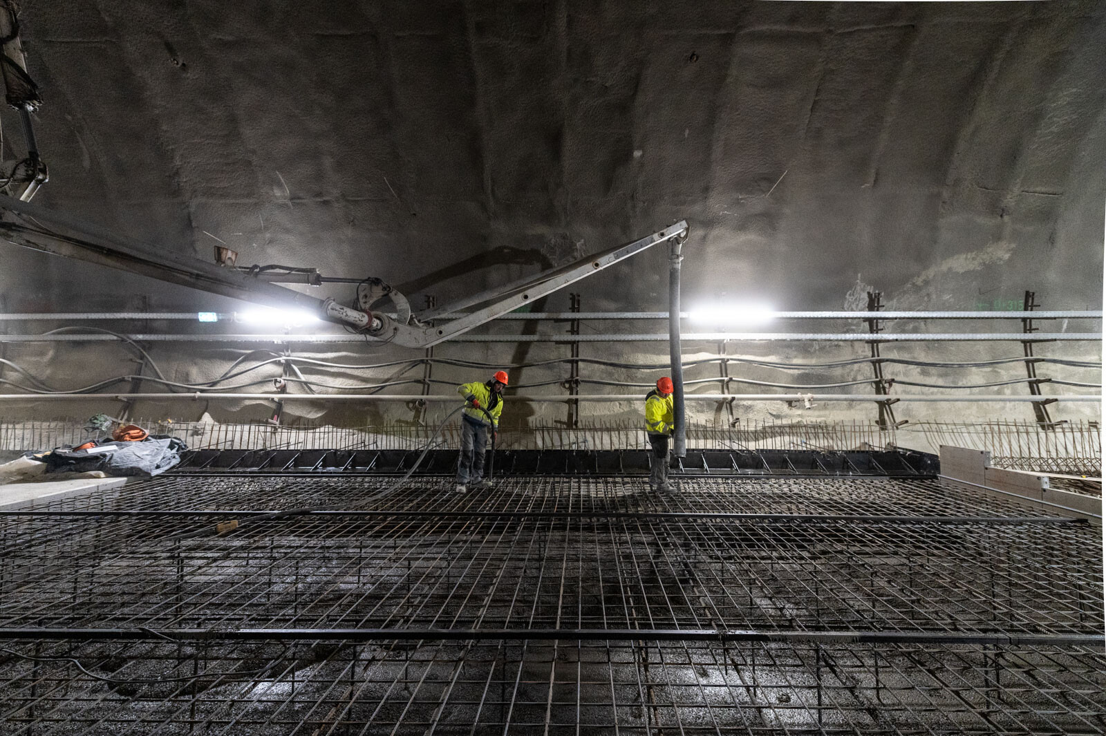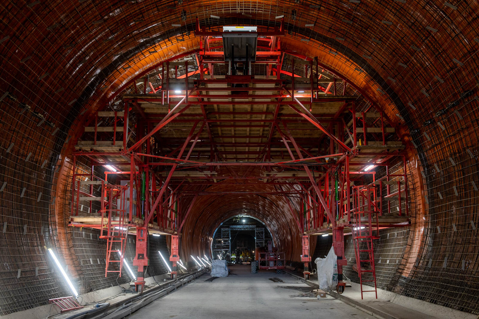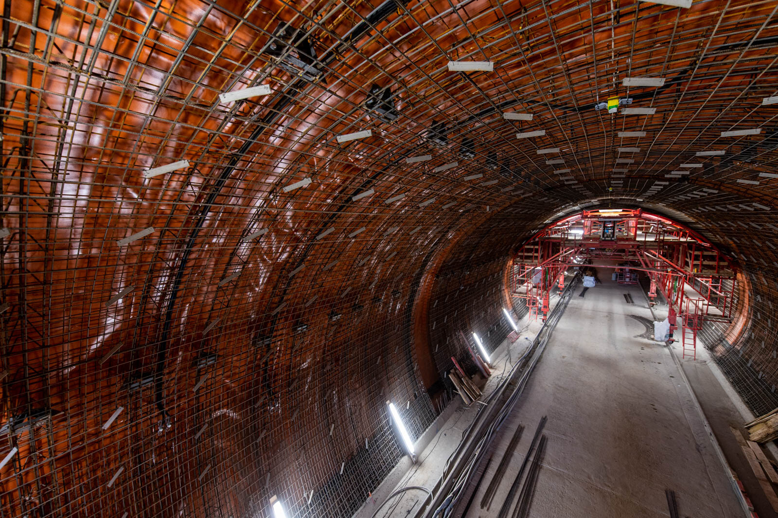 A közel 800 méteres alagút betonozását – a nyitott szakaszokkal együtt - járatonként 64 blokkra felosztva készítik el. A projekt jelenlegi előrehaladása szerint az északi járatban 18 ellenbolt míg a déli járatban 33 ellenbolt már elkészült. Ugyanakkor a déli járatban a boltozat szigetelése a 17-es- blokkig volt kész, míg a 15-ös blokkig jutottak el a vasszereléssel, és 13 olyan blokk volt, amelynél már a boltozat betonozása is lezárult a zsaluzókocsi által.