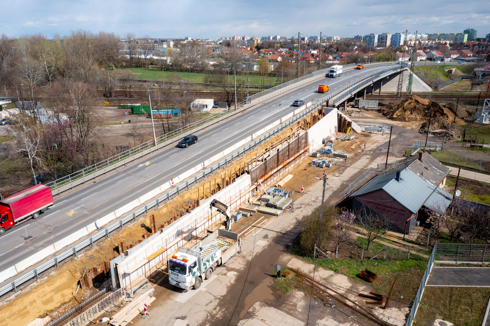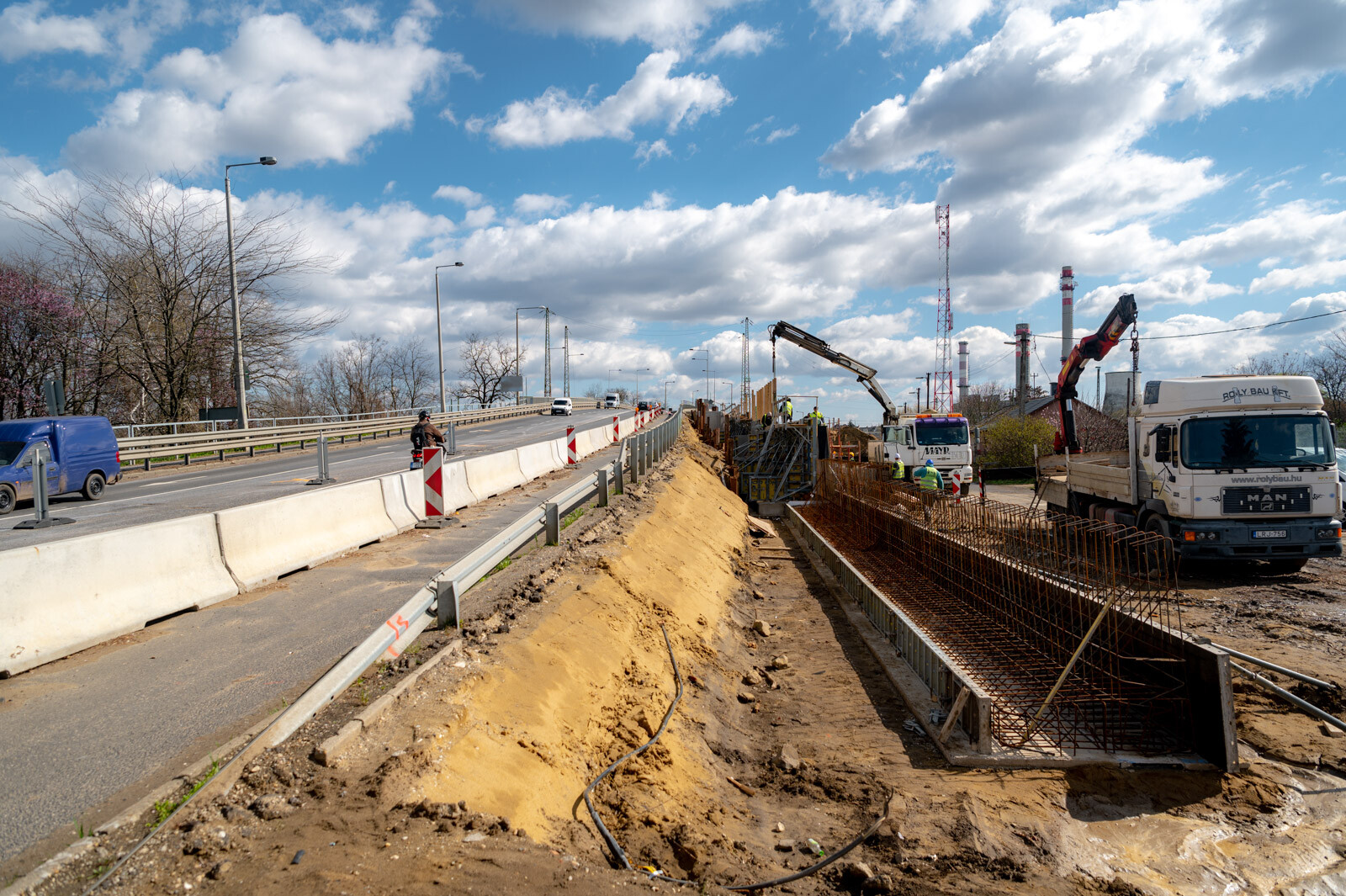 Ezzel párhuzamosan a többi területen is folyik a munka: befejezik a támfal kivitelezését és a csomópontokban kiépítik a jelzőlámpákat. A befejező fázisban korlátépítés, növénytelepítés és a végleges forgalomtechnika kiépítése lesz a feladat.