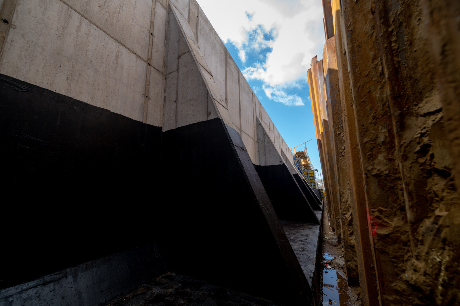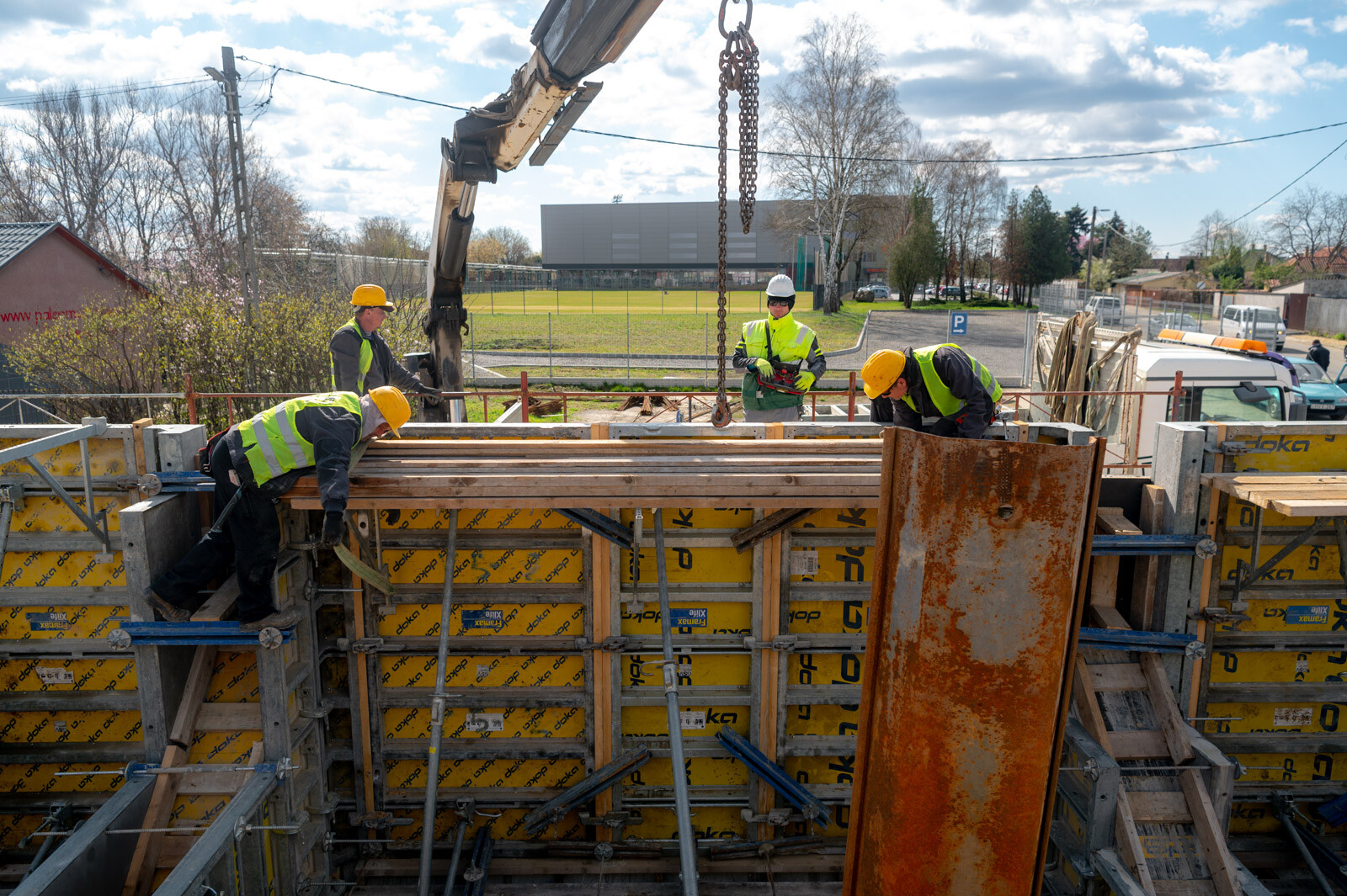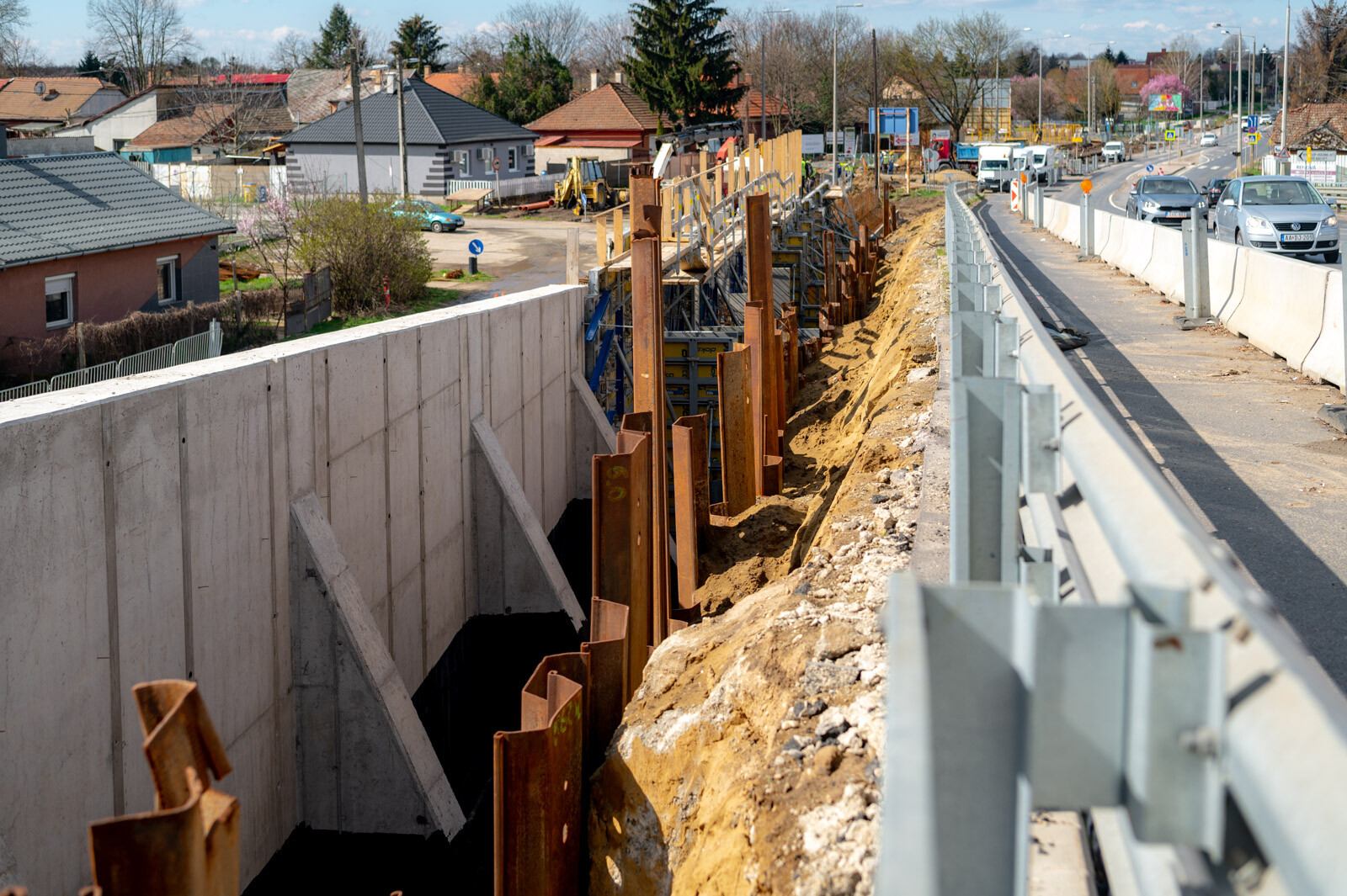 A kivitelezés a támfal építési feladataival kezdődött, amely kiemelkedő része a projektnek - tájékoztatta lapunkat Molnárné Varga Viktória projektvezető. Ennek során elvégezték az előkészítő földmunkákat, az elektromos kiváltási munkákat, villanyoszlopok elbontását a támfal környezetében, a földfal megtámasztásához a szádlemezek leverését és a támfal alaptest és szerelőbetonozását.