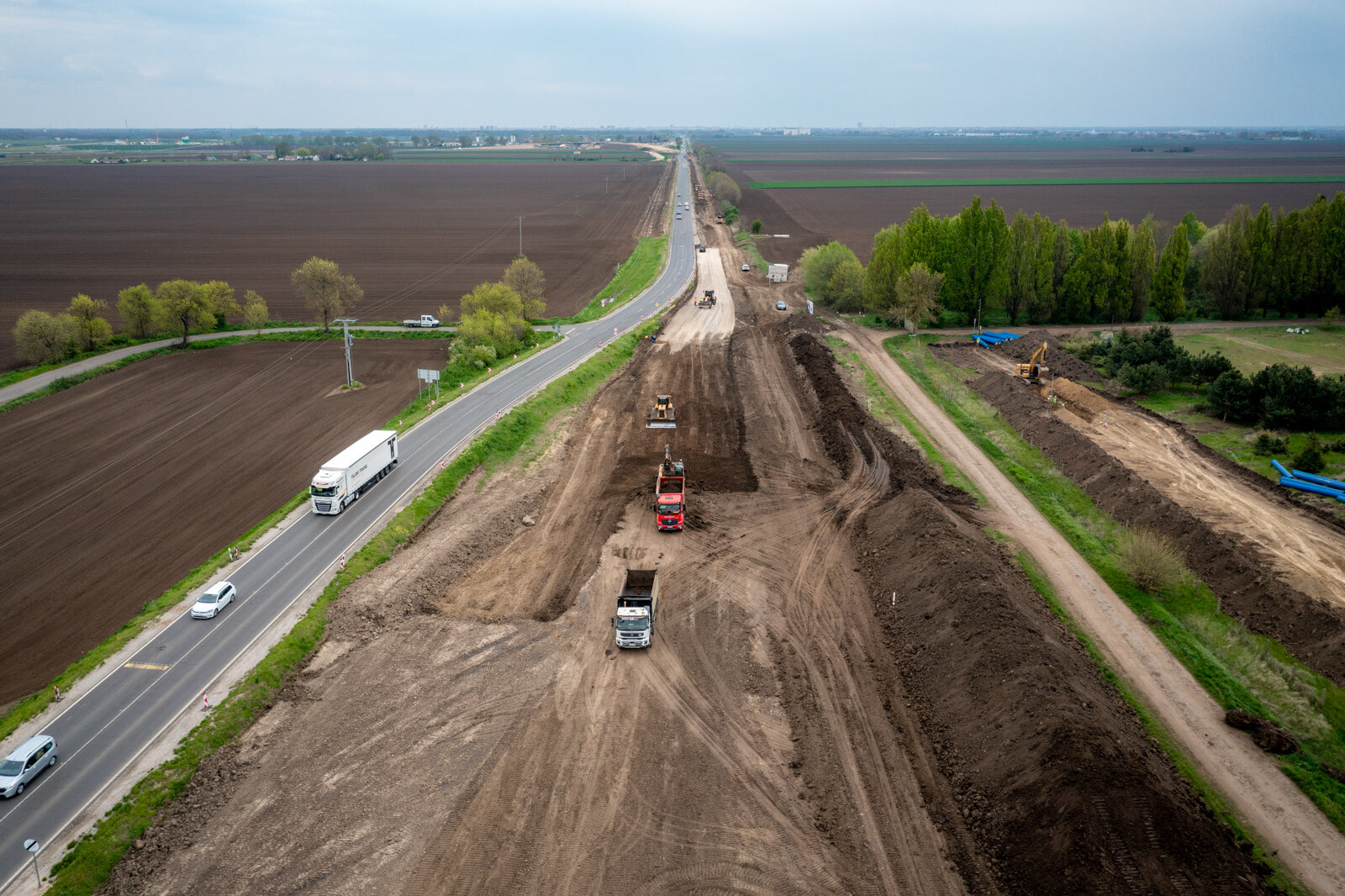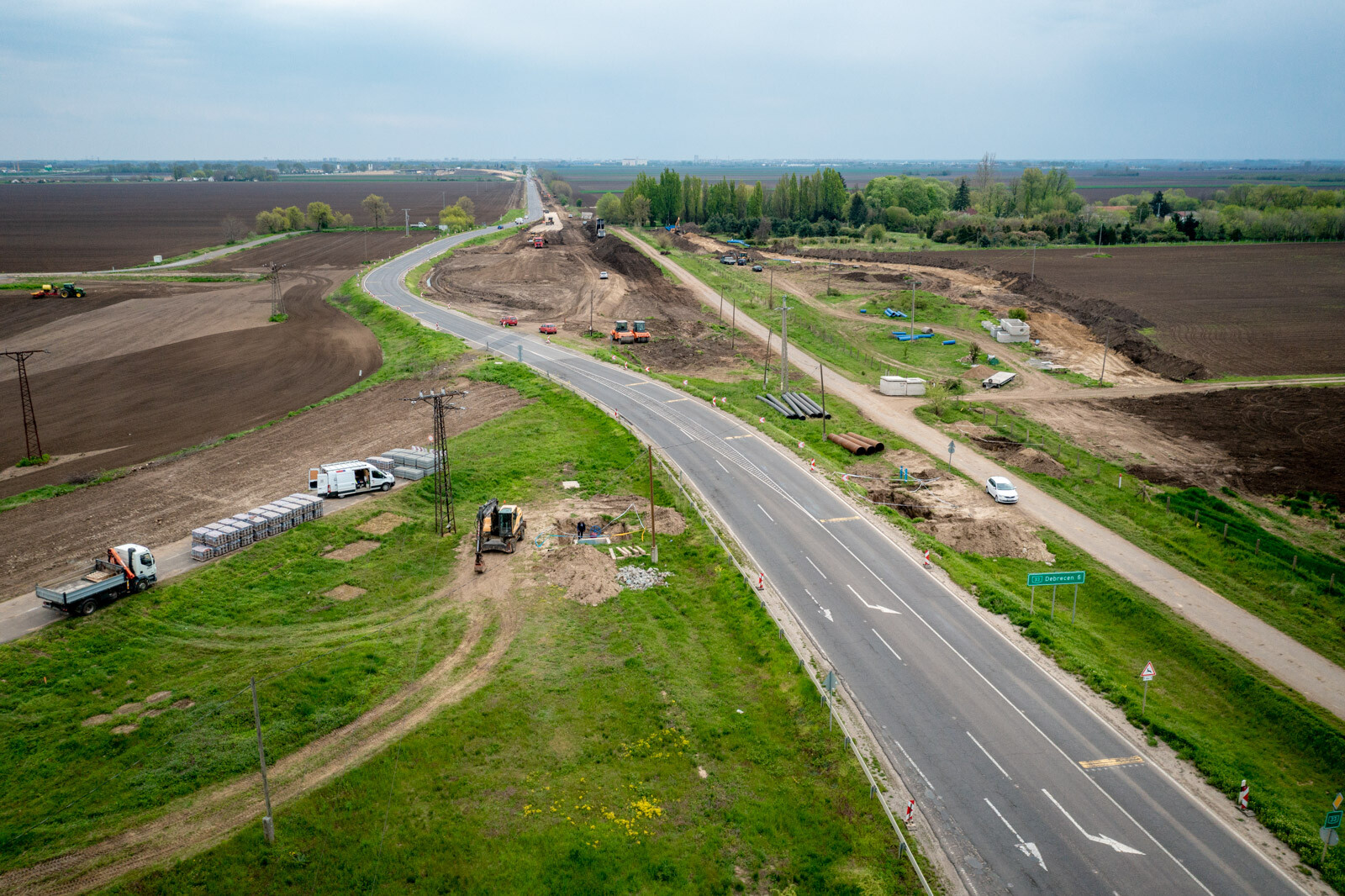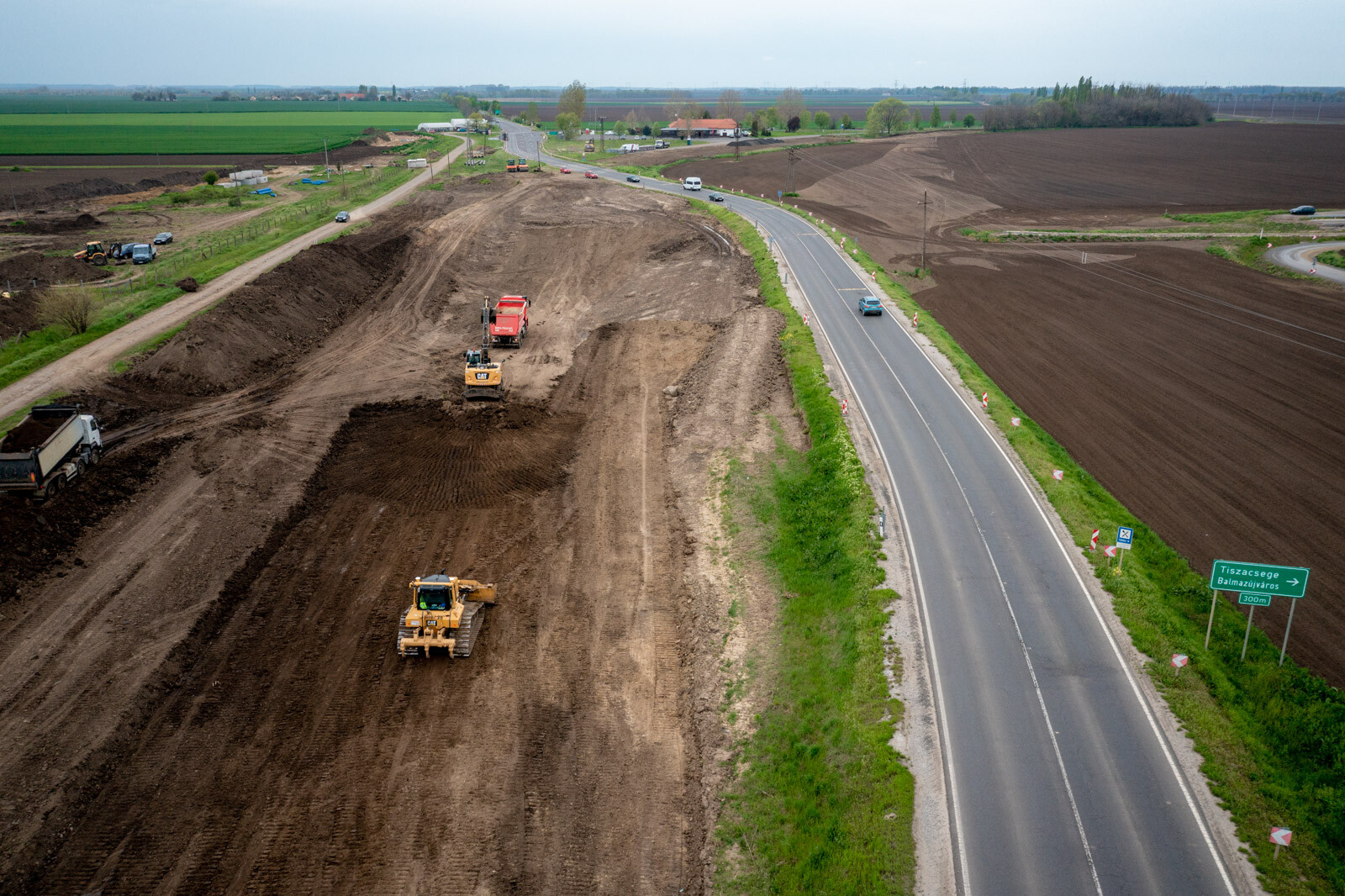 A következő lépésként kiépítették az előzetesen jóváhagyott ideiglenes forgalomtechnikai tervek szerinti forgalomterelést, jelenleg pedig folyamatban vannak a humuszolási és az alkalmatlan fedőréteg letermelés munkái, illetve április közepén már az útépítésre és a csapadékvíz építésre vonatkozó végleges kiviteli tervek is jóváhagyásra kerültek. Hozzátette, ezen túl jelenleg a Tiszamenti Regionális Vízművek kezelésében lévő DN600 ivóvíz távvezeték kiváltása is zajlik.