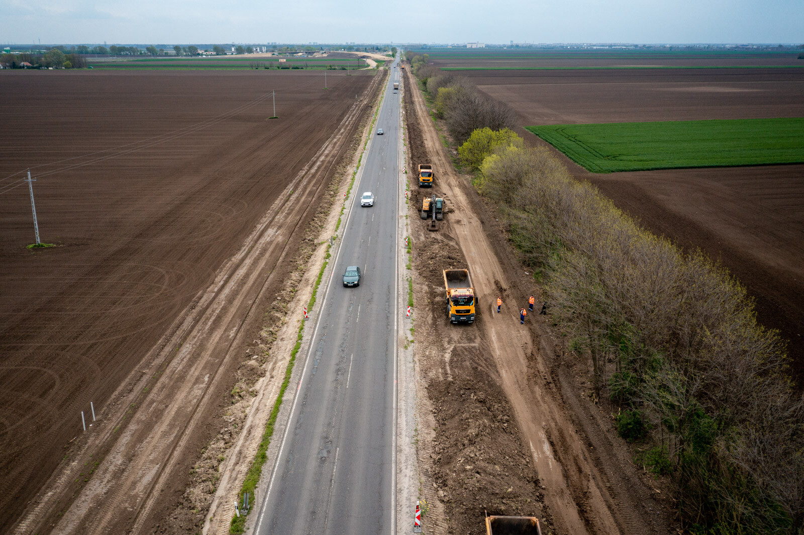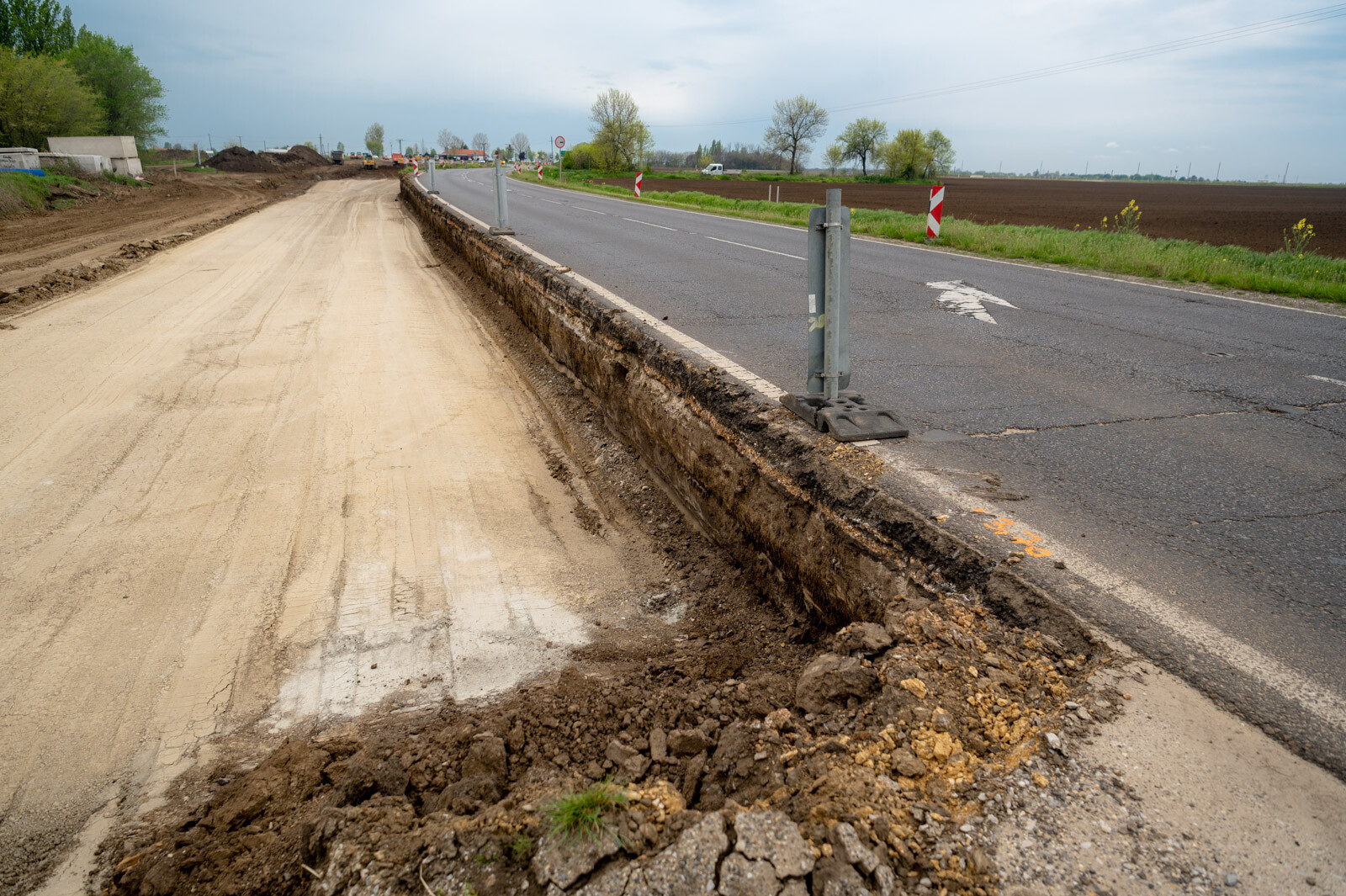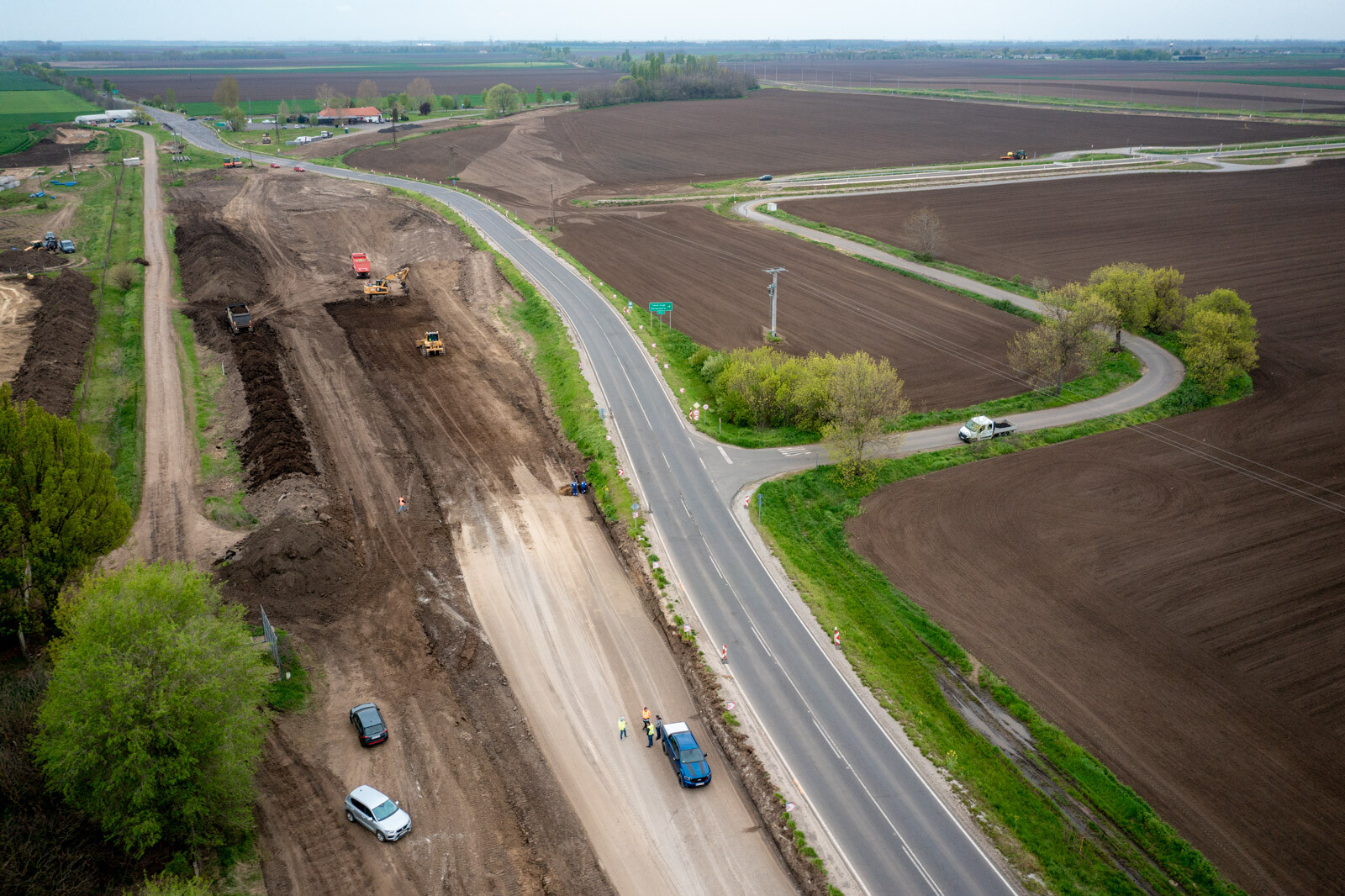 A következő lépésként kiépítették az előzetesen jóváhagyott ideiglenes forgalomtechnikai tervek szerinti forgalomterelést, jelenleg pedig folyamatban vannak a humuszolási és az alkalmatlan fedőréteg letermelés munkái, illetve április közepén már az útépítésre és a csapadékvíz építésre vonatkozó végleges kiviteli tervek is jóváhagyásra kerültek. Hozzátette, ezen túl jelenleg a Tiszamenti Regionális Vízművek kezelésében lévő DN600 ivóvíz távvezeték kiváltása is zajlik.
