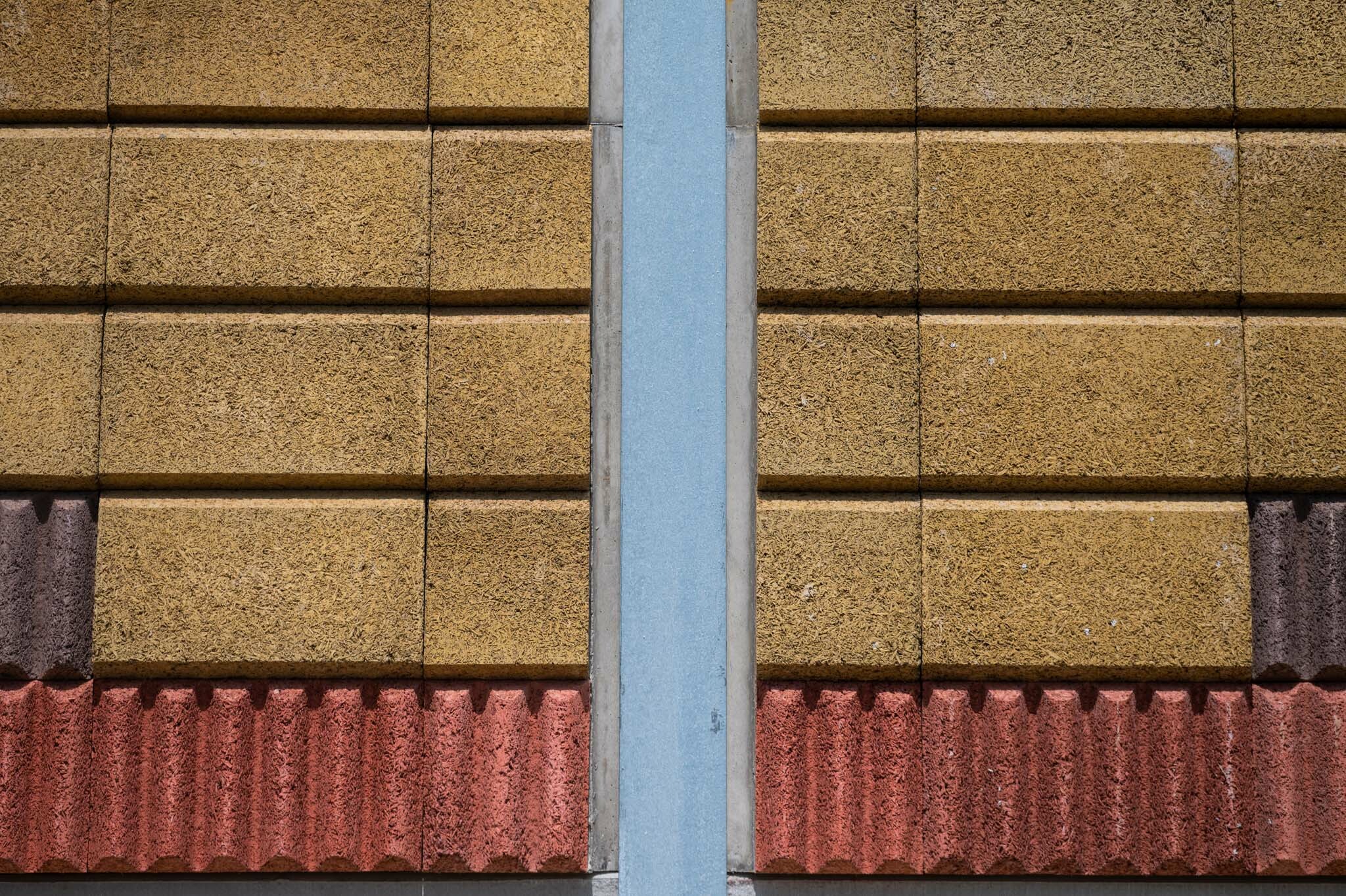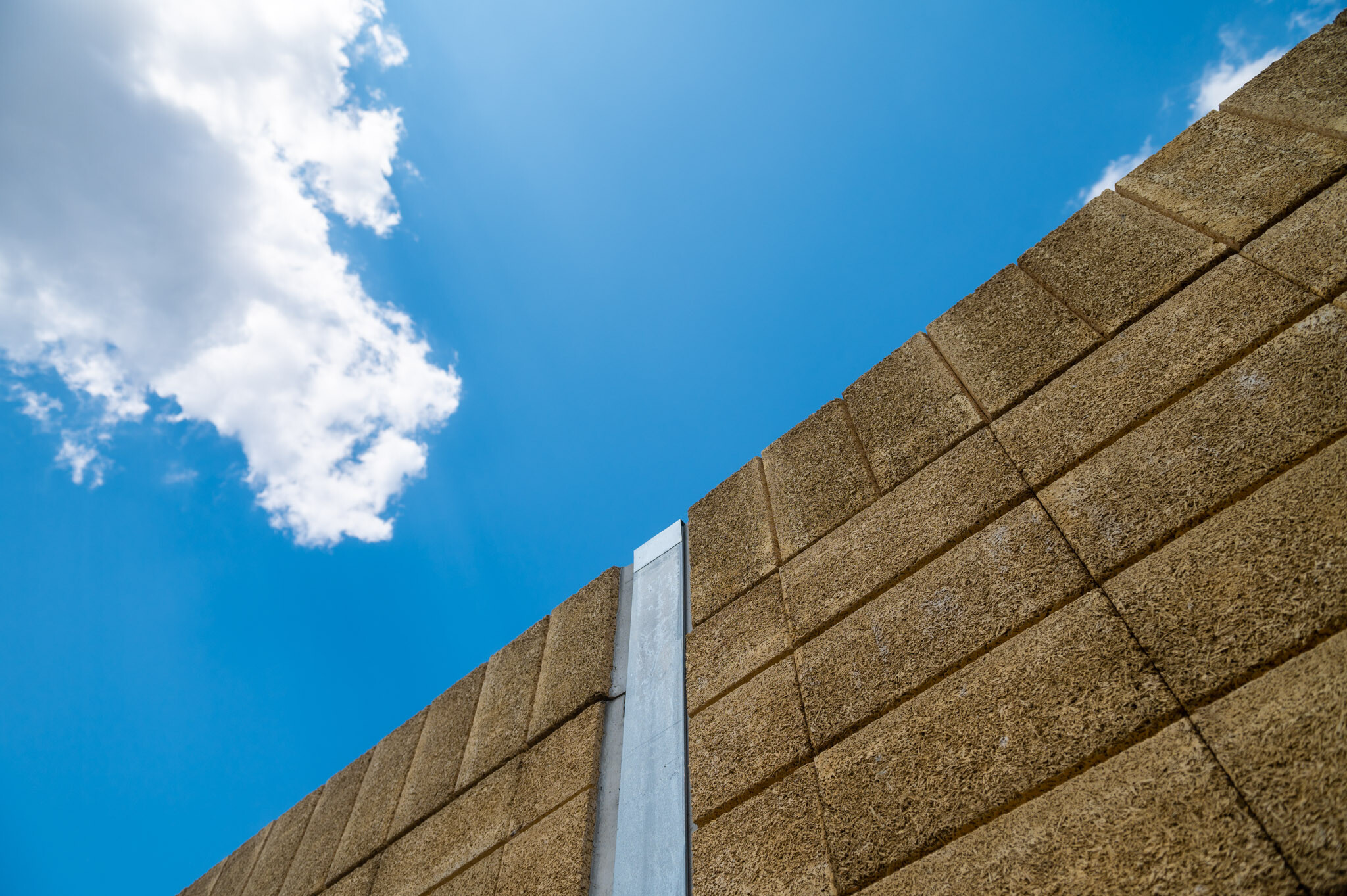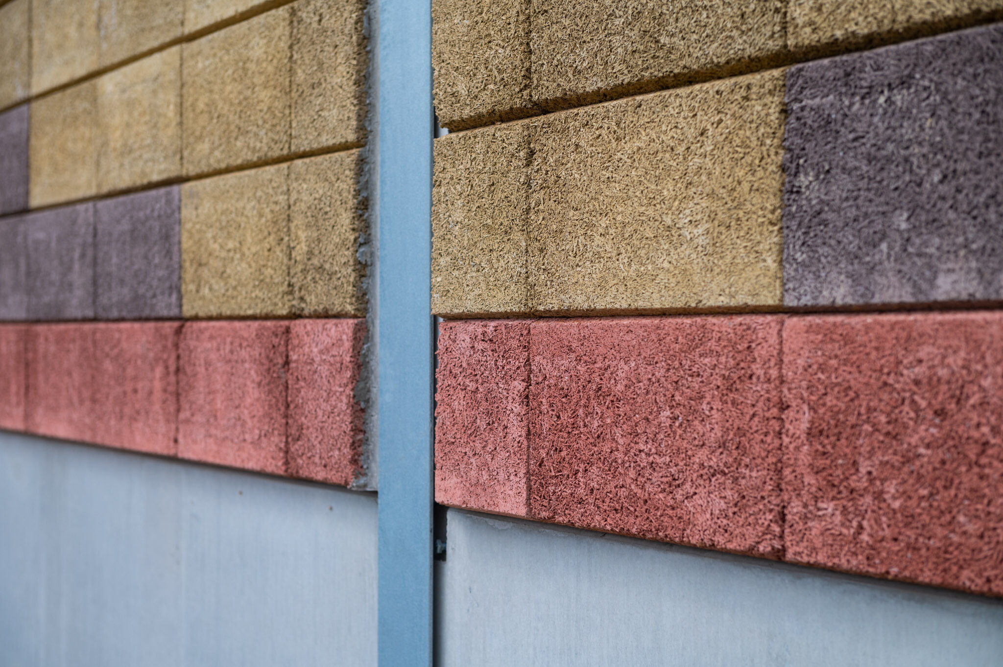 A falat alkotó elemek felületét cementkötésű faforgácsból préseléses technikával alakítják ki, mely 13 centiméteres fix betonmagot ölel körbe.
