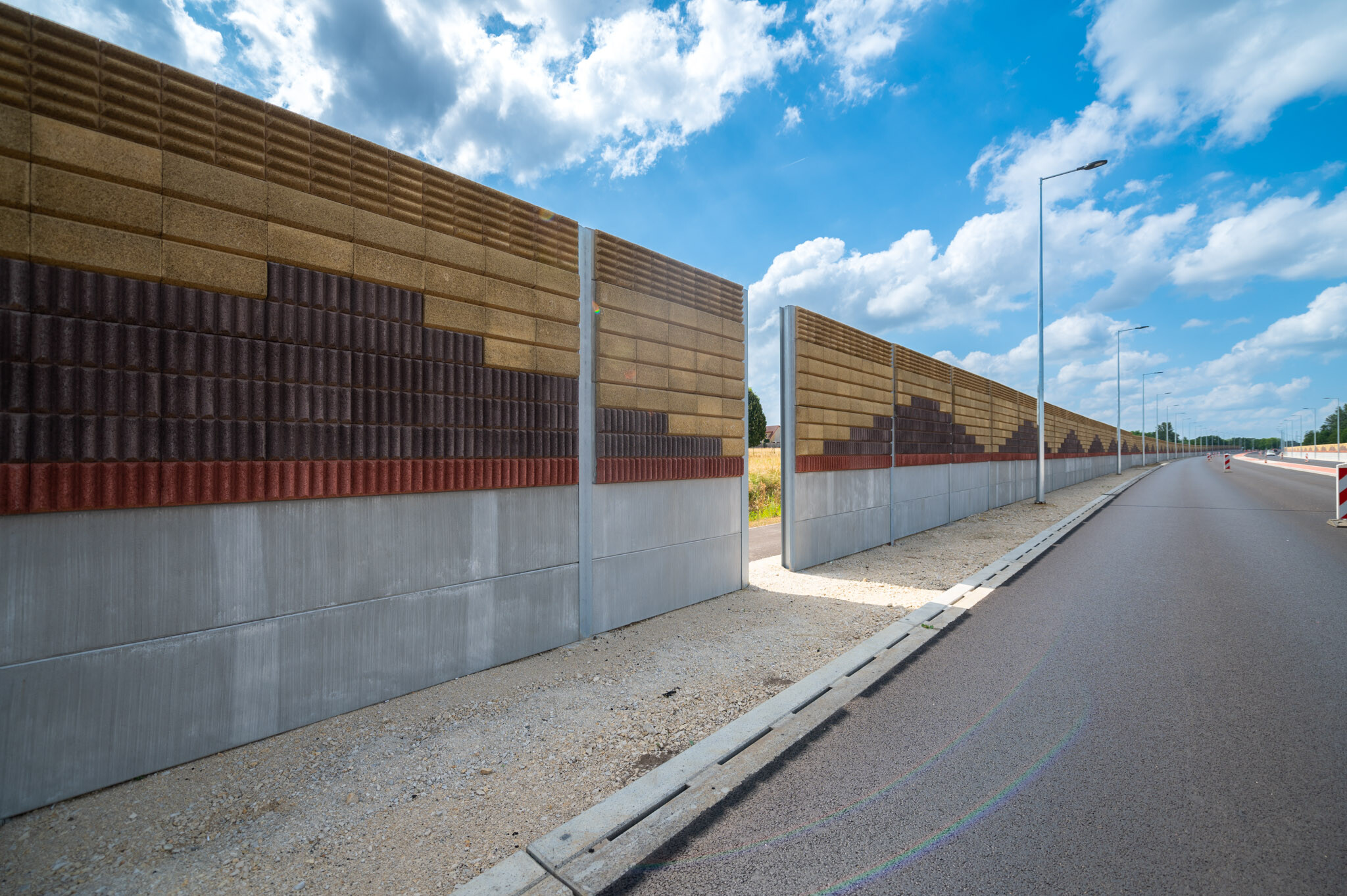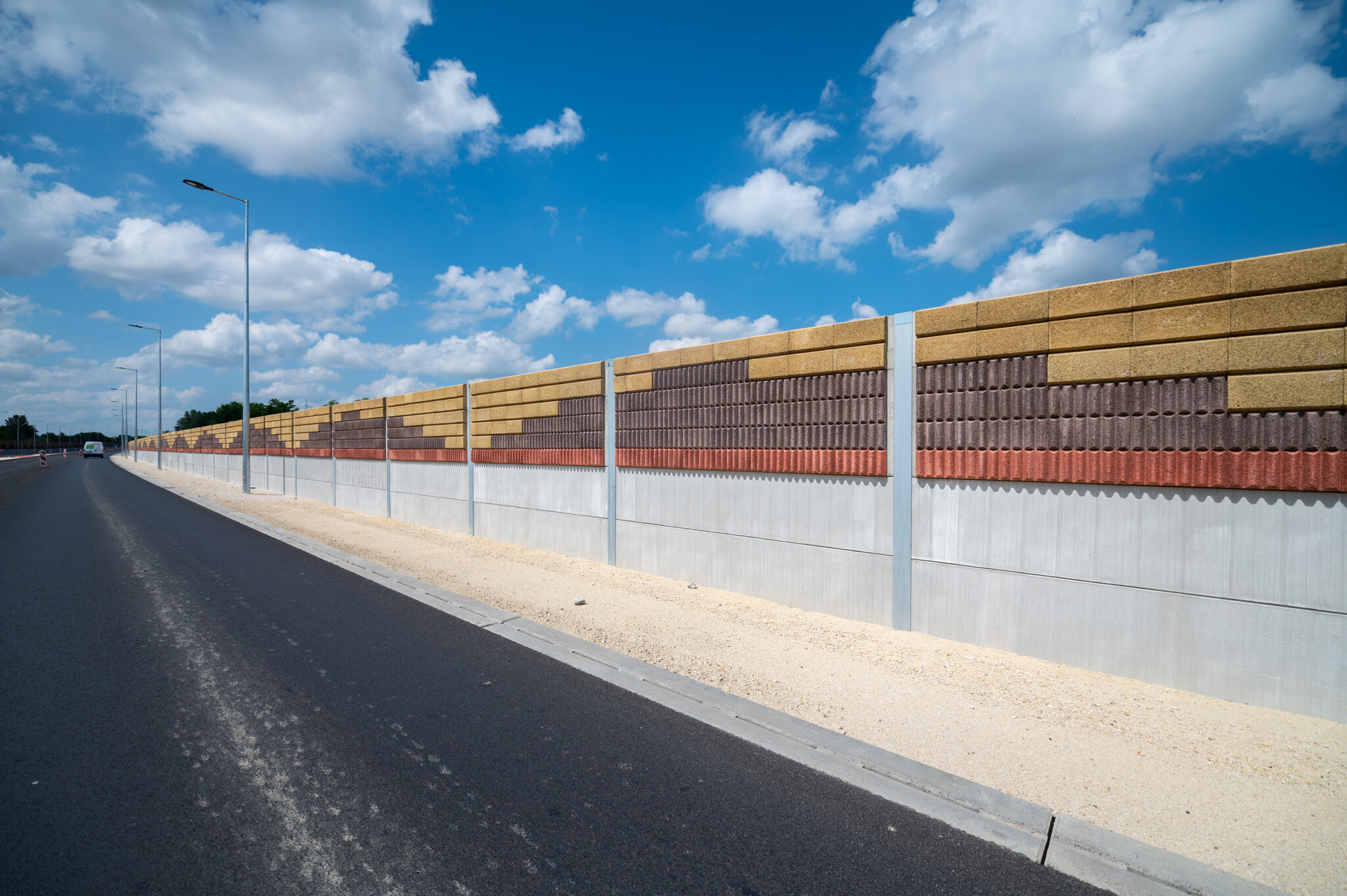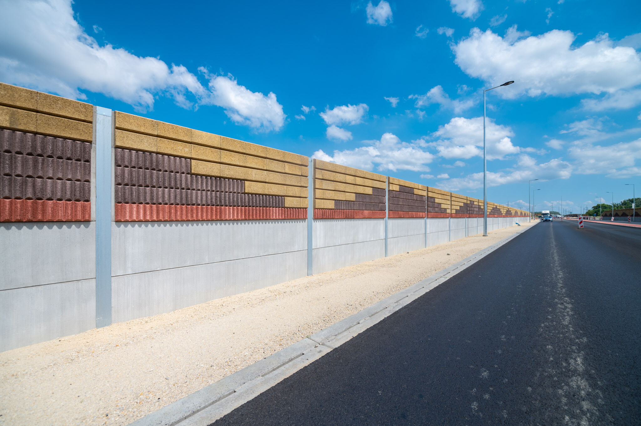 A 83-as út látványos projektjén folyamatosan építik be a Durisol zajvédő elemeket.