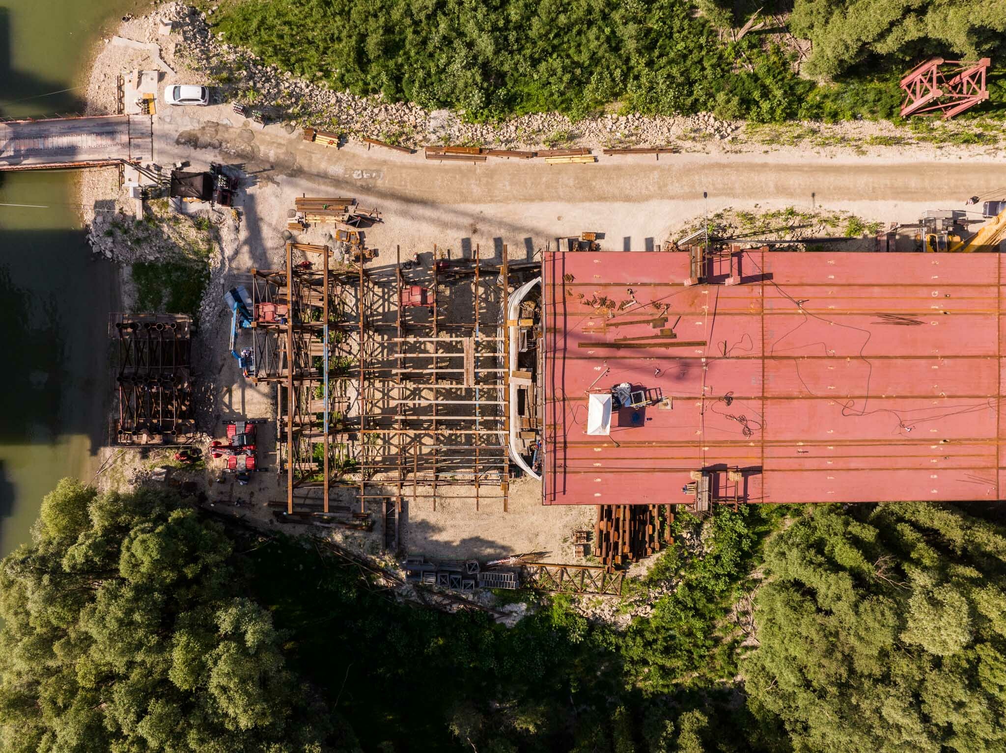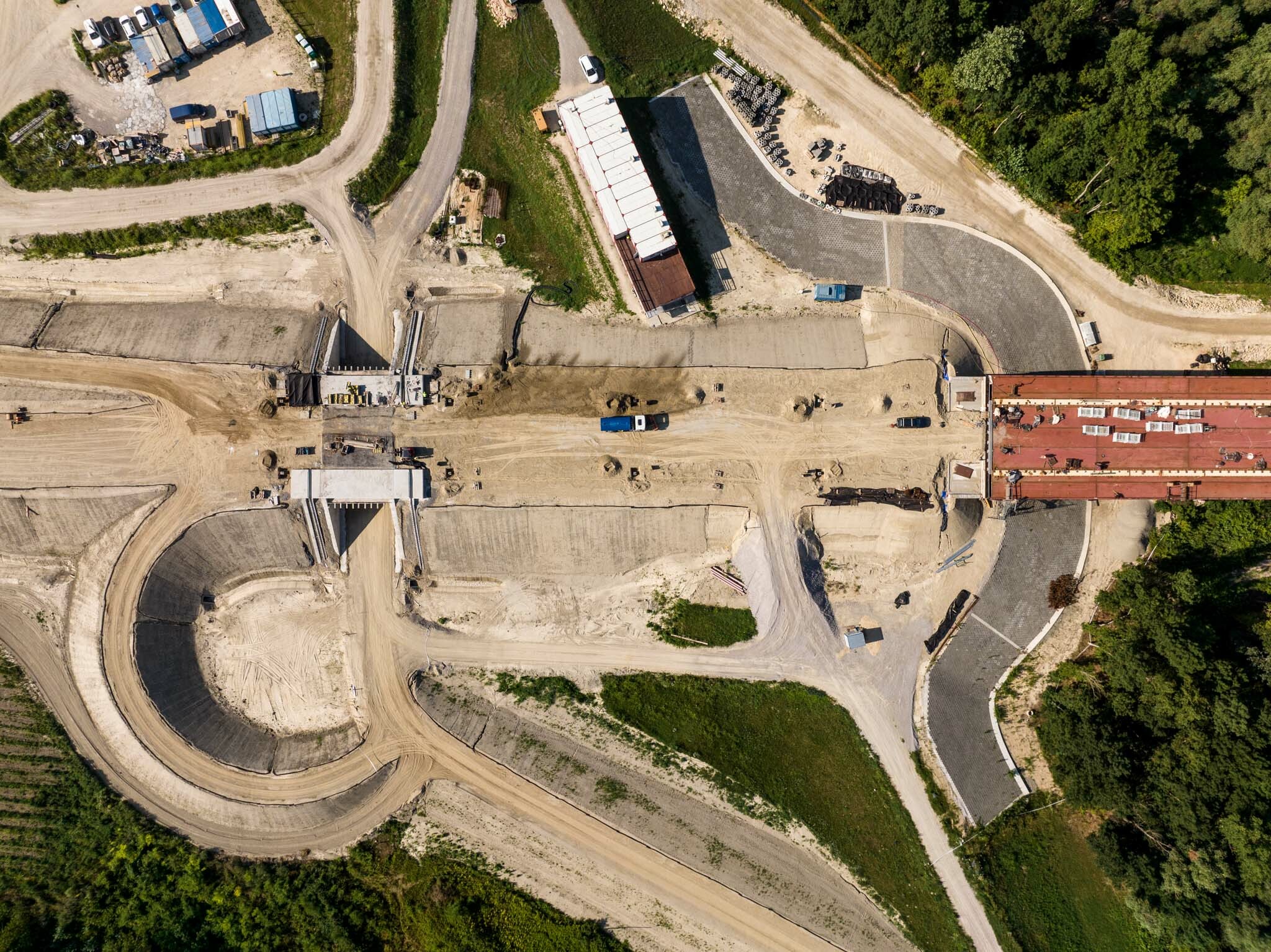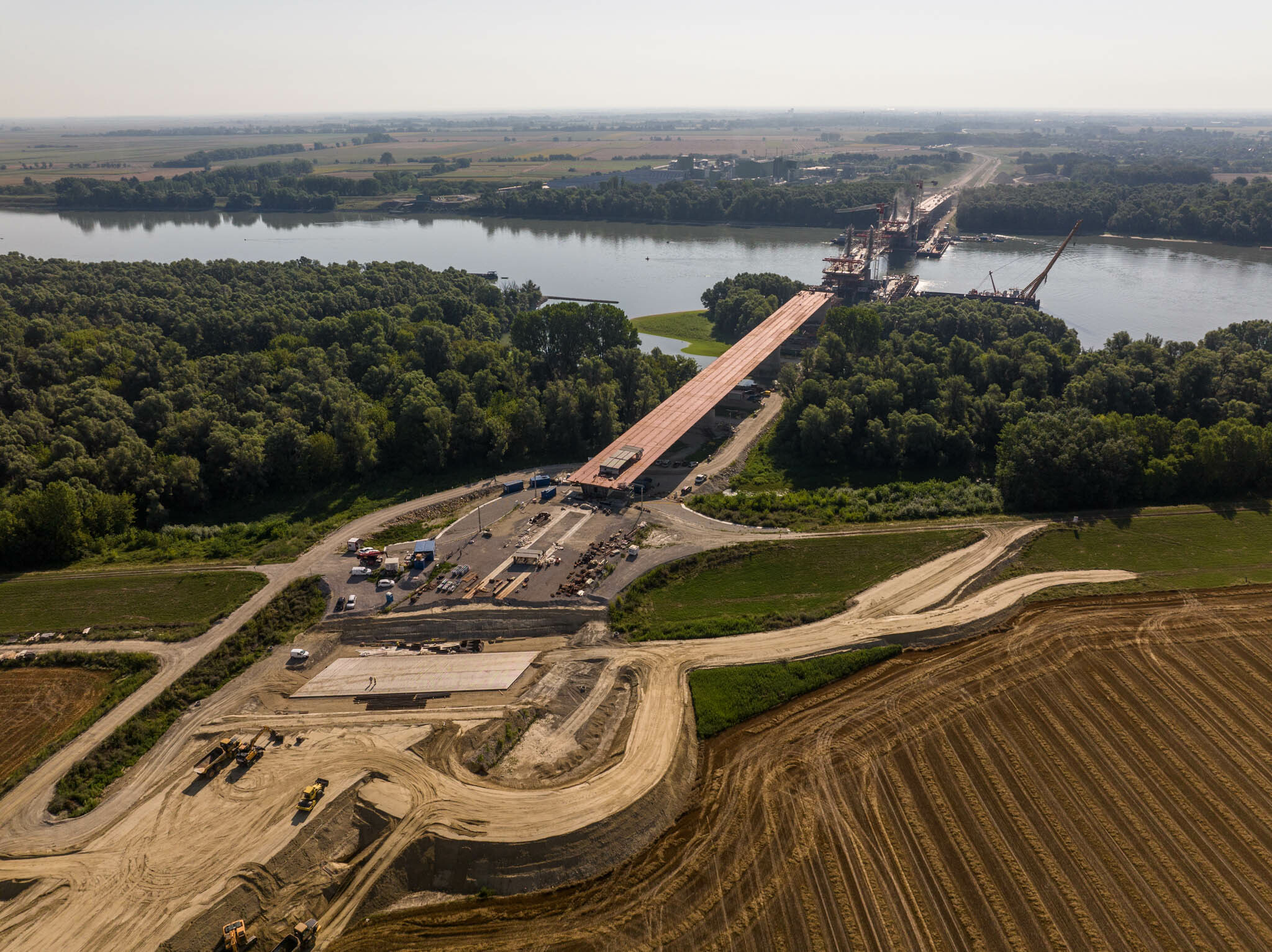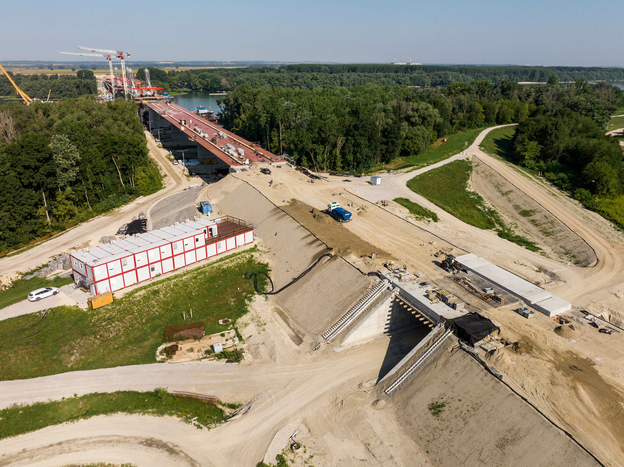 A jobb ártéri híd szerelőtere elbontásra került, így megkezdődhetett az árvízvédelmi töltés mentett oldalán a vasbeton keretműtárgy kivitelezése, mely a vízügyi igazgatóságok és a Katasztrófavédelem zavartalan közlekedését biztosítja a későbbiekben az újonnan épülő 512. számú út alatt.”