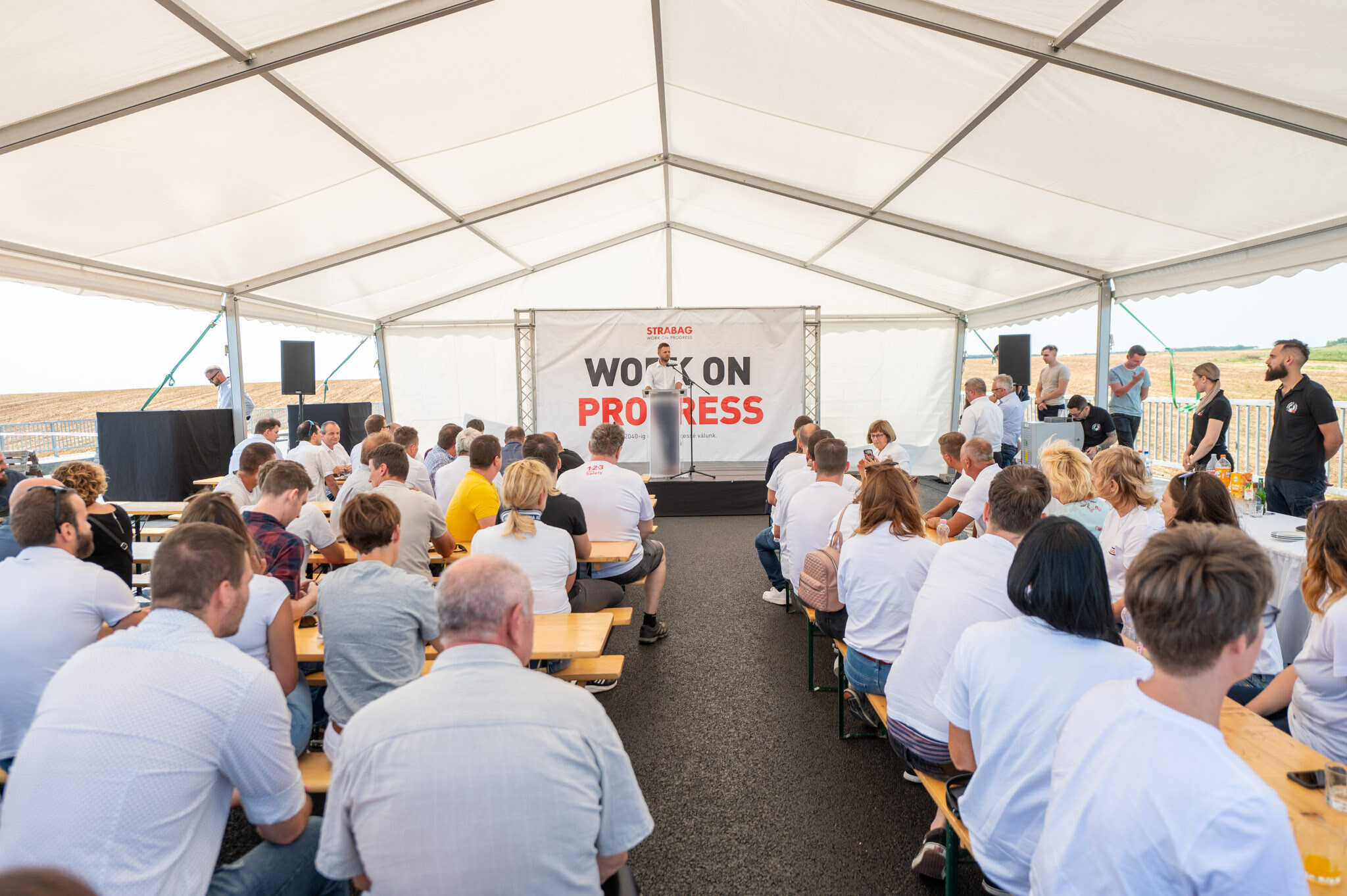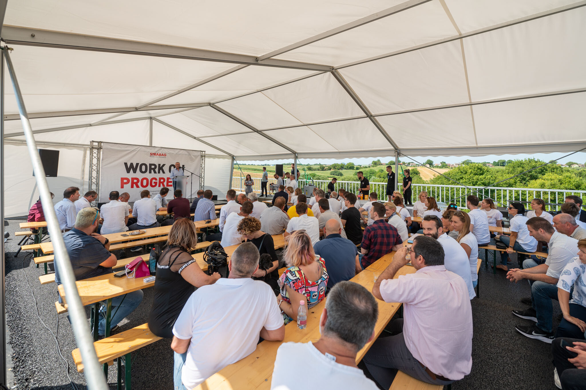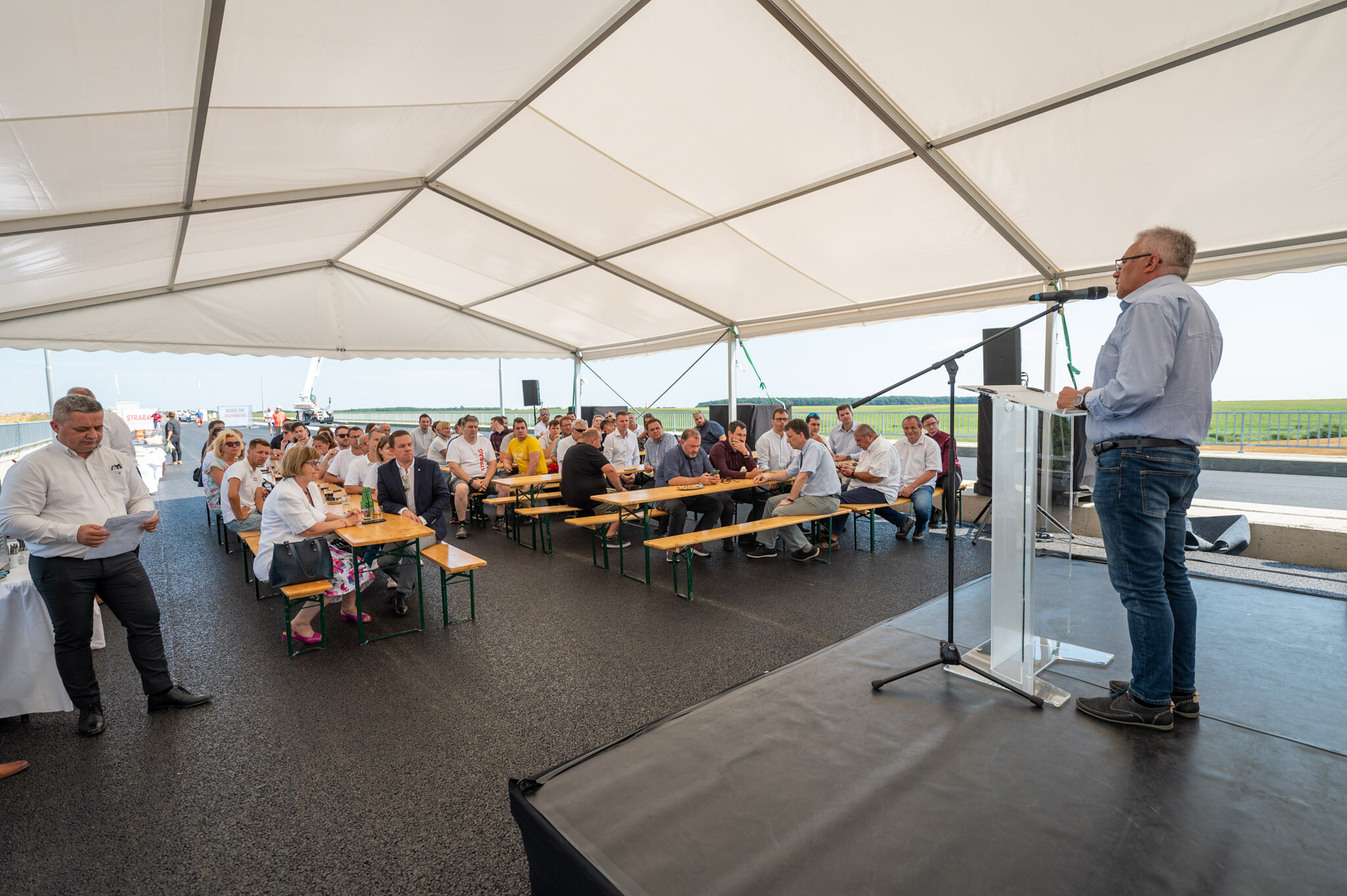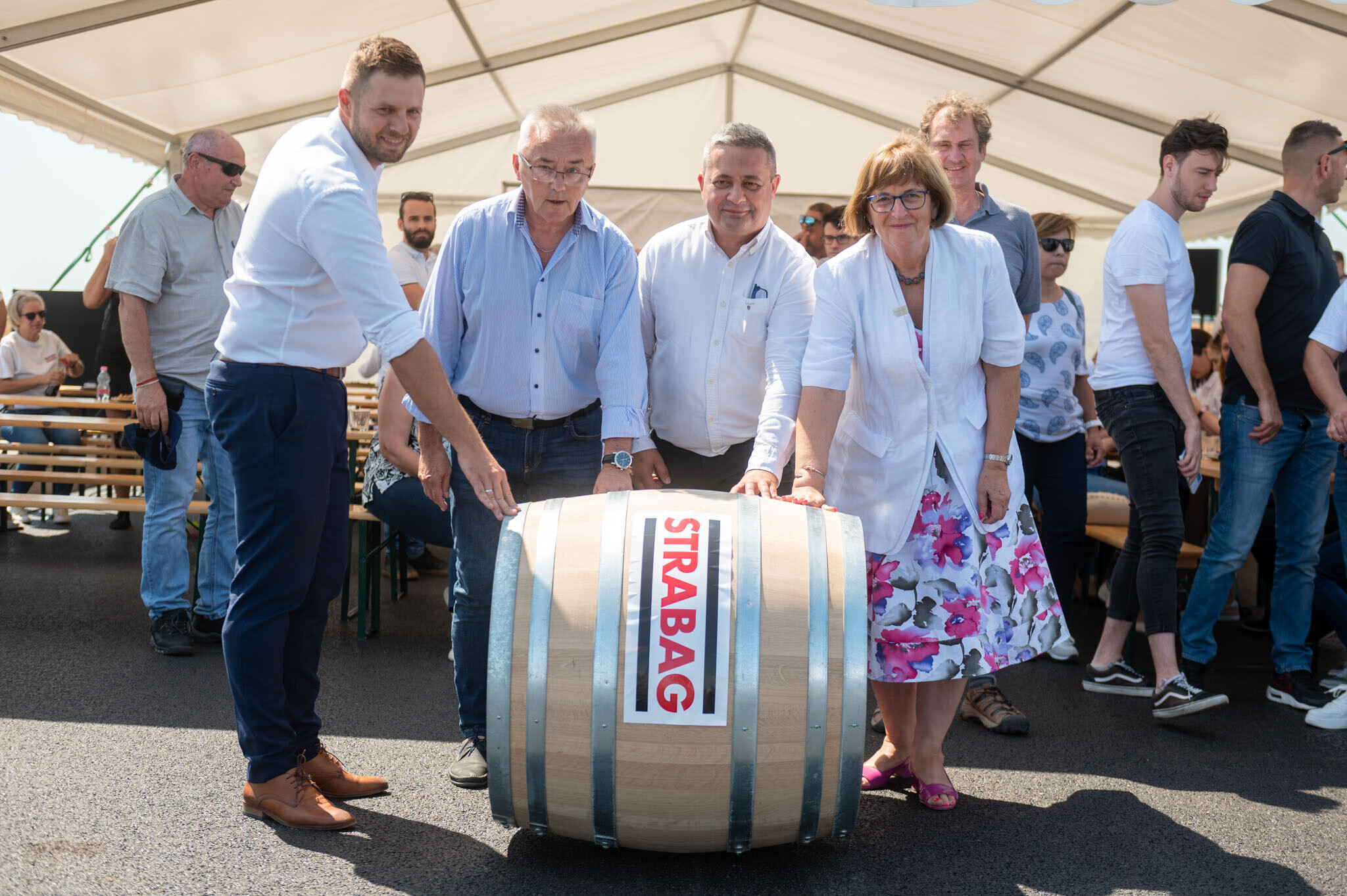 A Strabag Építő Kft. és a Duna Aszfalt Zrt. konzorciumának generálkivitelezésében megvalósuló fejlesztésben ezúttal egy hídépítés került a fókuszba: csütörtökön megtartották a Majsi-vízfolyás felett a Strabag által megépített hídon a hordógurítást.