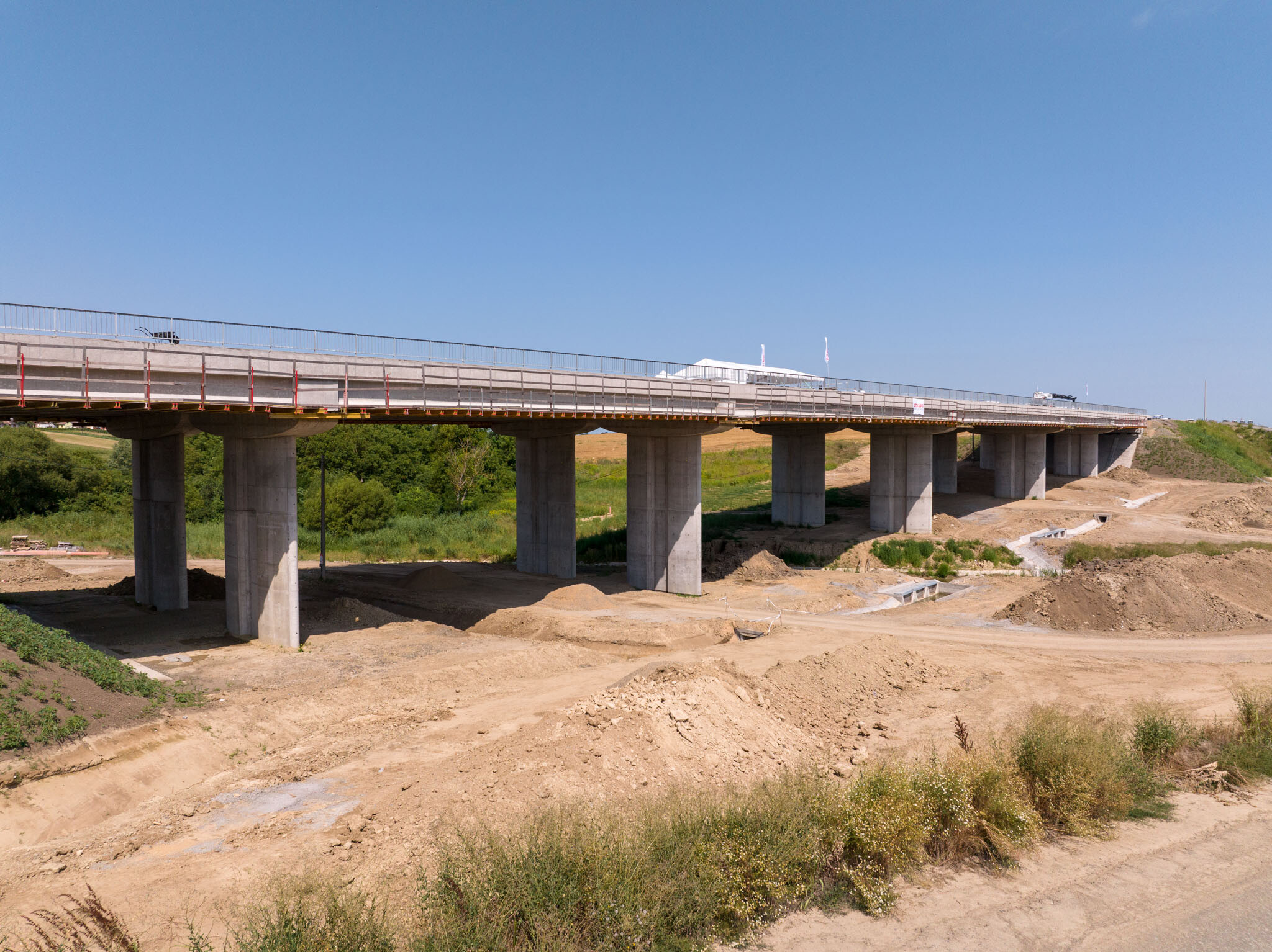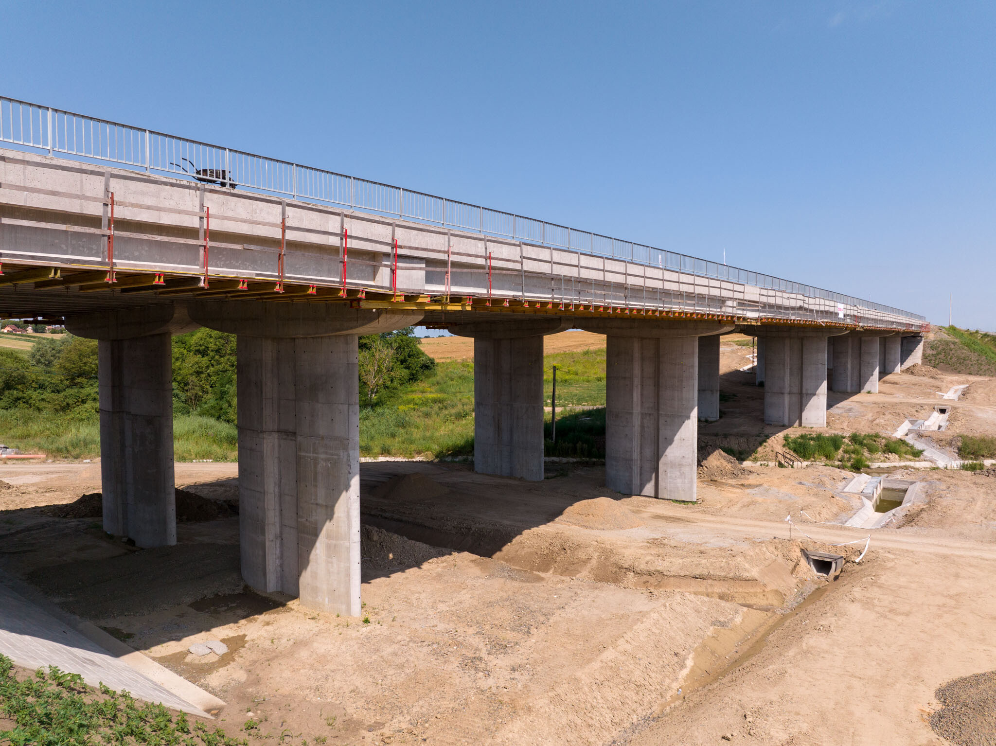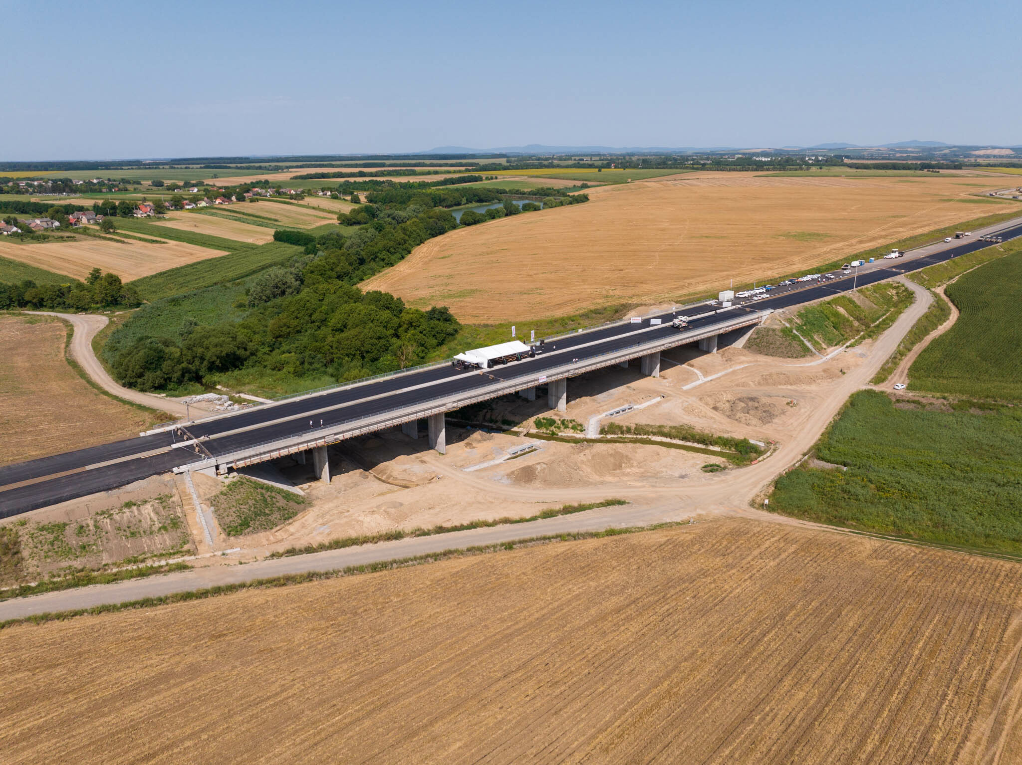 A Strabag és a Duna Aszfalt generálkivitelezésében épülő 20 kilométeres autópálya-szakaszon különleges geometriával épített hidat a Strabag.