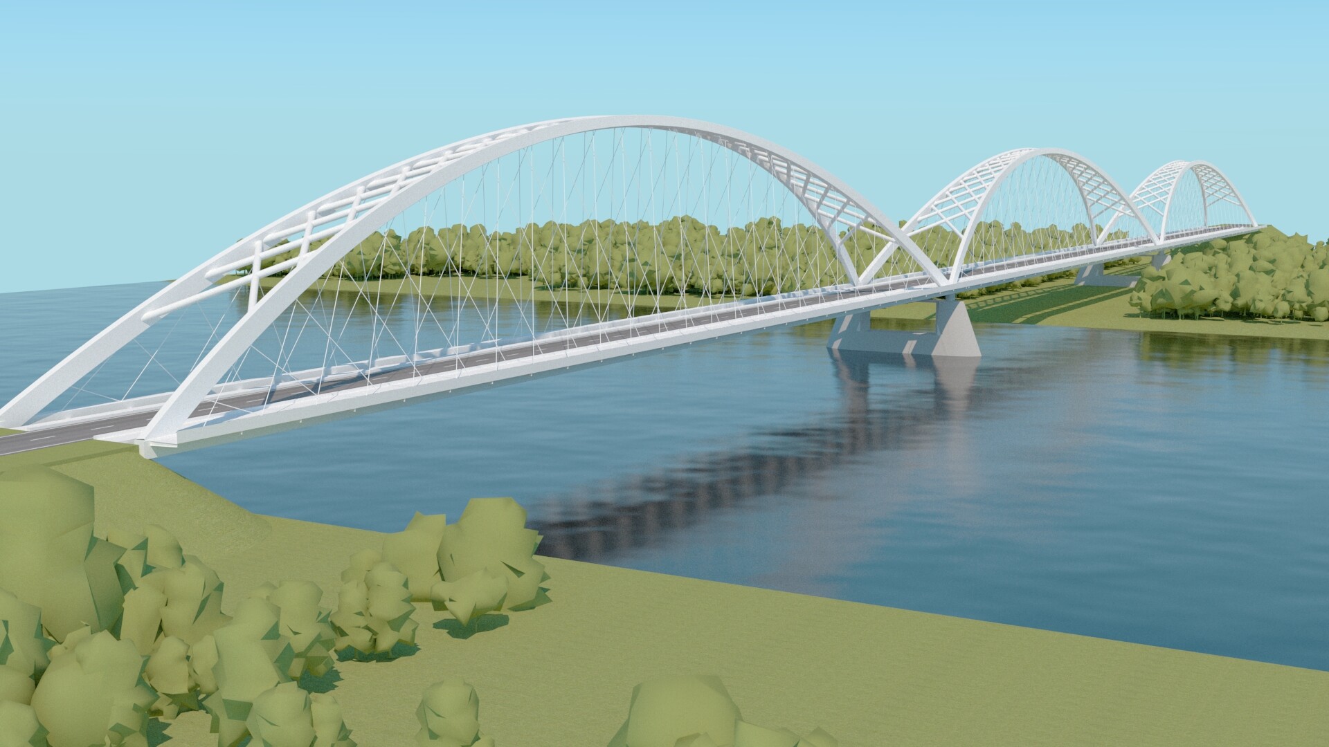 A 2014-ben készült megvalósíthatósági tanulmány, majd a 2019 és 2022 között készült tanulmány, az engedélyezési és a kiviteli tervek Mohács északi oldalán jelölték ki a keresztezés helyét. A végleges terv három egymást követő hálós („network”) kábelelrendezésű ívhidat tartalmaz 270+250+230 méteres támaszközzel, 2x2 közúti sávot és 3,30 méter széles EuroVelo kerékpárutat átvezetve a Duna fölött.