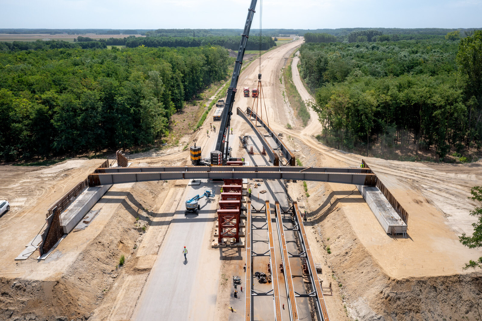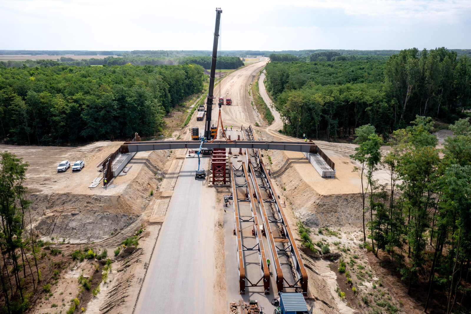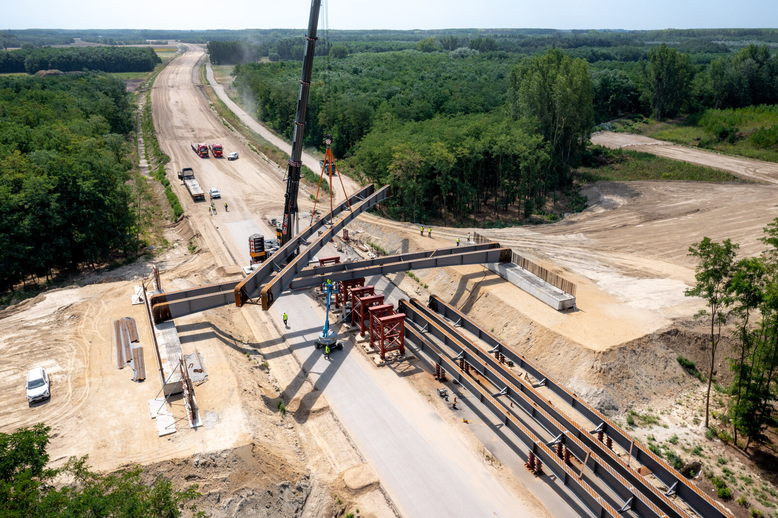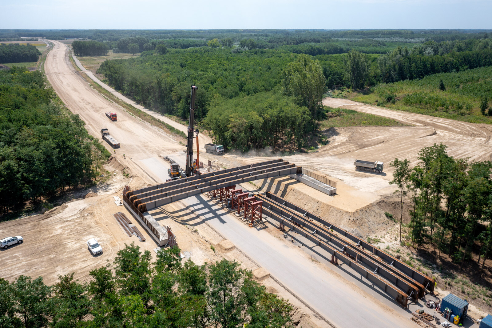 Közel 50 méteres főtartókkal épült tovább a vadátjáró a Kecskemét és Szentkirály közötti szakaszon; a főpályán augusztusban elkezdődött a beton burkolatalap építése.