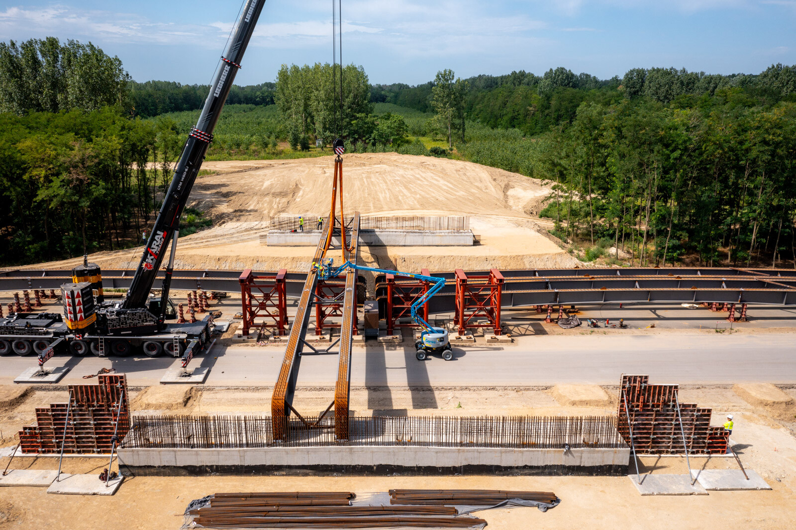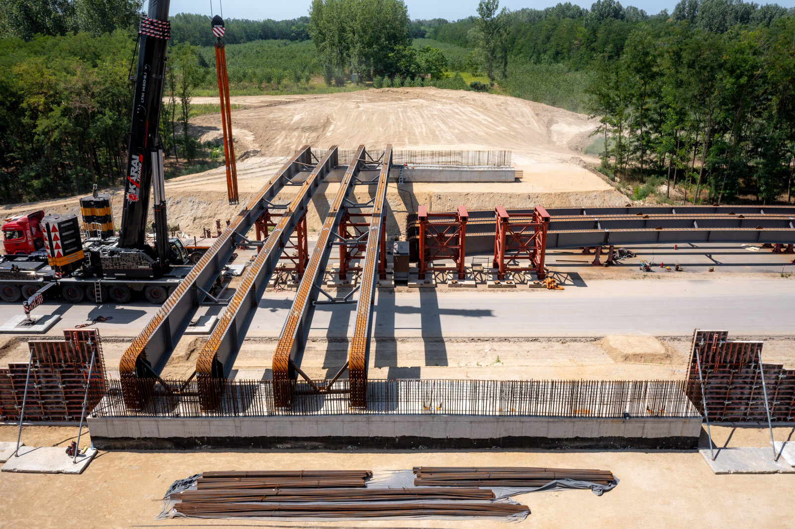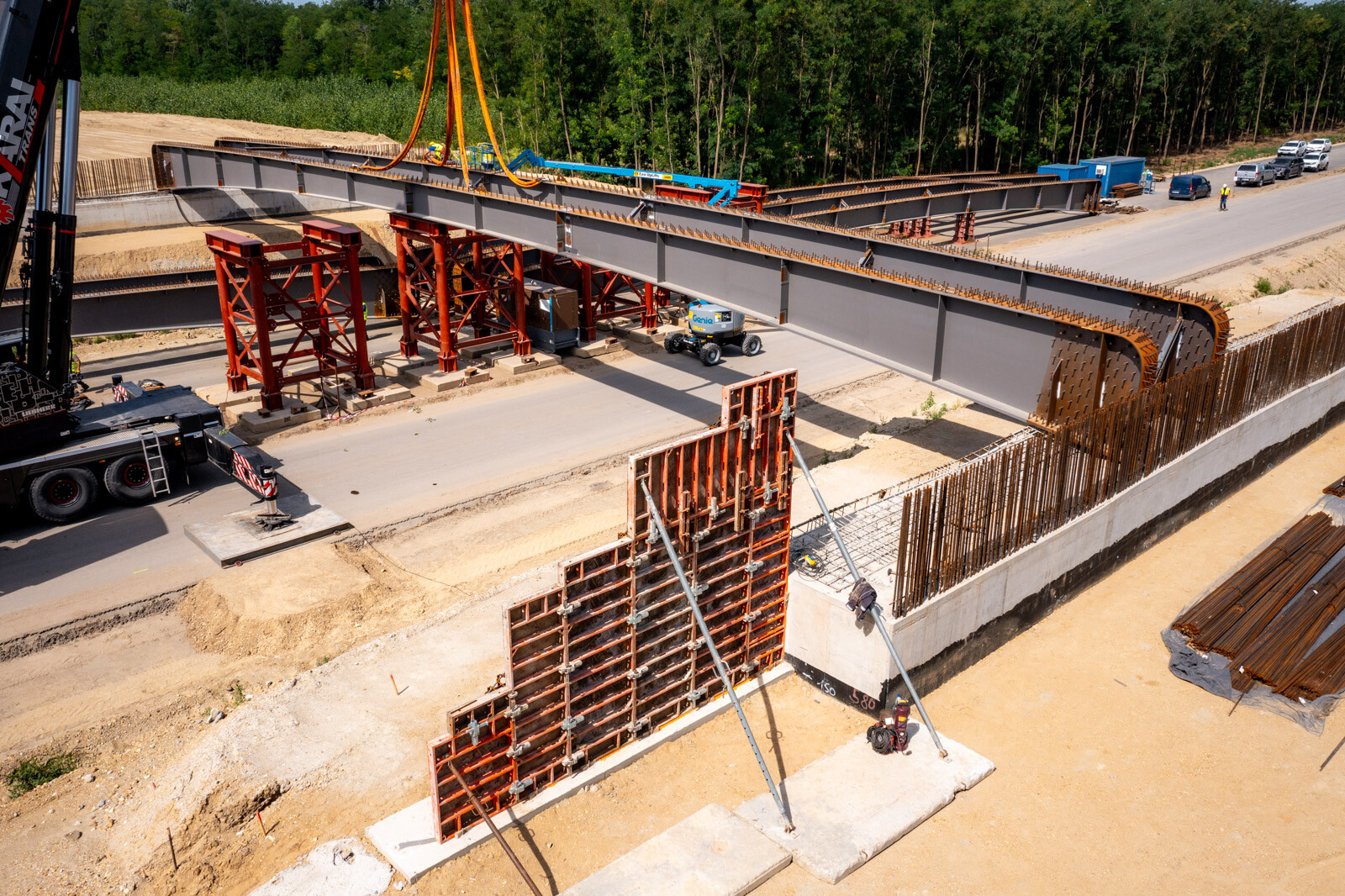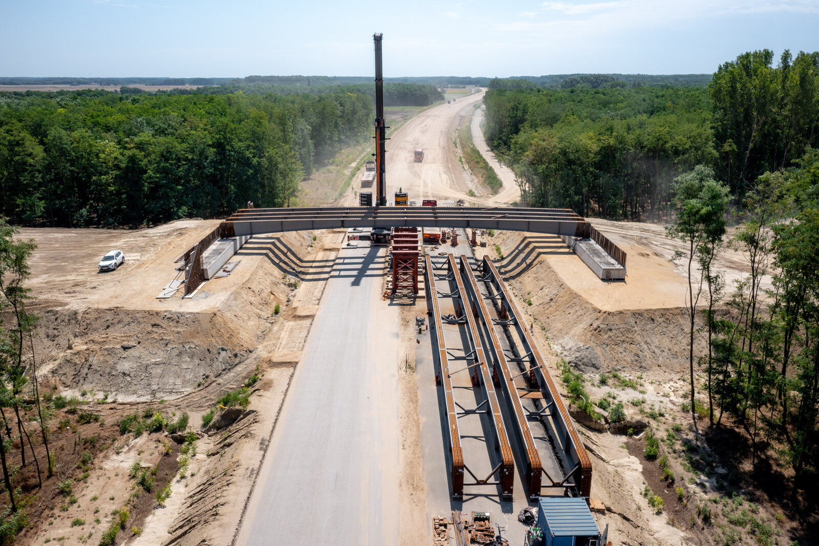 Közel 50 méteres főtartókkal épült tovább a vadátjáró a Kecskemét és Szentkirály közötti szakaszon; a főpályán augusztusban elkezdődött a beton burkolatalap építése.