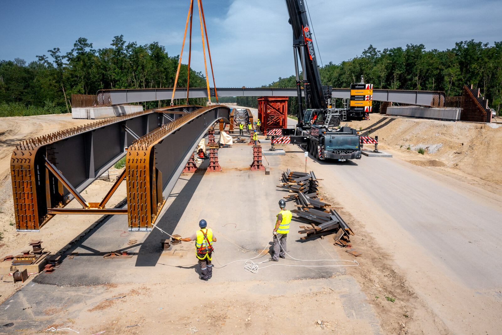 Vadátjáró acél főtartóit helyezték el az M44 gyorsforgalmi út befejező szakaszán – értesült a magyarepitok.hu. A Békéscsaba elérhetőségét megteremtő gyorsforgalmi út zárószakasza a Hódút Építő Kft. generálkivitelezésében épül meg.