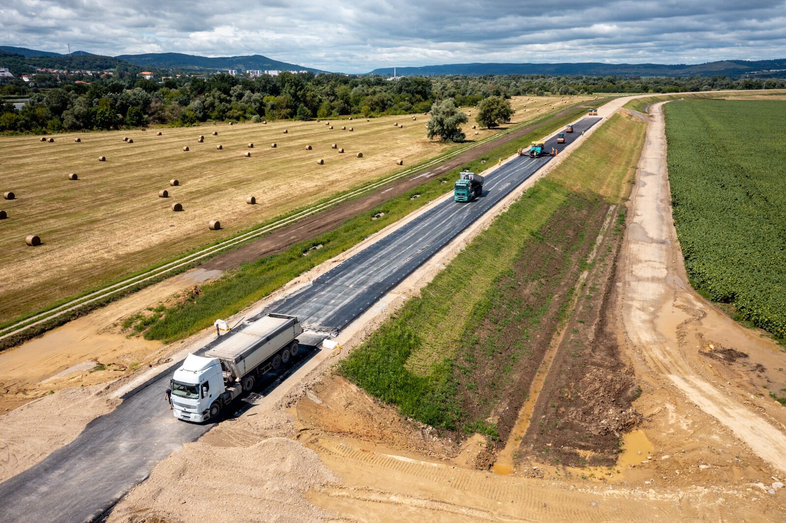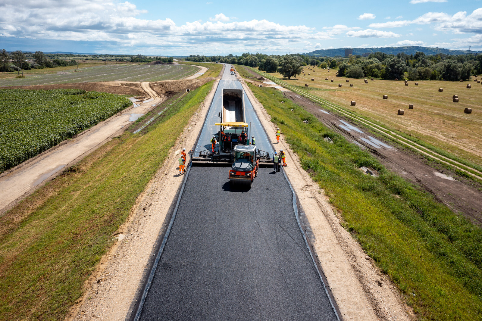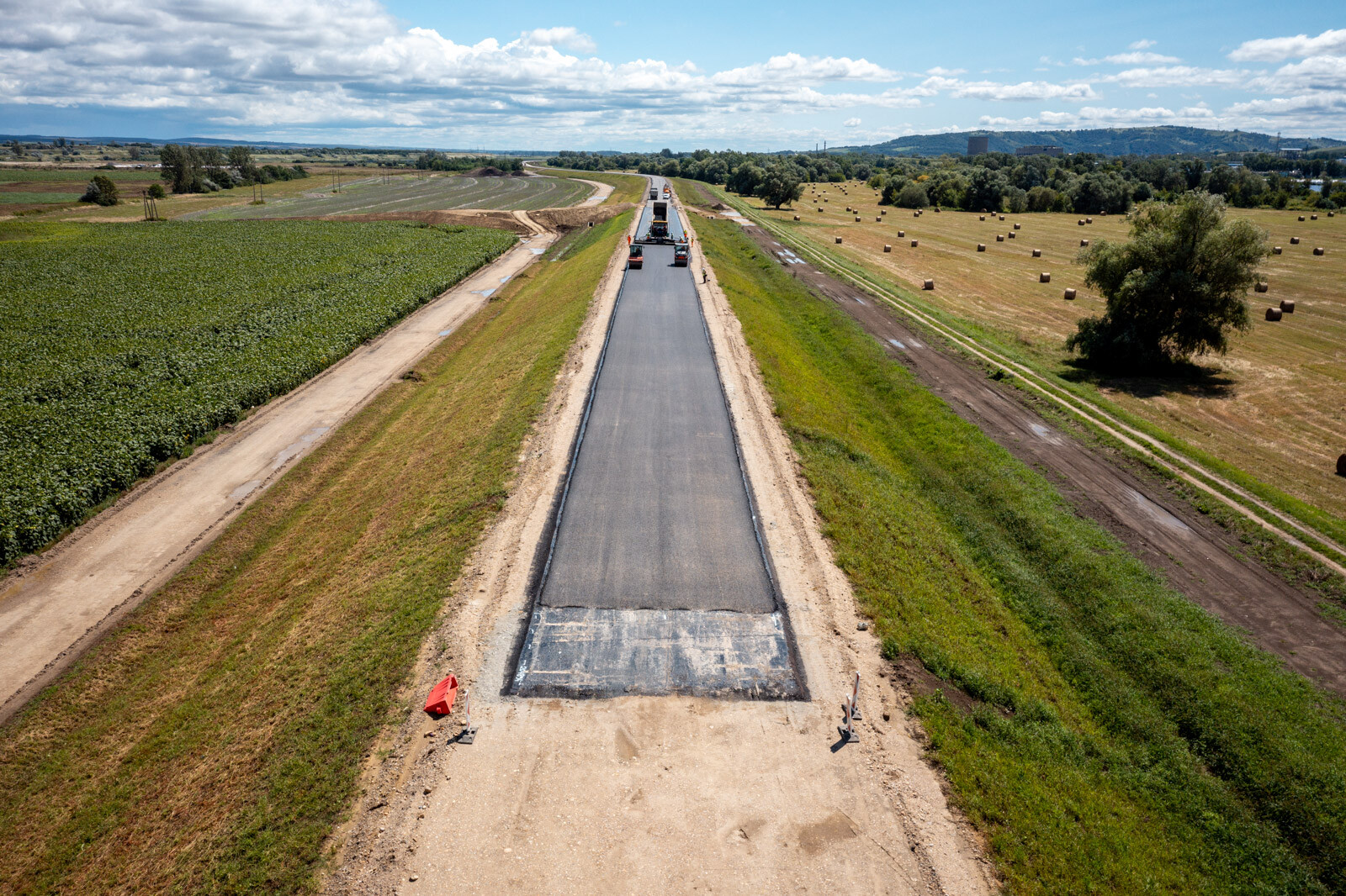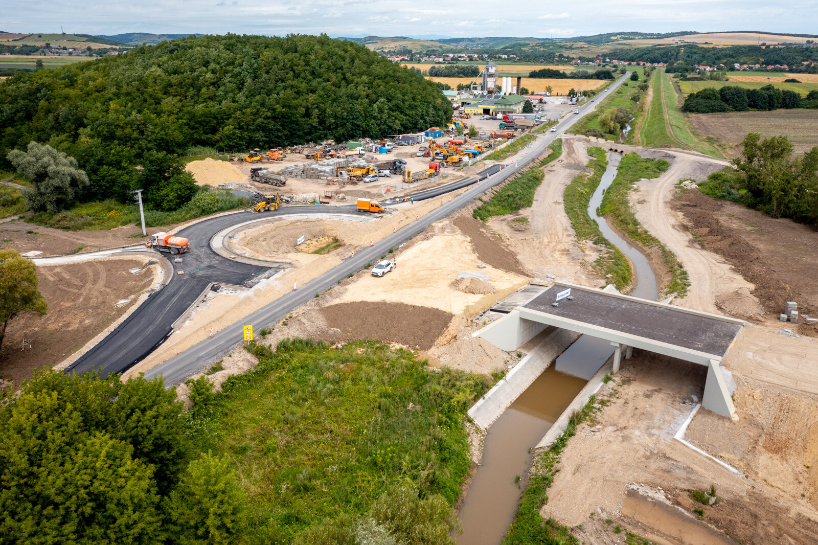 Juhász Zsolt, a SWIETELSKY Magyarország Kft. projektvezetője kérdésünkre elmondta, hogy a keresztező közművek kiváltása mindenhol megtörtént és az elkészült új vezetékeket már átadták az üzemeltetőknek. A főpálya aszfaltozása augusztus végére készül el, jelenleg a a pályaszerkezet építése mellett a füvesítés és a környezetrendezés van folyamatban, valamint zajlanak a műtárgyak befejező munkái. Az aszfaltozás után következik a forgalomtechnika kiépítése.