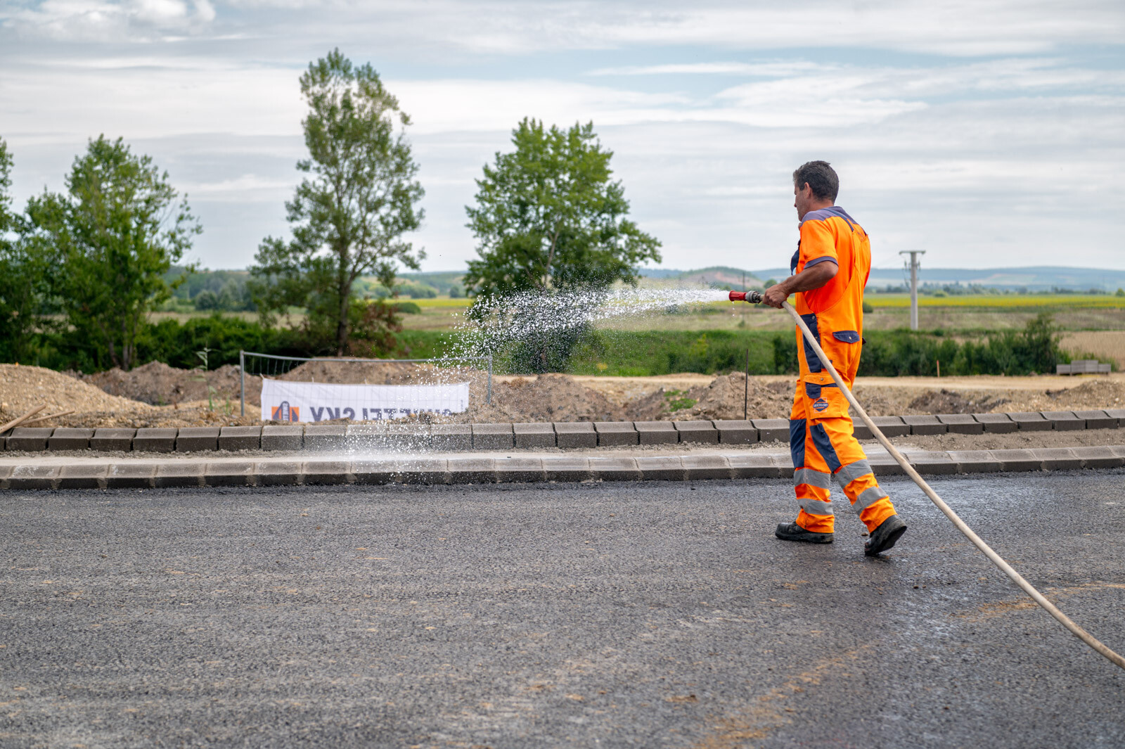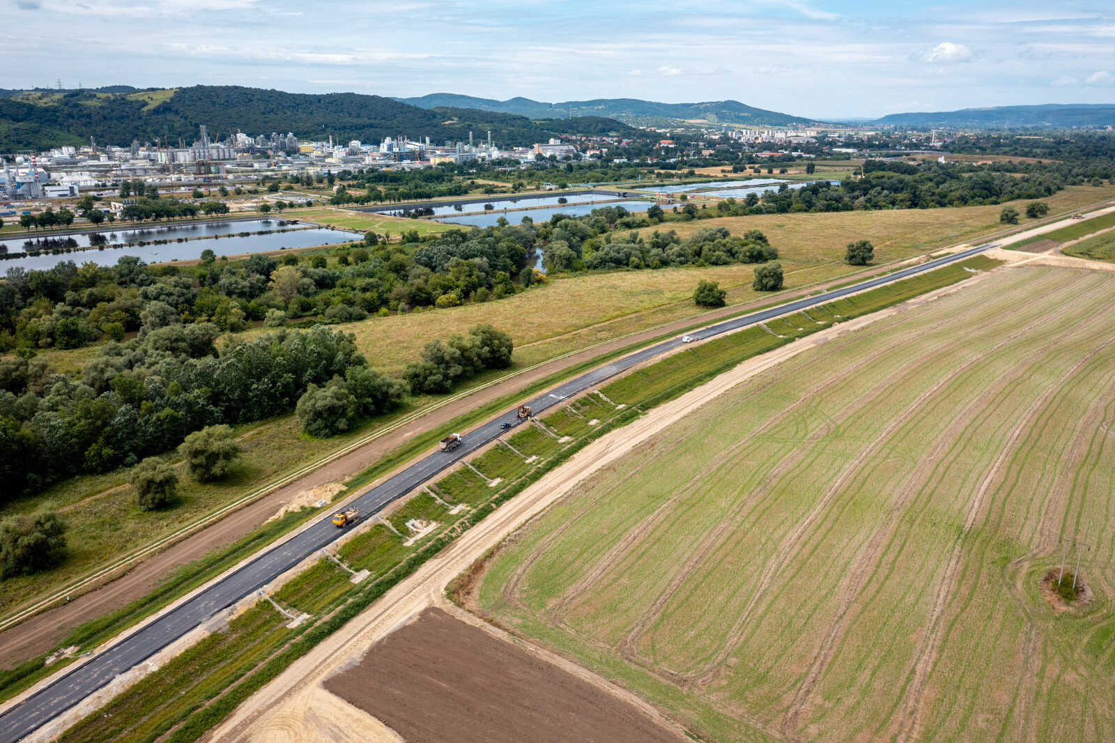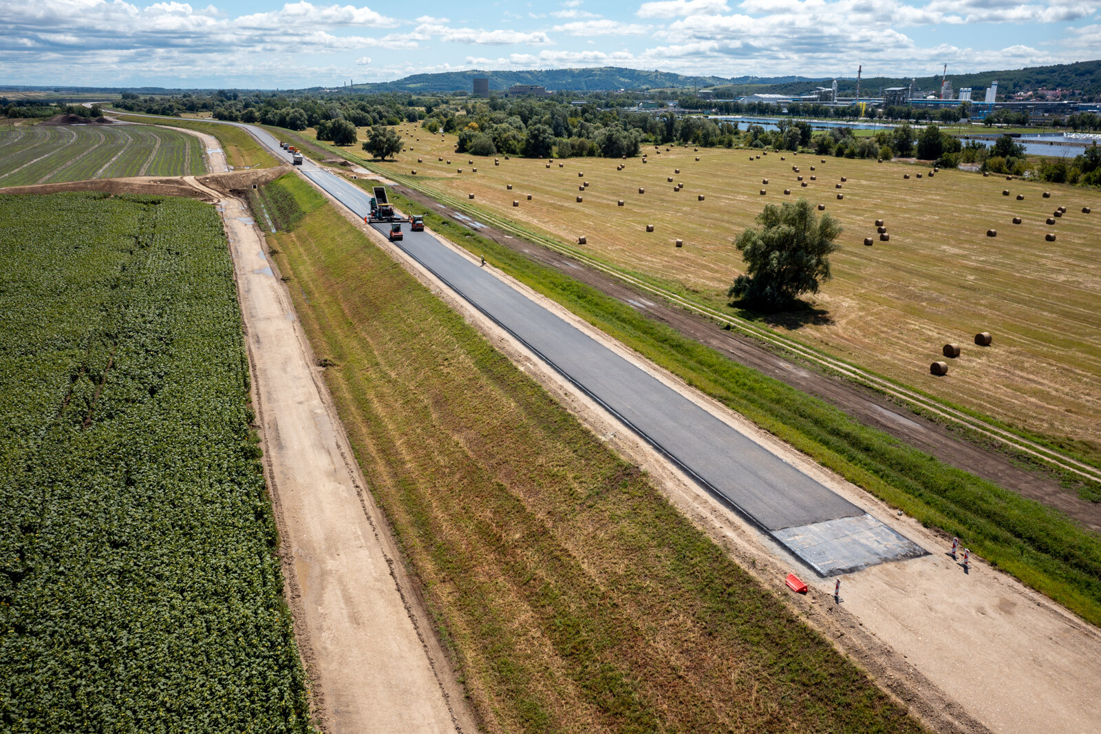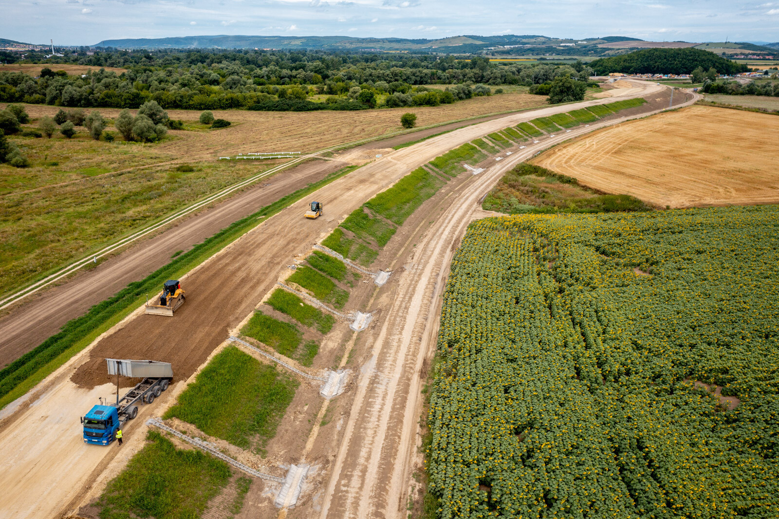 Juhász Zsolt, a SWIETELSKY Magyarország Kft. projektvezetője kérdésünkre elmondta, hogy a keresztező közművek kiváltása mindenhol megtörtént és az elkészült új vezetékeket már átadták az üzemeltetőknek. A főpálya aszfaltozása augusztus végére készül el, jelenleg a a pályaszerkezet építése mellett a füvesítés és a környezetrendezés van folyamatban, valamint zajlanak a műtárgyak befejező munkái. Az aszfaltozás után következik a forgalomtechnika kiépítése.