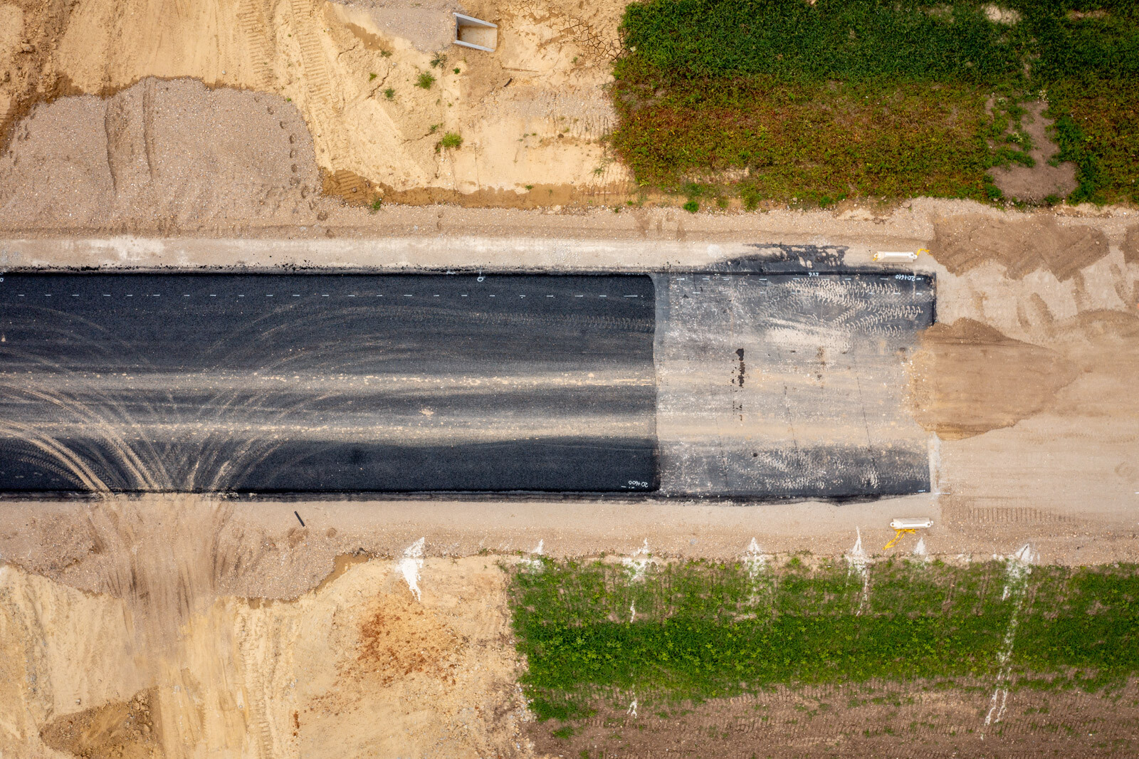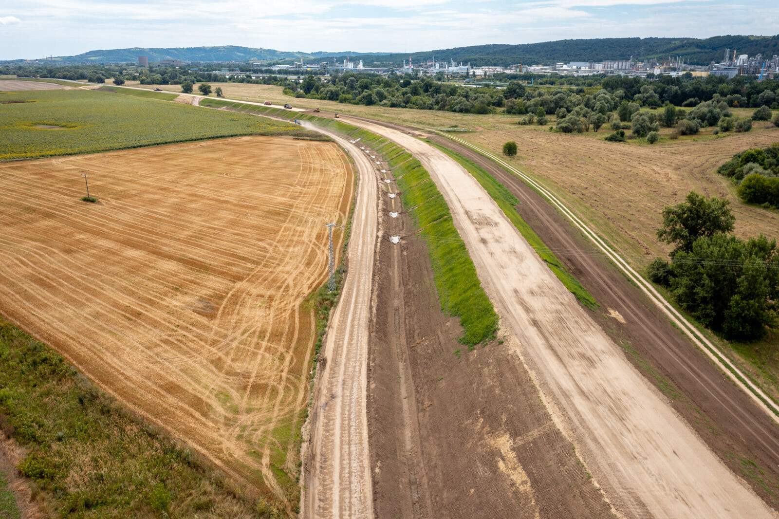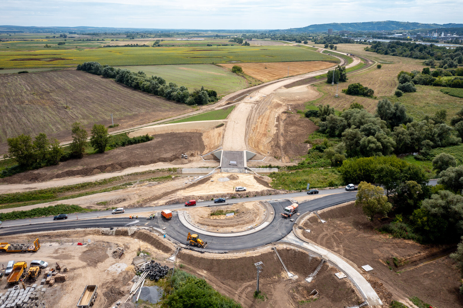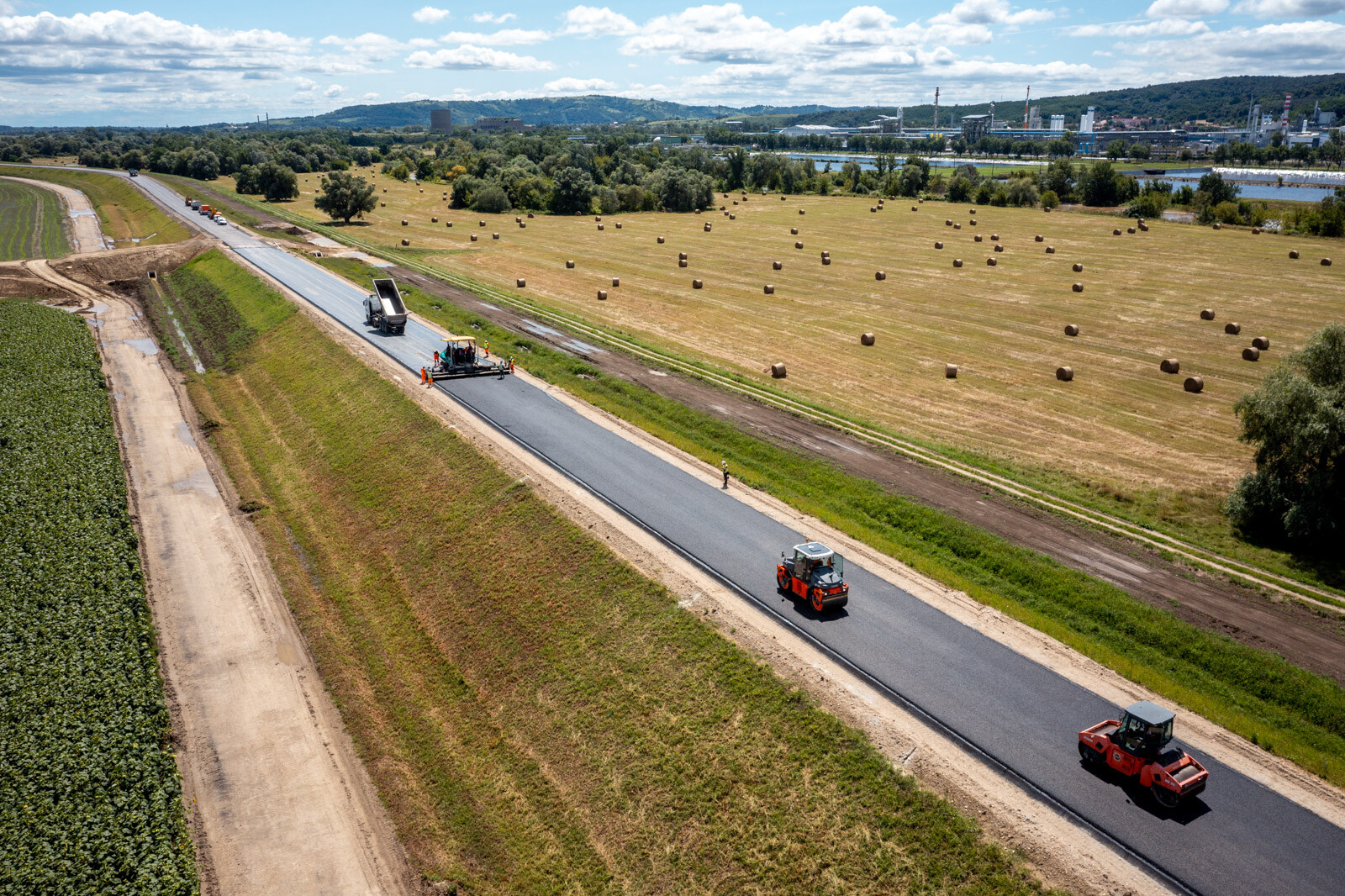 Juhász Zsolt, a SWIETELSKY Magyarország Kft. projektvezetője kérdésünkre elmondta, hogy a keresztező közművek kiváltása mindenhol megtörtént és az elkészült új vezetékeket már átadták az üzemeltetőknek. A főpálya aszfaltozása augusztus végére készül el, jelenleg a a pályaszerkezet építése mellett a füvesítés és a környezetrendezés van folyamatban, valamint zajlanak a műtárgyak befejező munkái. Az aszfaltozás után következik a forgalomtechnika kiépítése.
