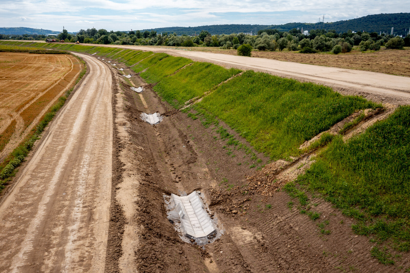 Mint azt egy korábbi cikkünkben megírtuk: a SWIETELSKY Magyarország által kivitelezett szakasz mintegy 200-300 méternyi hosszon árvízvédelmi funkciót is ellát. Az elkerülő út ugyanis a Sajó völgyében vezet, amely egykor a Sajó vízjárta árterülete volt. Éppen ezért a töltés kialakítására nagy gondot fordítottak a szakemberek.