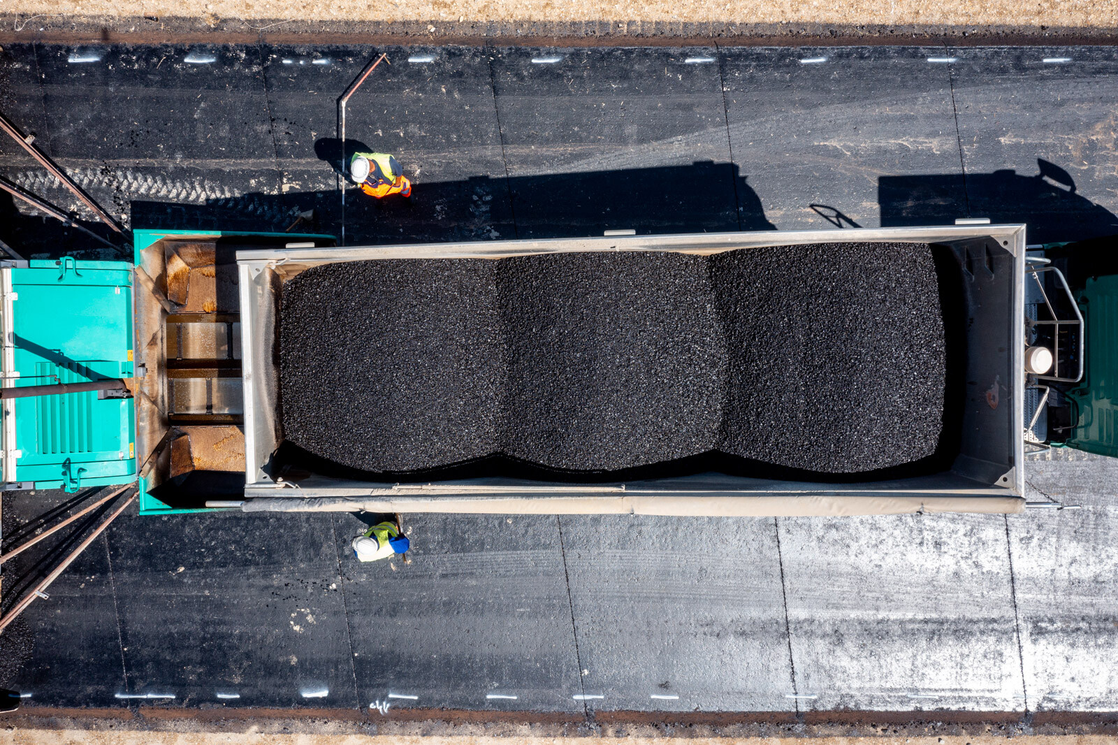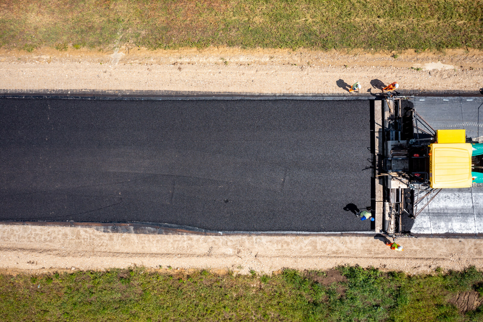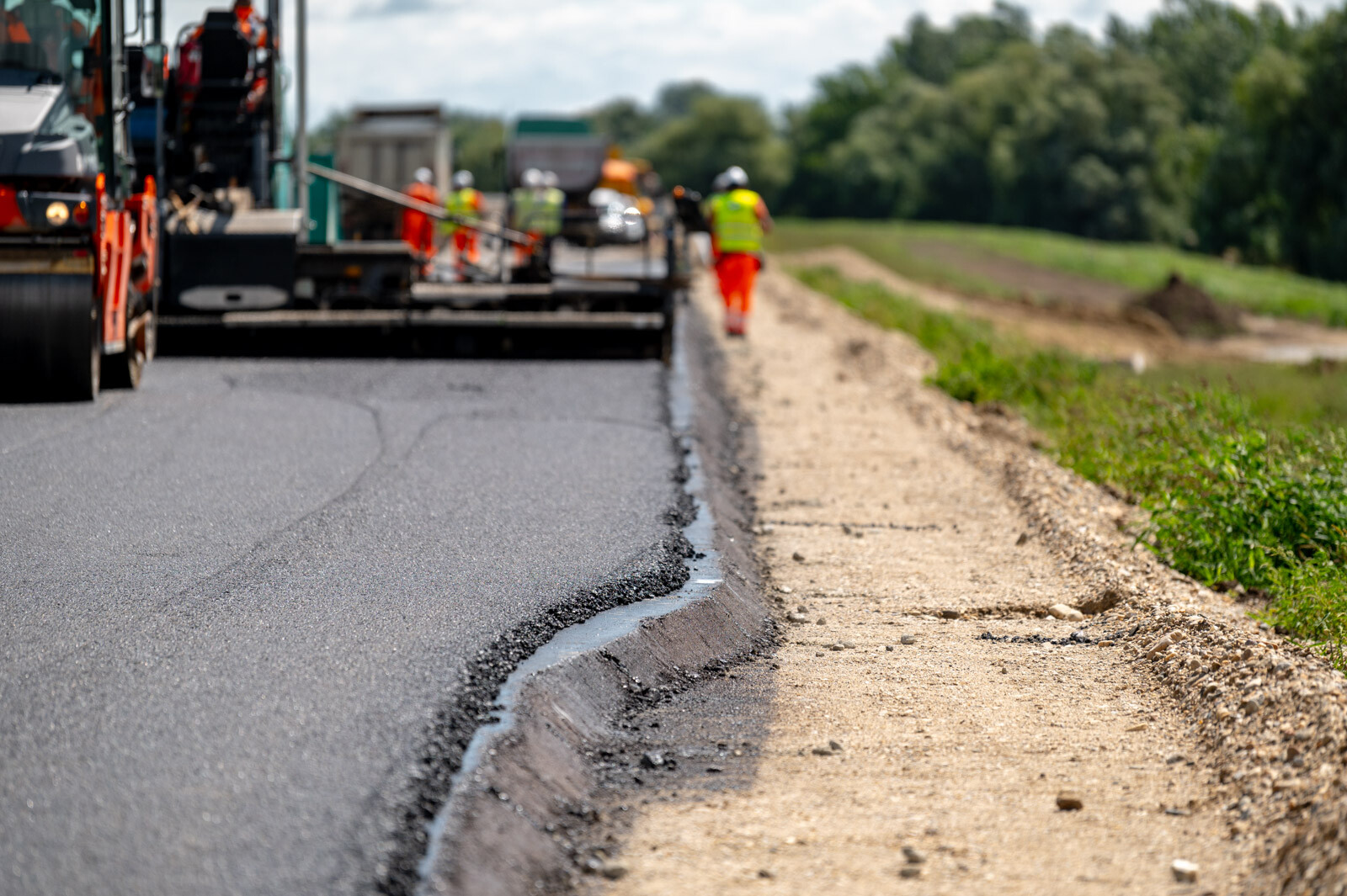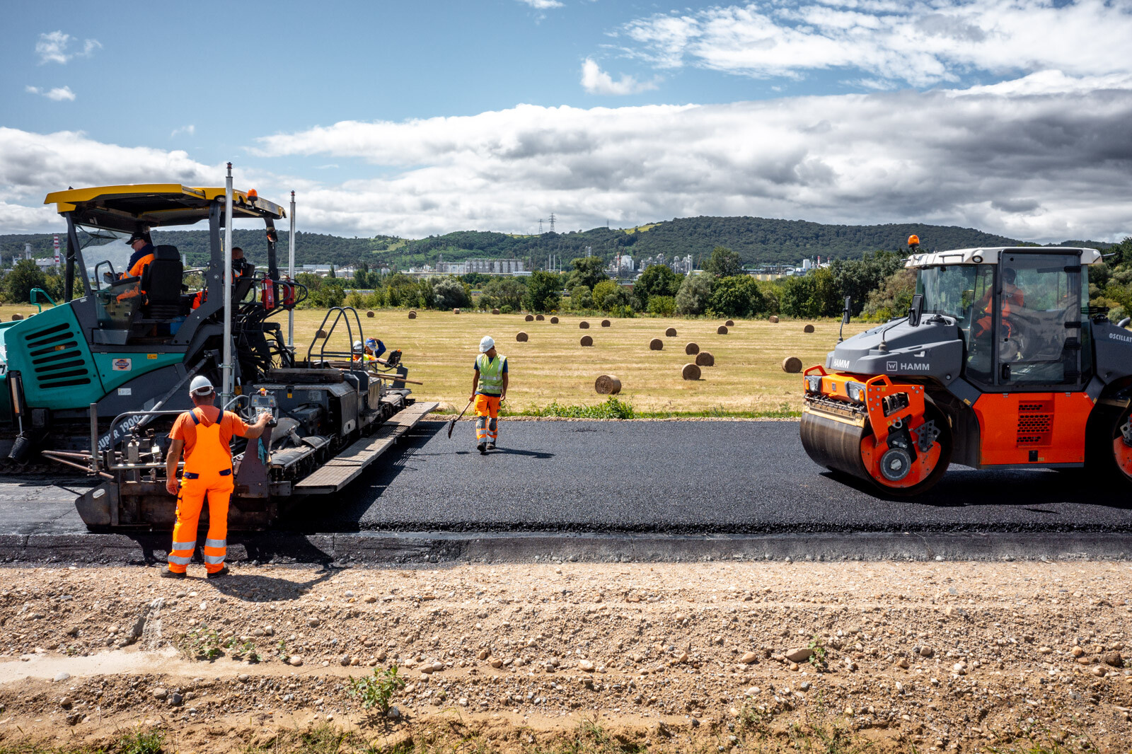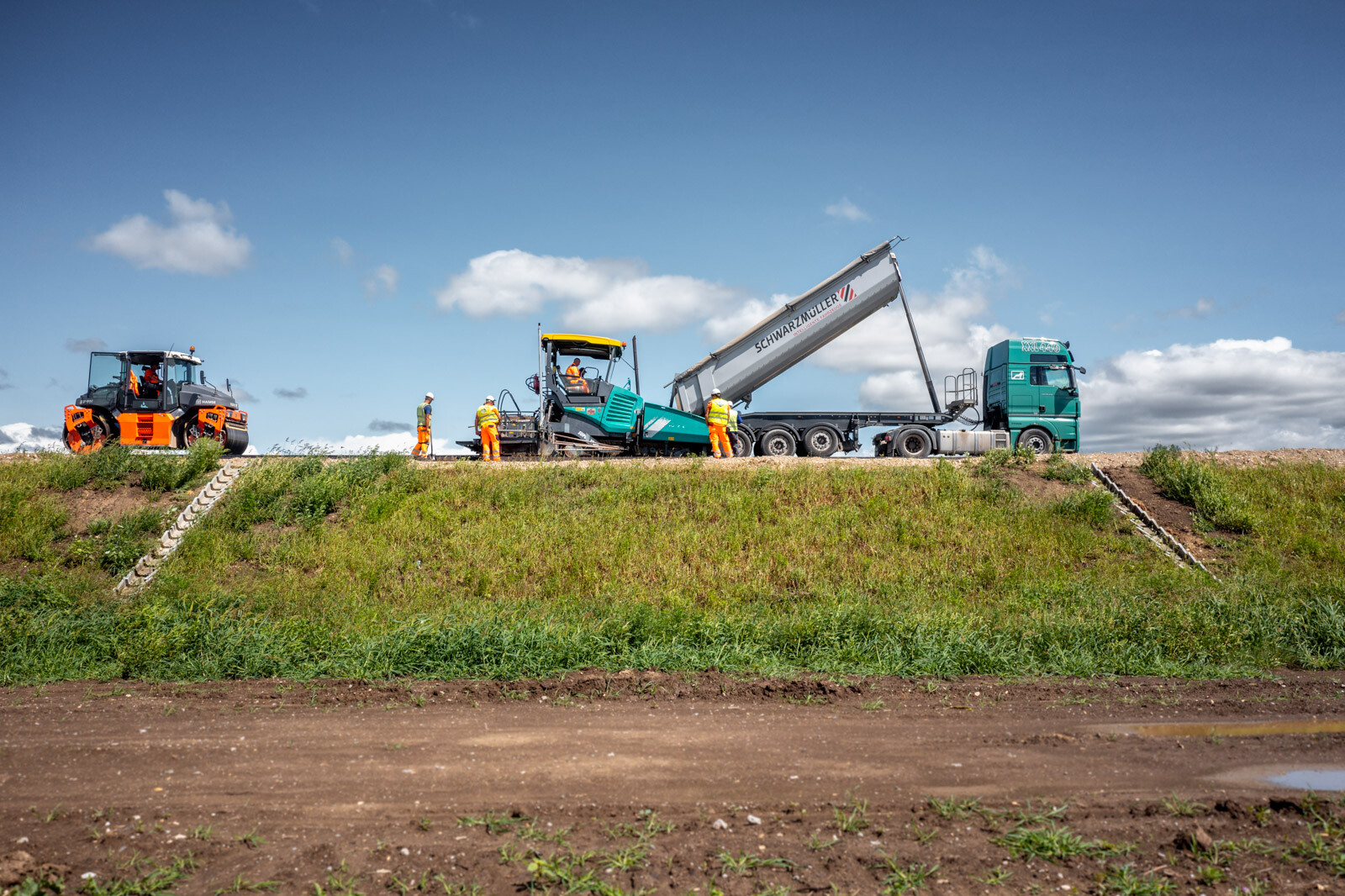 Stábunk megtekintette a kivitelezést, és látványos felvételeket készíthettünk az épülő körforgalomról. Ottjártunkkor az AC-22 aszfalt alapréteg beépítése történt 260-as elkerülő út főpályájának 20+600 és a 20+890 kilométerszelvények közötti szakaszán. A bedolgozást egy széles paddal felszerelt finisherrel végezték, mellyel a pálya teljes szélességében lehetséges az aszfaltrétegek terítése.