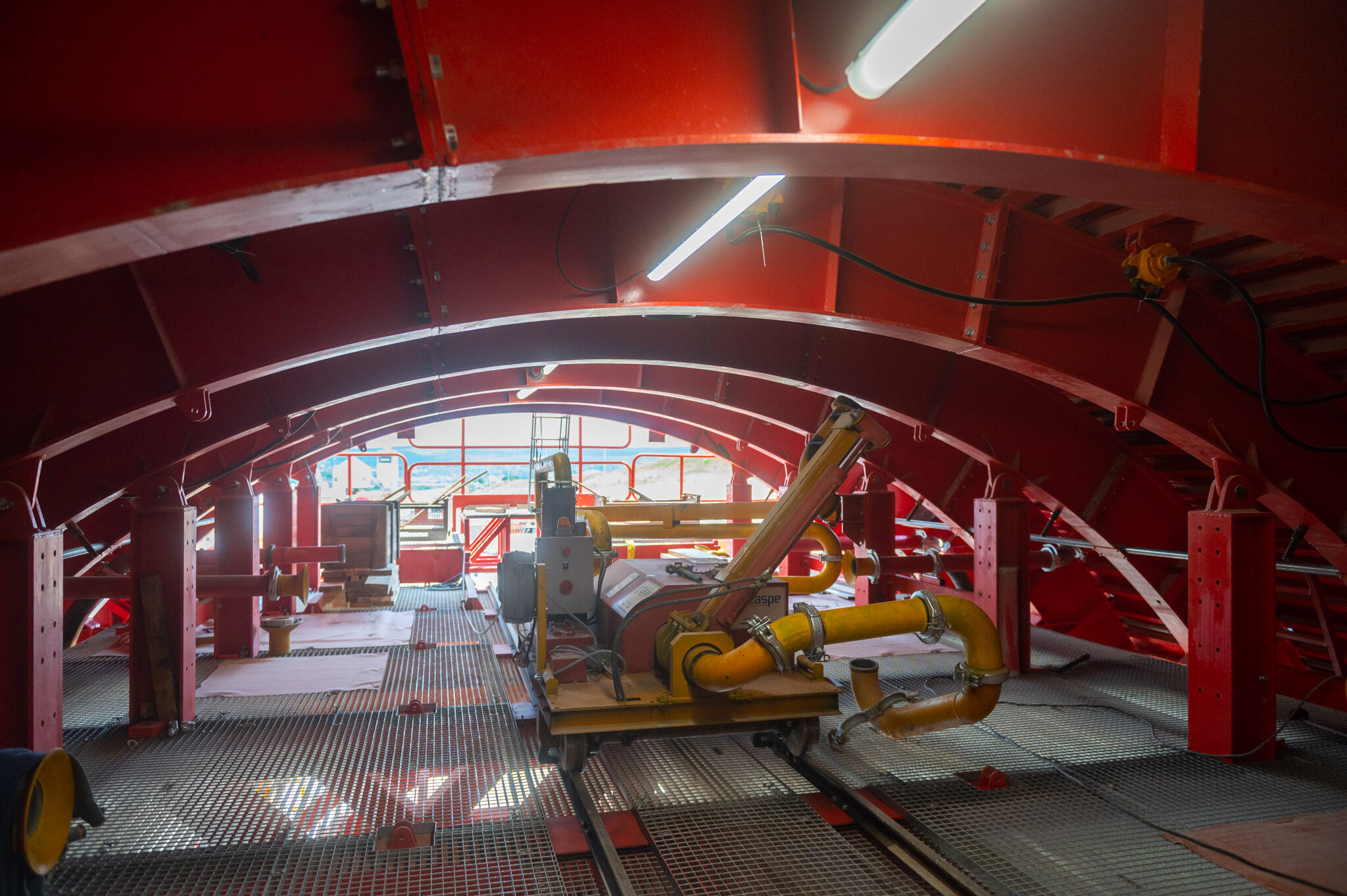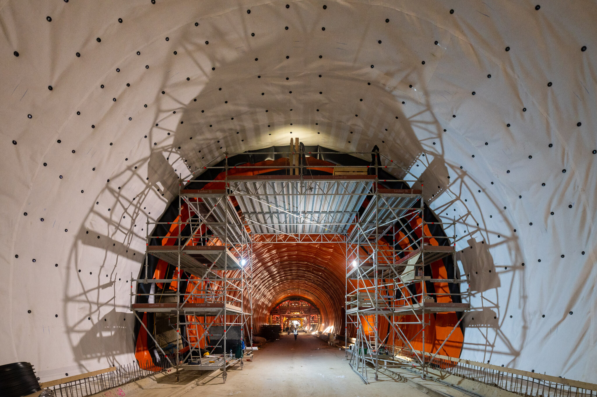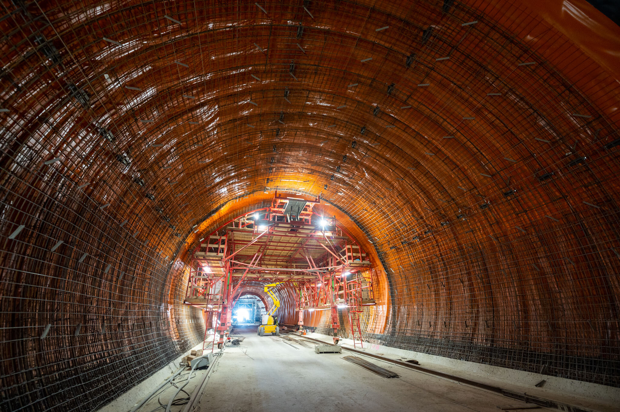 A járatokban sikeresen elvégzett fejtés után az alagút végleges szerkezetéhez mindkét járat esetében 35 centiméter vastag vasbetonszerkezet készül egy négytagú géplánc közreműködésével.