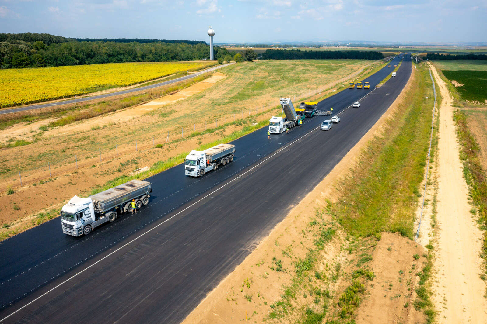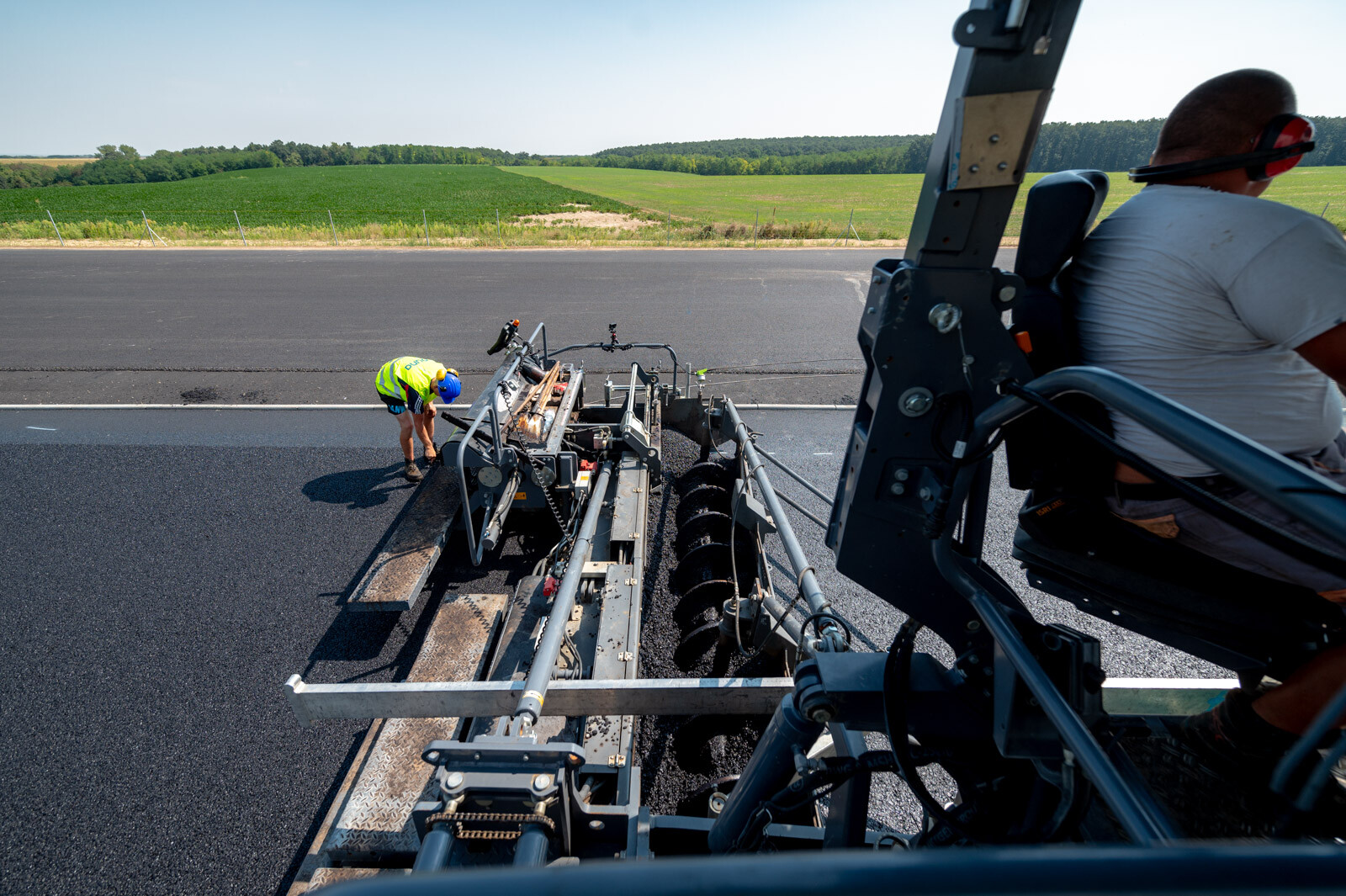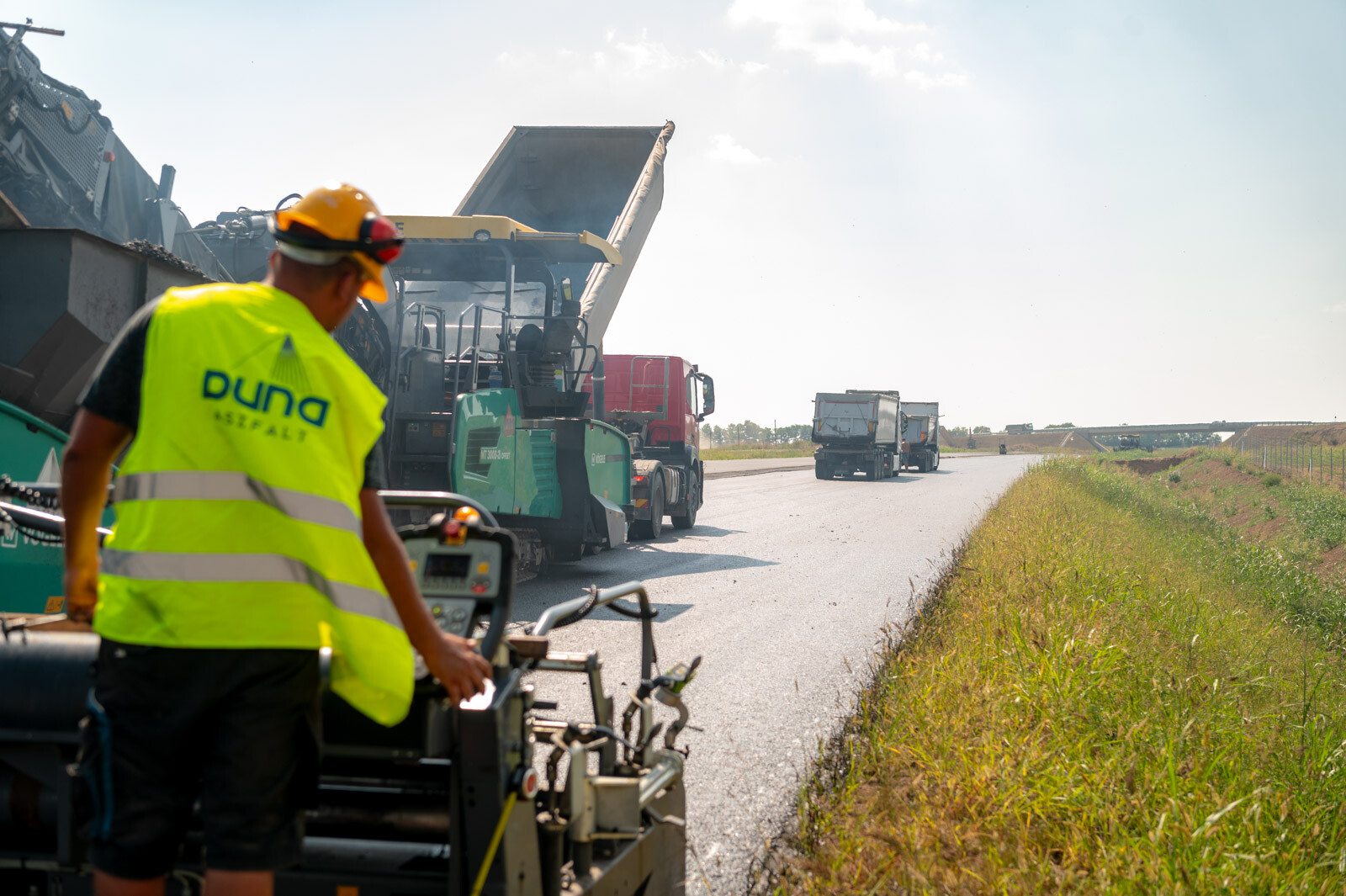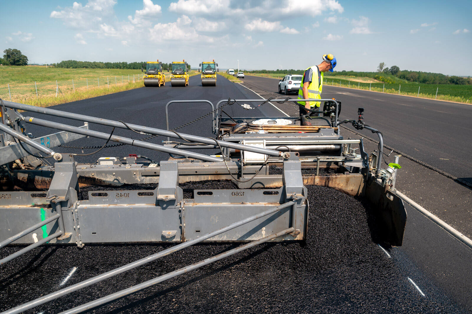 A Duna Aszfalt és a STRABAG kivitelezésében zajló projektben elkészült a főpálya kopóréteg építése az autópálya országhatárig tartó szakaszán.