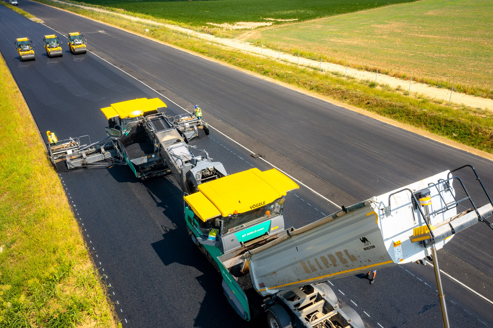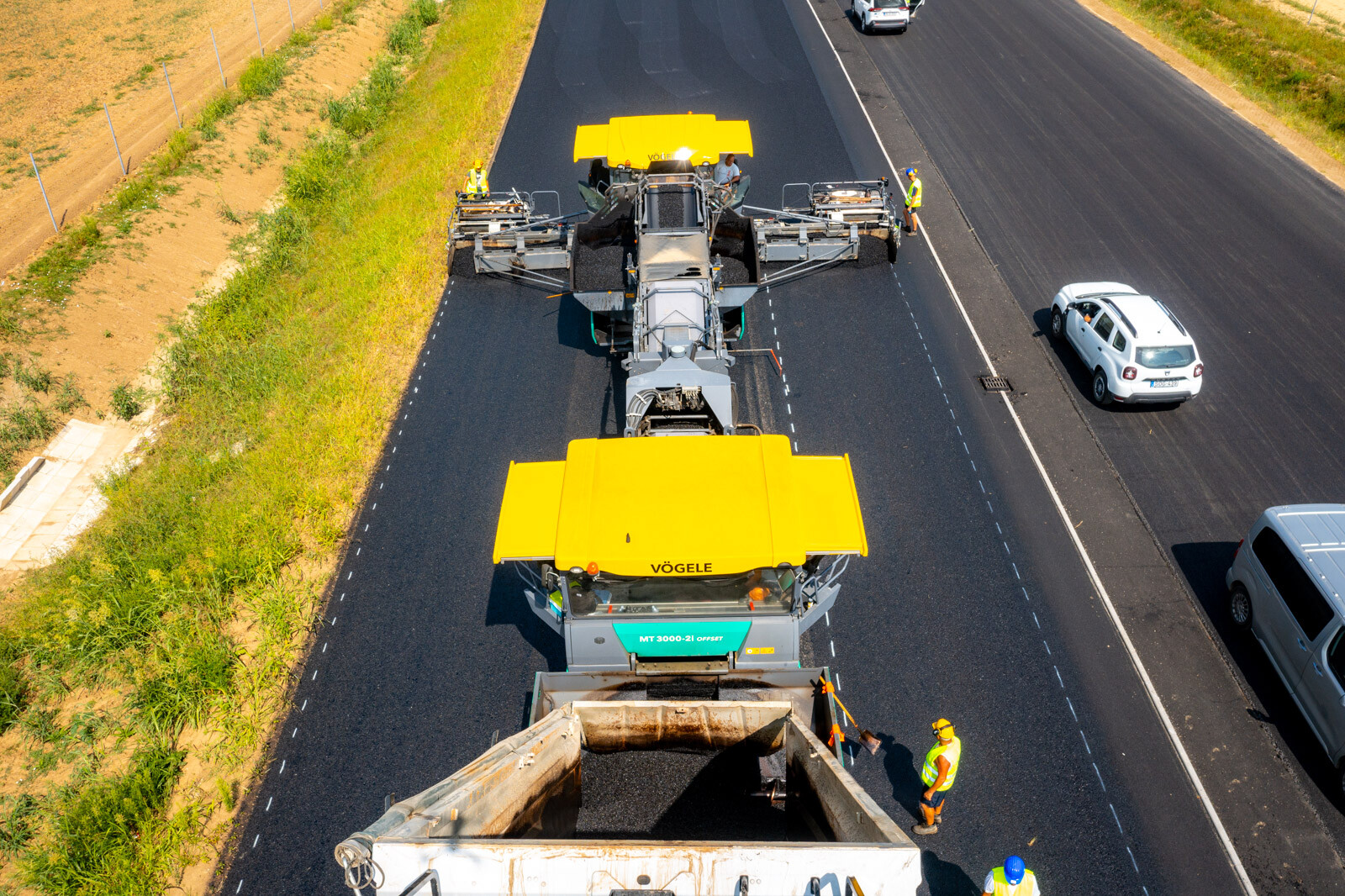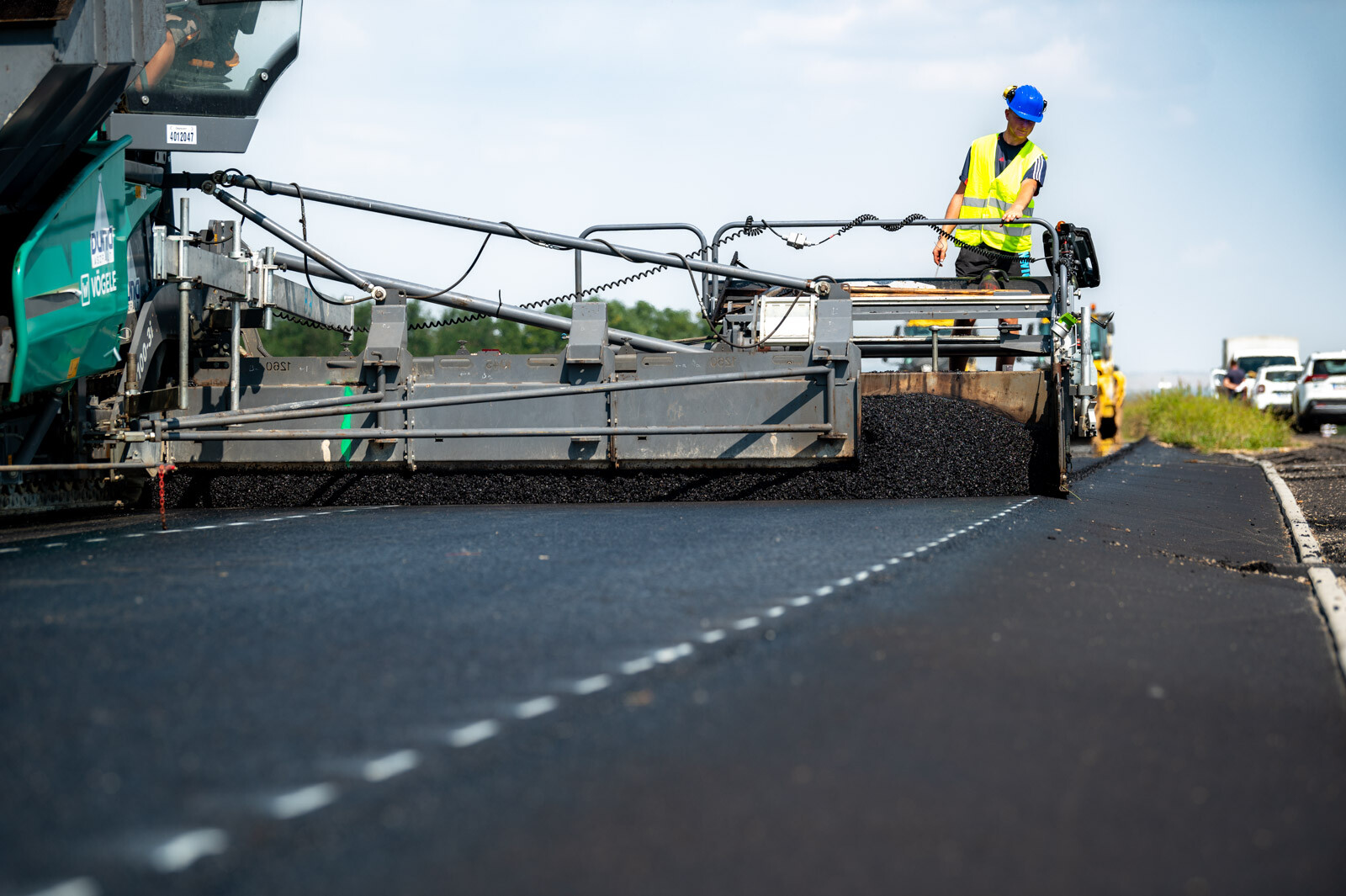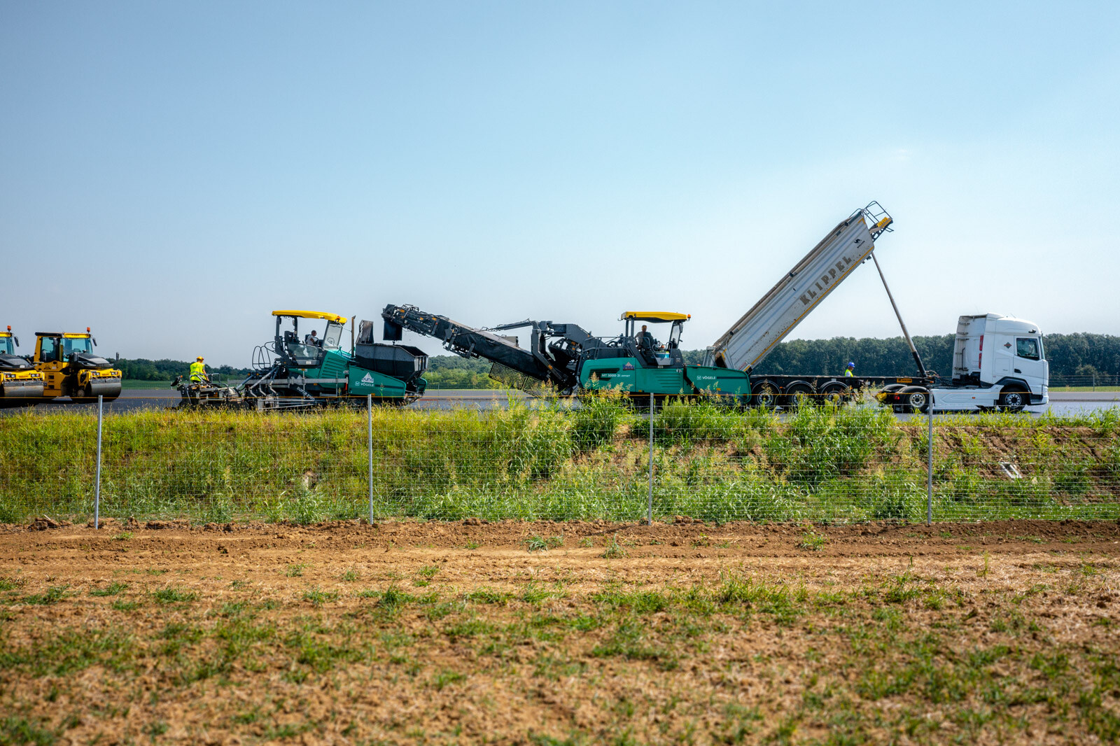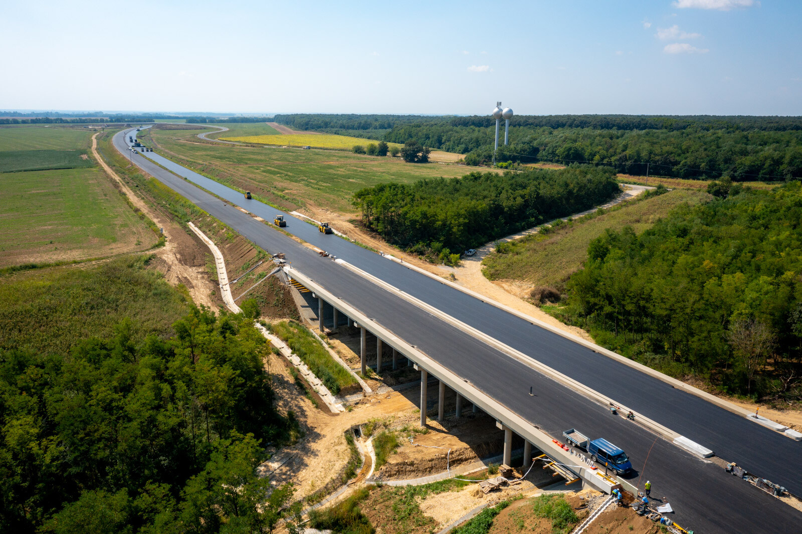 A Duna Aszfalt és a STRABAG kivitelezésében zajló projektben elkészült a főpálya kopóréteg építése az autópálya országhatárig tartó szakaszán.