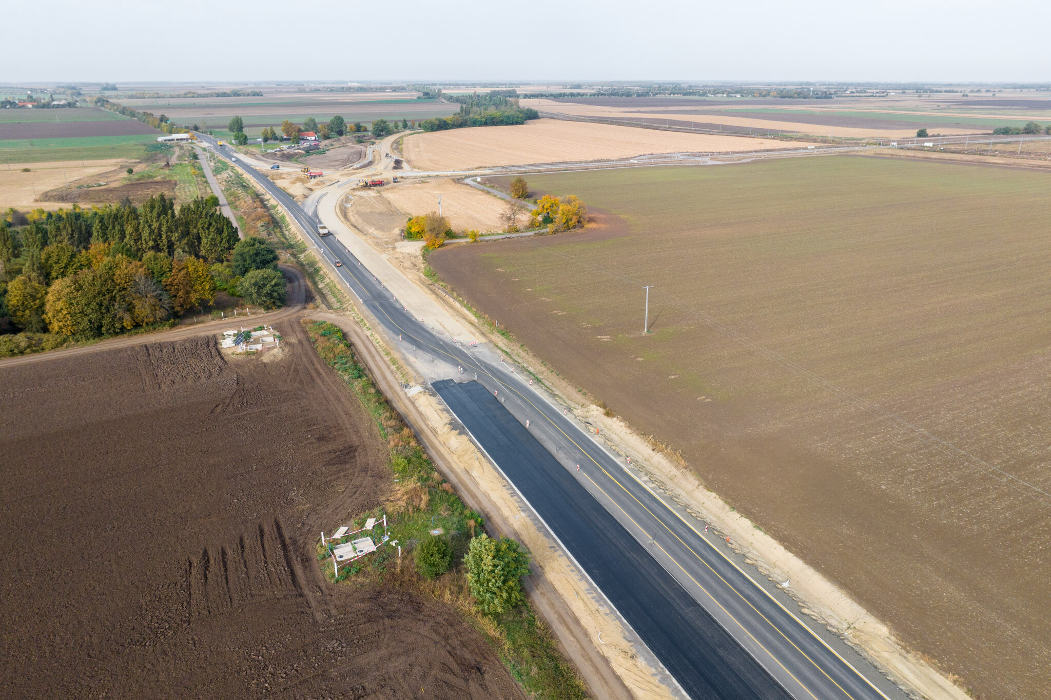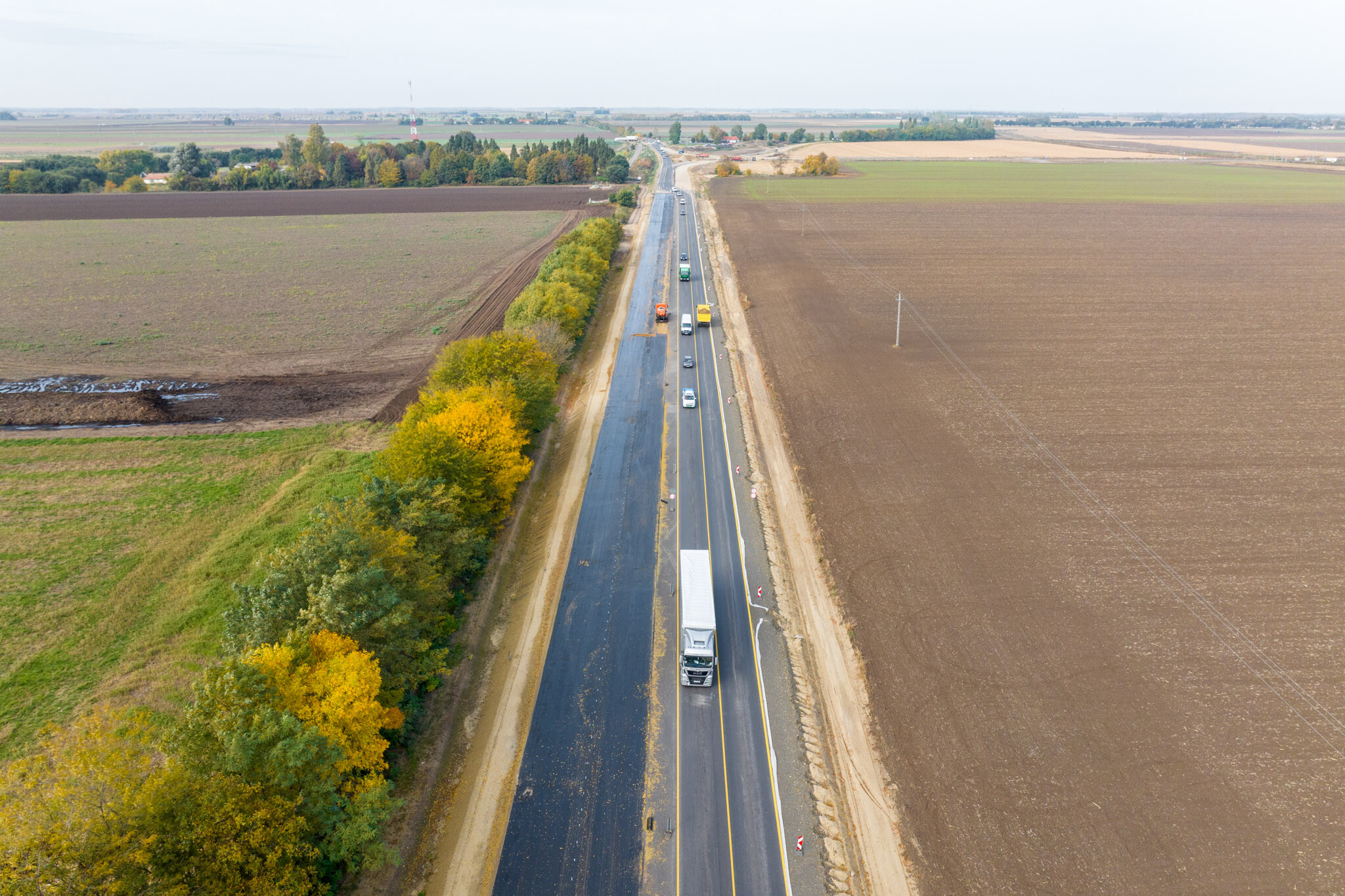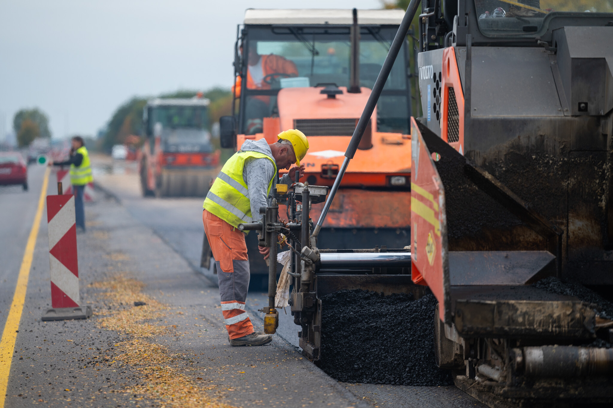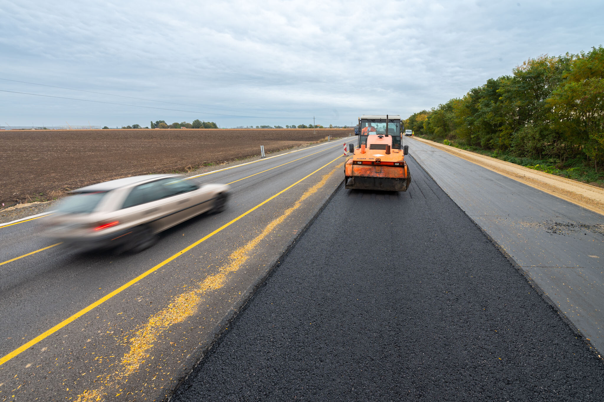 A hidraulikus kötőanyagú burkolatalap elkészültét követően a teljes felületen megkezdődnek az aszfaltozási munkák, majd várhatóan 2023. november végéig - az időjárás függvényében – már a teljes felületen elkészül az aszfalt kopóréteg. Ezzel párhuzamosan megkezdődhetnek a padkázási munkálatok, valamint kiépítik a végleges forgalomtechnikai elemeket is (szalagkorlát, beton terelőfal, burkolati jelek festése) – részletezte a projektvezető.