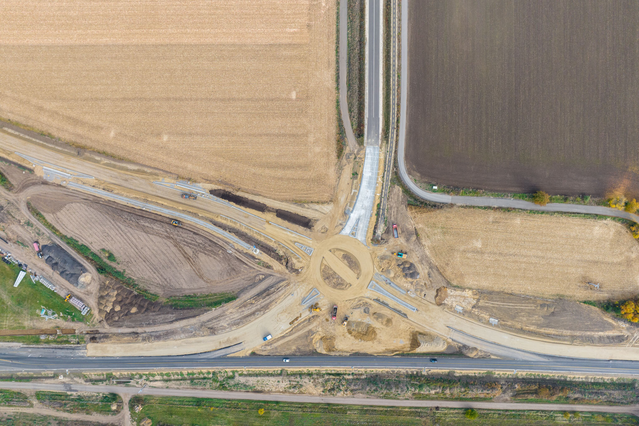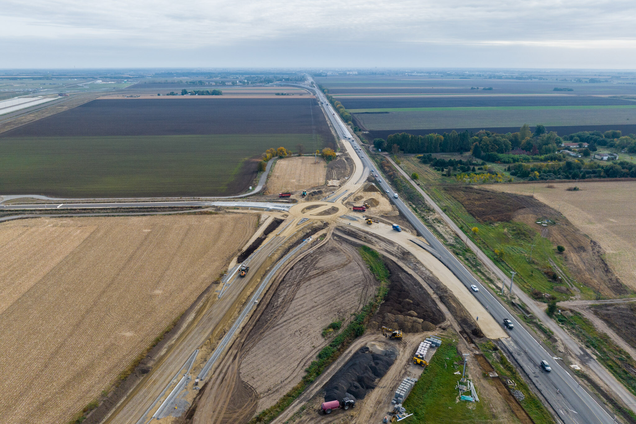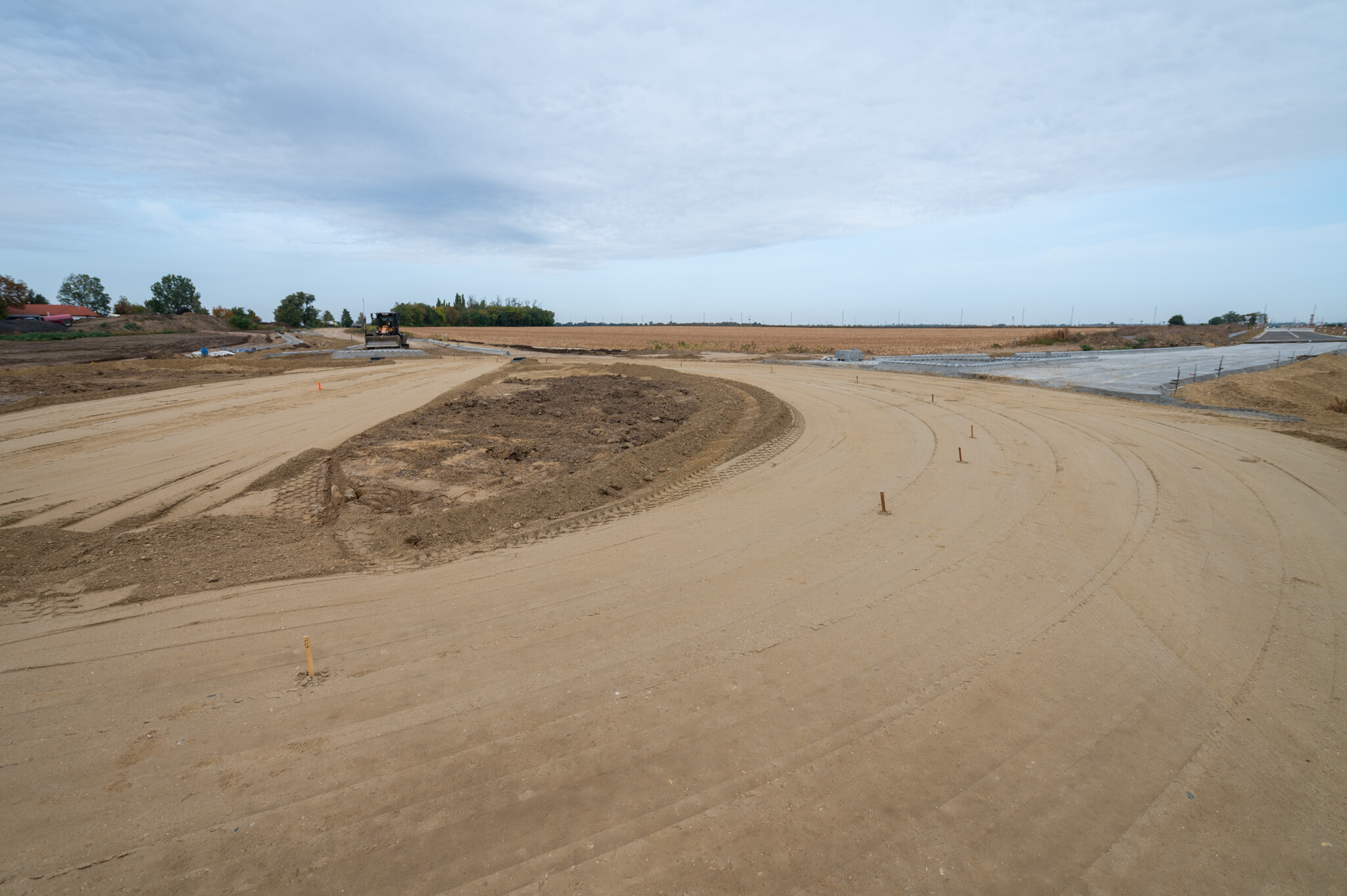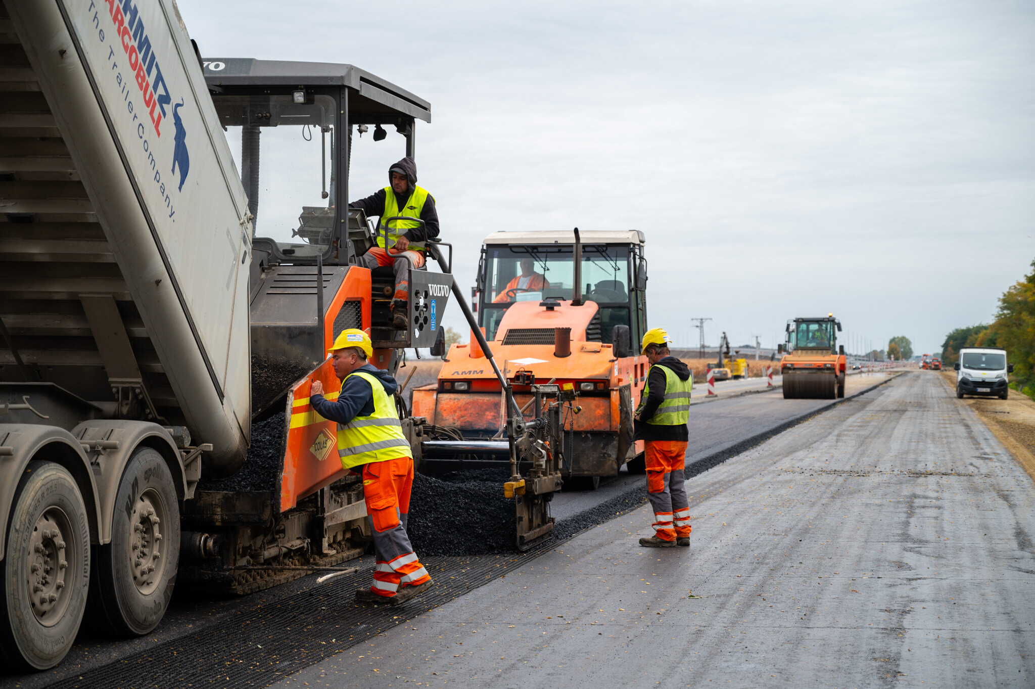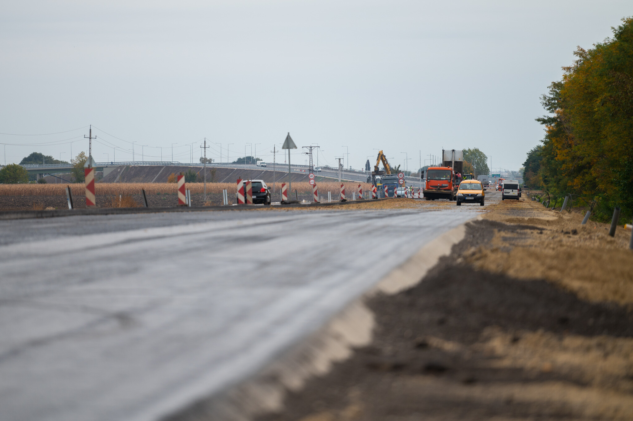 A hidraulikus kötőanyagú burkolatalap elkészültét követően a teljes felületen megkezdődnek az aszfaltozási munkák, majd várhatóan 2023. november végéig - az időjárás függvényében – már a teljes felületen elkészül az aszfalt kopóréteg. Ezzel párhuzamosan megkezdődhetnek a padkázási munkálatok, valamint kiépítik a végleges forgalomtechnikai elemeket is (szalagkorlát, beton terelőfal, burkolati jelek festése) – részletezte a projektvezető.