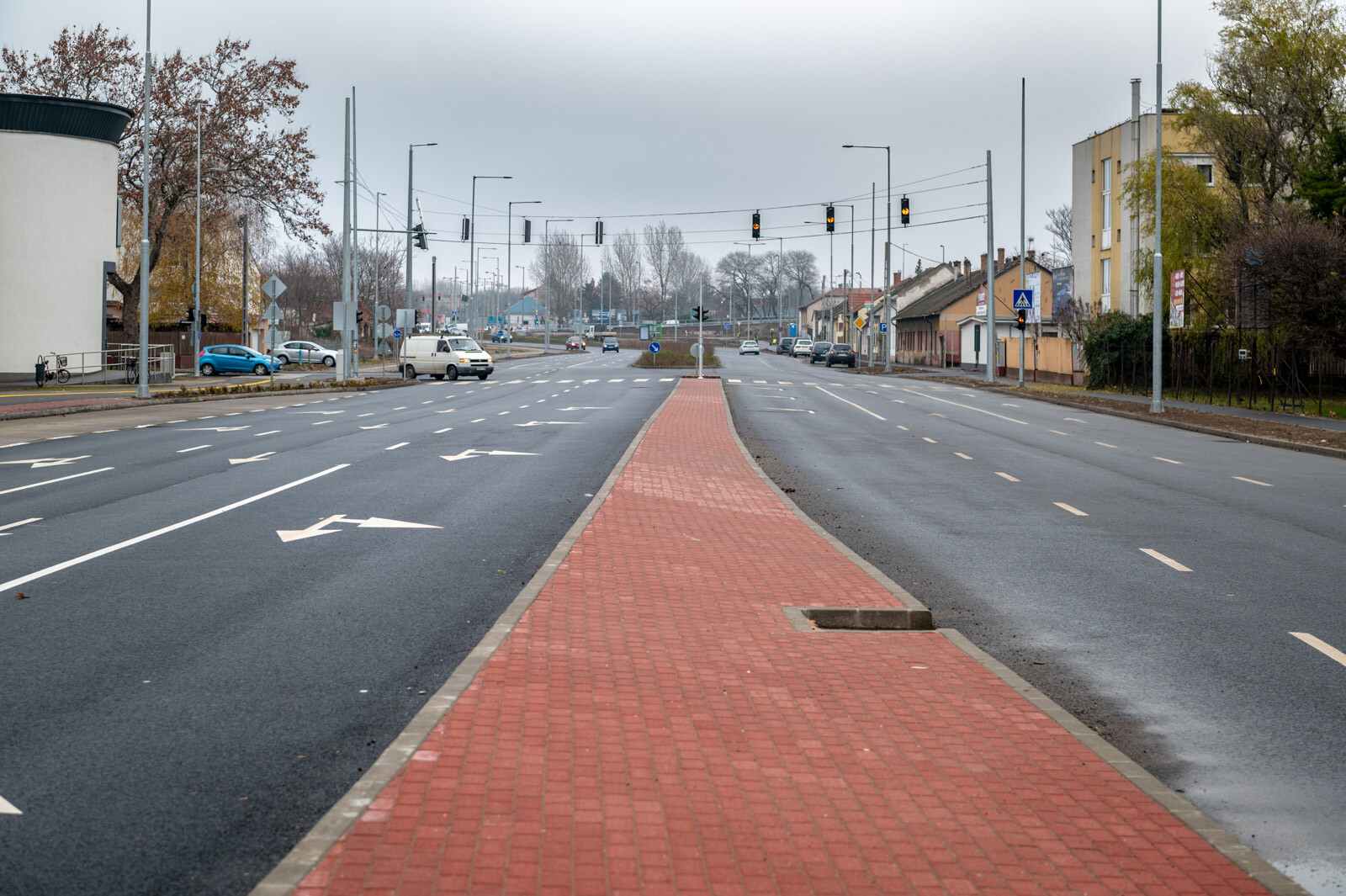 A projektről legutóbb idén nyár elején írtunk. Átfogó fejlesztés volt: amellett, hogy a Huszár sort és a Móricz Zsigmond utcát érintő és a debreceni úti felüljáróig tartó, hozzávetőleg 1,2 kilométer hosszú szakaszon a meglévő 2x1 sávos részeket 2x2 sávosra bővítették