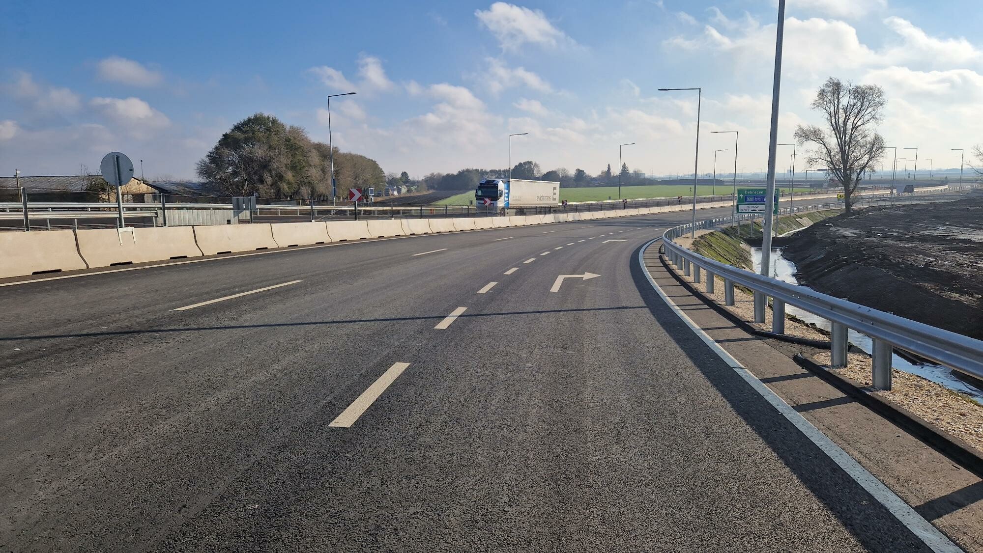 Az ÉNYGÖ térségében a korábbi években elvégzett közútfejlesztésekhez elsősorban közlekedésépítési üzletágunk fő tevékenységi körével, a földművek és az útburkolat víztelenítéséhez szükséges előregyártott beton és vasbeton termékekkel, tehát átereszekkel, meder- út- és térburkolatokkal, aknaelemekkel, illetve keresztcsatorna-kivezetésekhez nélkülözhetetlen surrantó- és szivárgó elemekkel járultunk hozzá. Idén azonban újabb határkőhöz érkeztünk: a Strabag Építőipari Zrt. és a Ke-Víz 21 Zrt. kivitelezésében épített 33. sz. főút 2x2 sávosításának két szakasza forgalomtechnikai kihívásokkal is kecsegtetett.