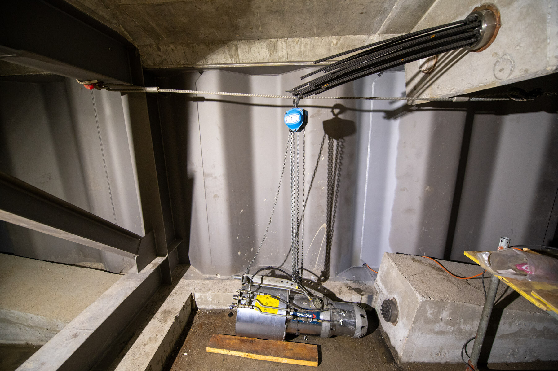 A fotókon látható munkák jelentős részben a híd belsejéről készültek: a kalocsai parti zárást követő fenéklemez és pályalemez feszítést lehet látni rajtuk.