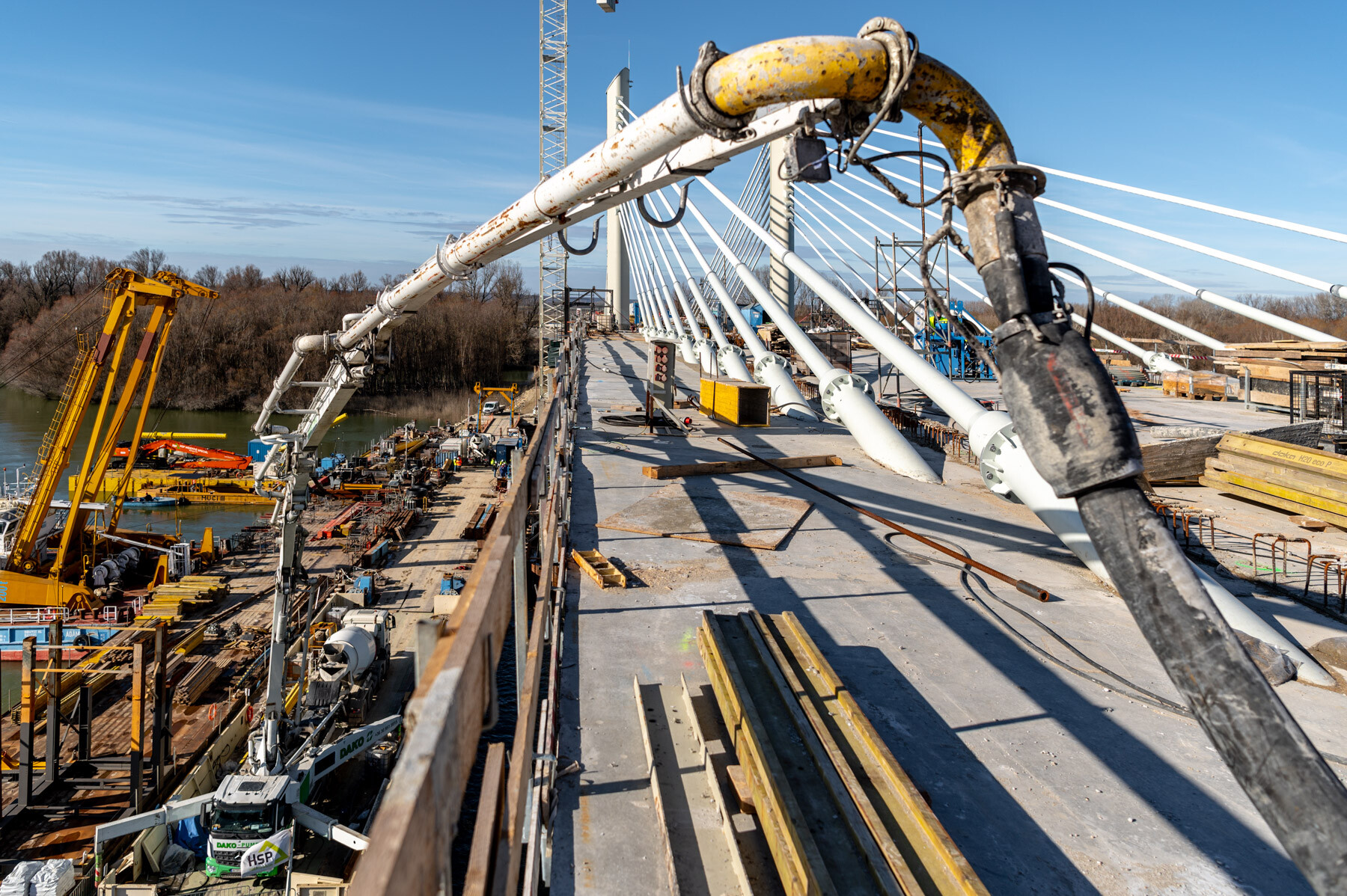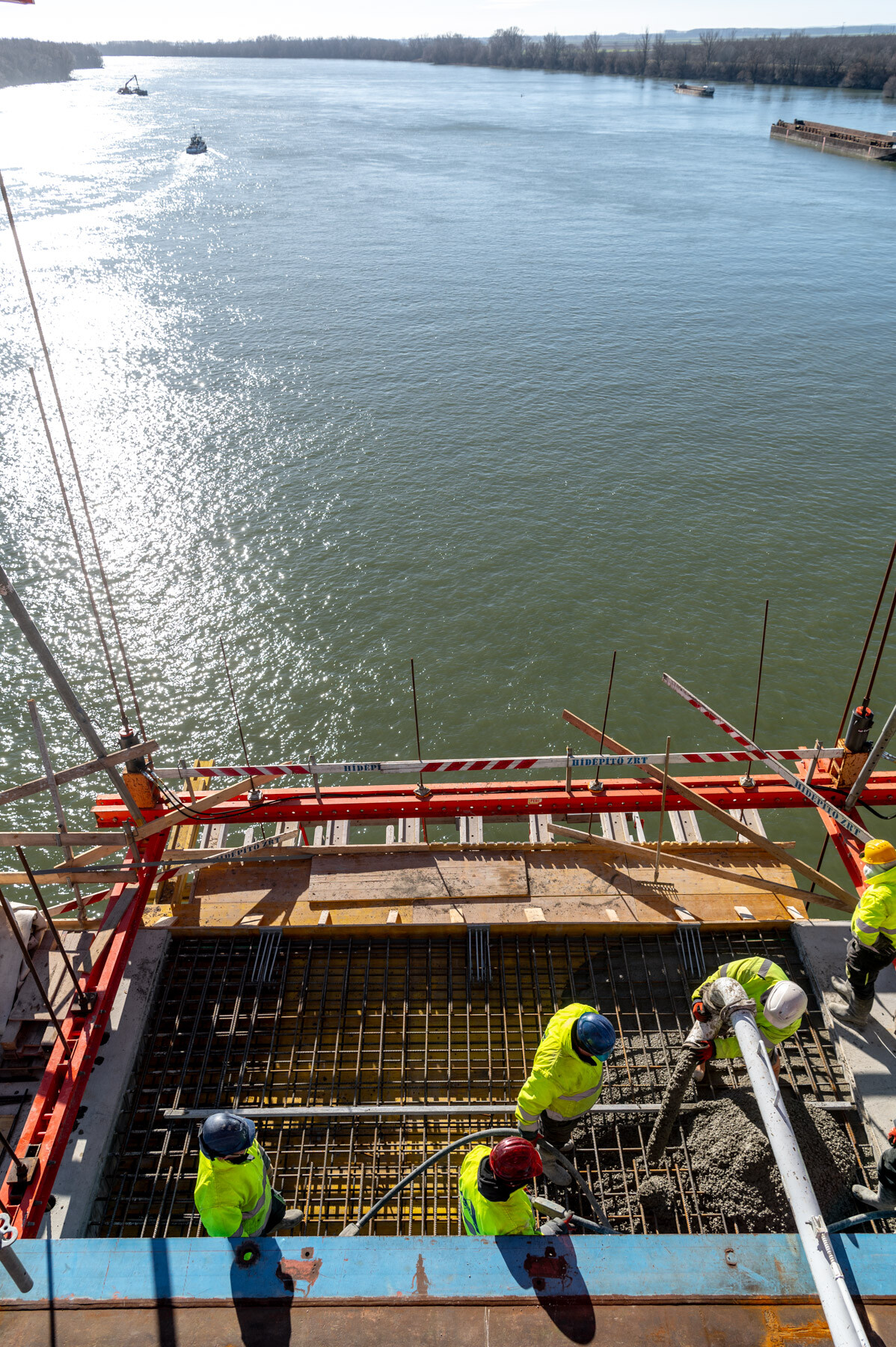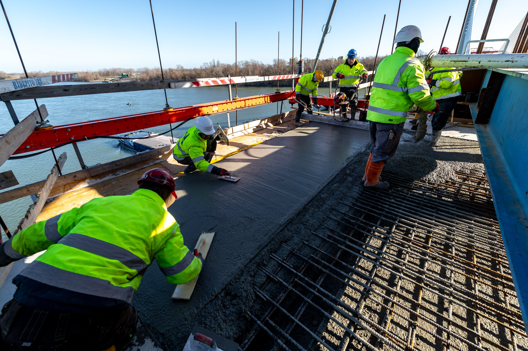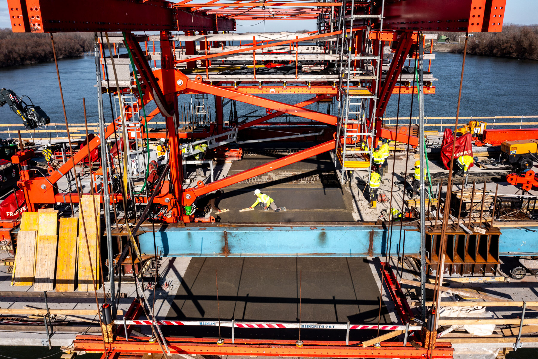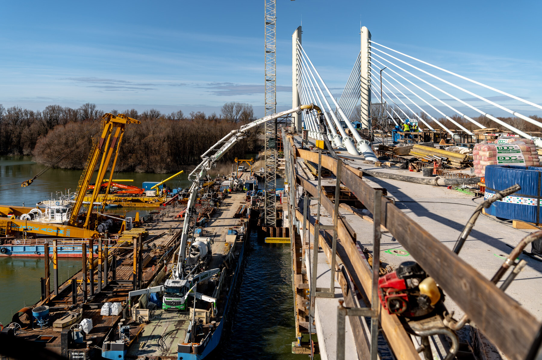 Fontos pillanathoz érkezett a Paks és Kalocsa térségében a Duna Aszfalt Zrt. generálkivitelezésében létrejövő új Duna-híd építési projektje. Lapunk értesülése szerint január 26-án megtörtént a közel 1 kilométeres, három részből (két ártéri hídból és a közöttük épülő mederhídból) álló műtárgy mederhídján az utolsó MM20 jelű elem pályalemez betonozása.