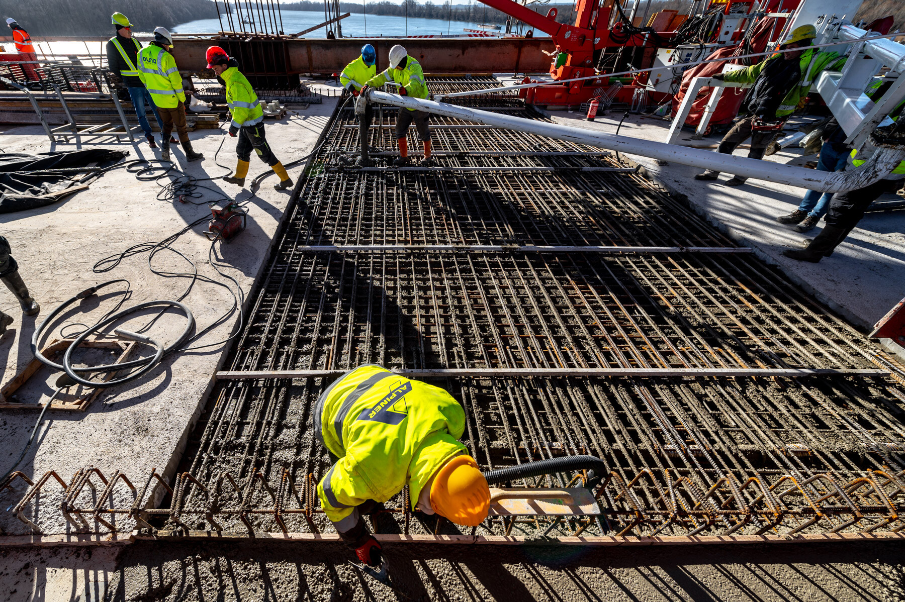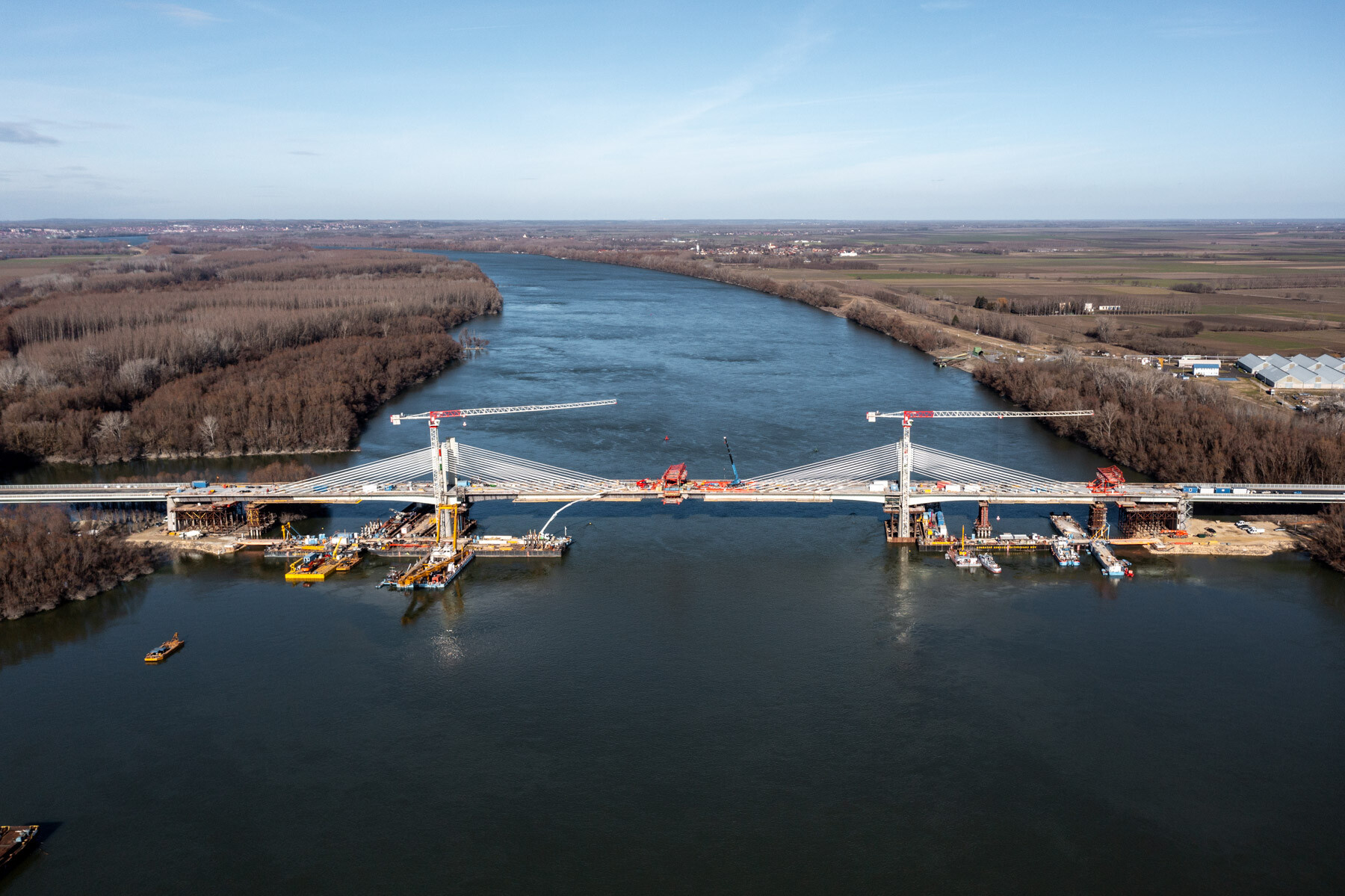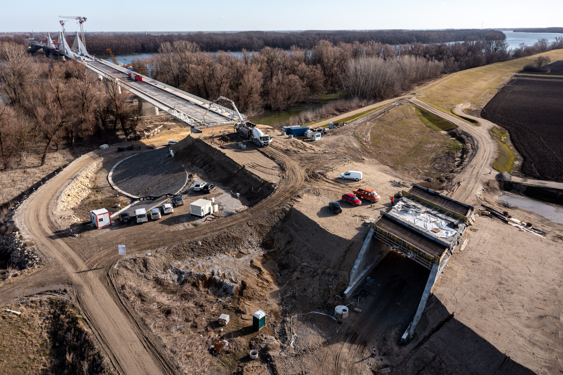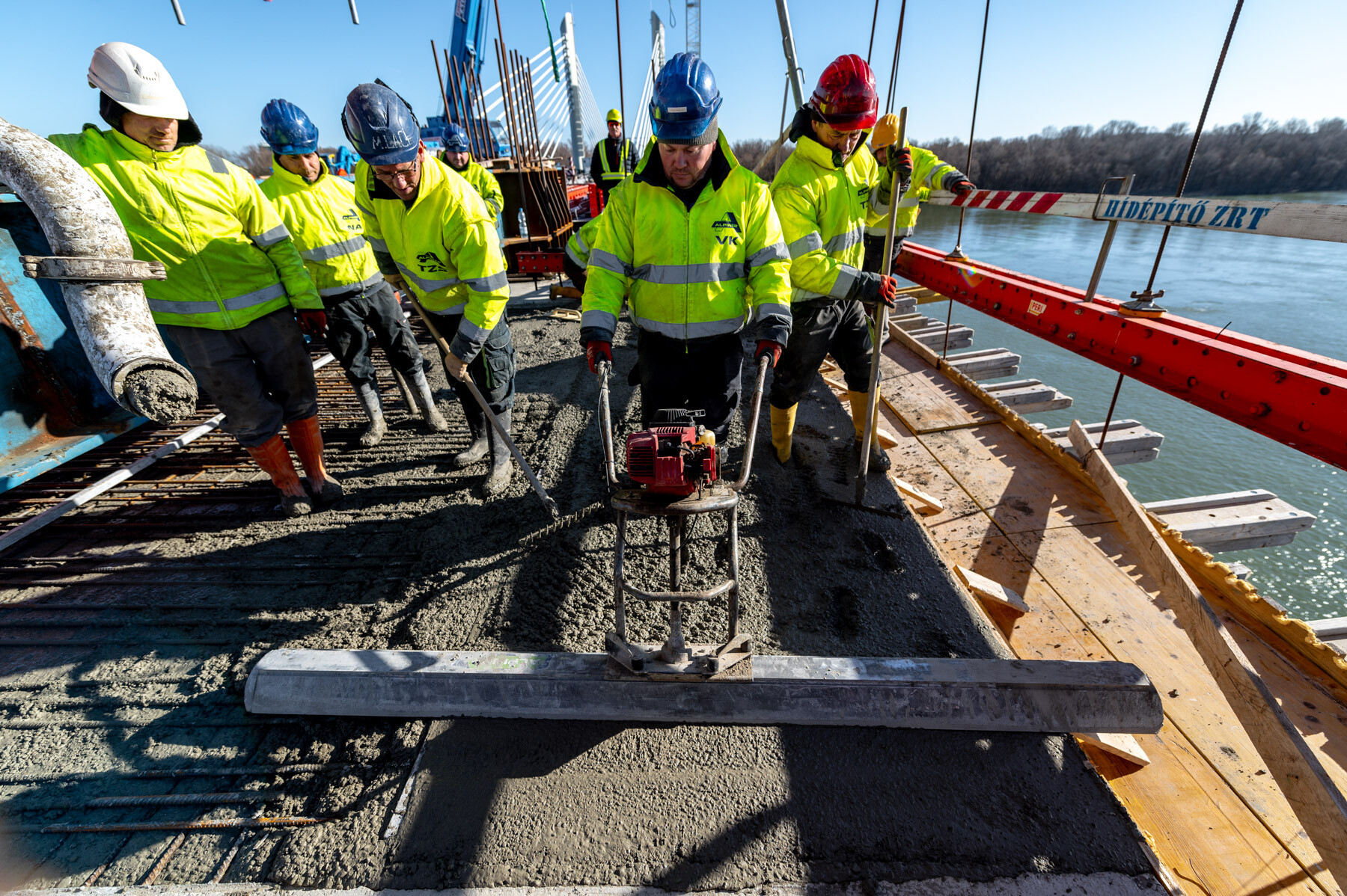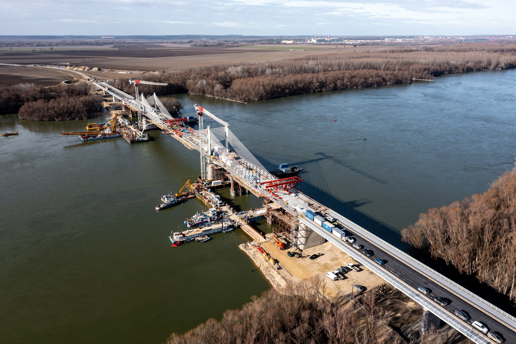 Fontos pillanathoz érkezett a Paks és Kalocsa térségében a Duna Aszfalt Zrt. generálkivitelezésében létrejövő új Duna-híd építési projektje. Lapunk értesülése szerint január 26-án megtörtént a közel 1 kilométeres, három részből (két ártéri hídból és a közöttük épülő mederhídból) álló műtárgy mederhídján az utolsó MM20 jelű elem pályalemez betonozása.