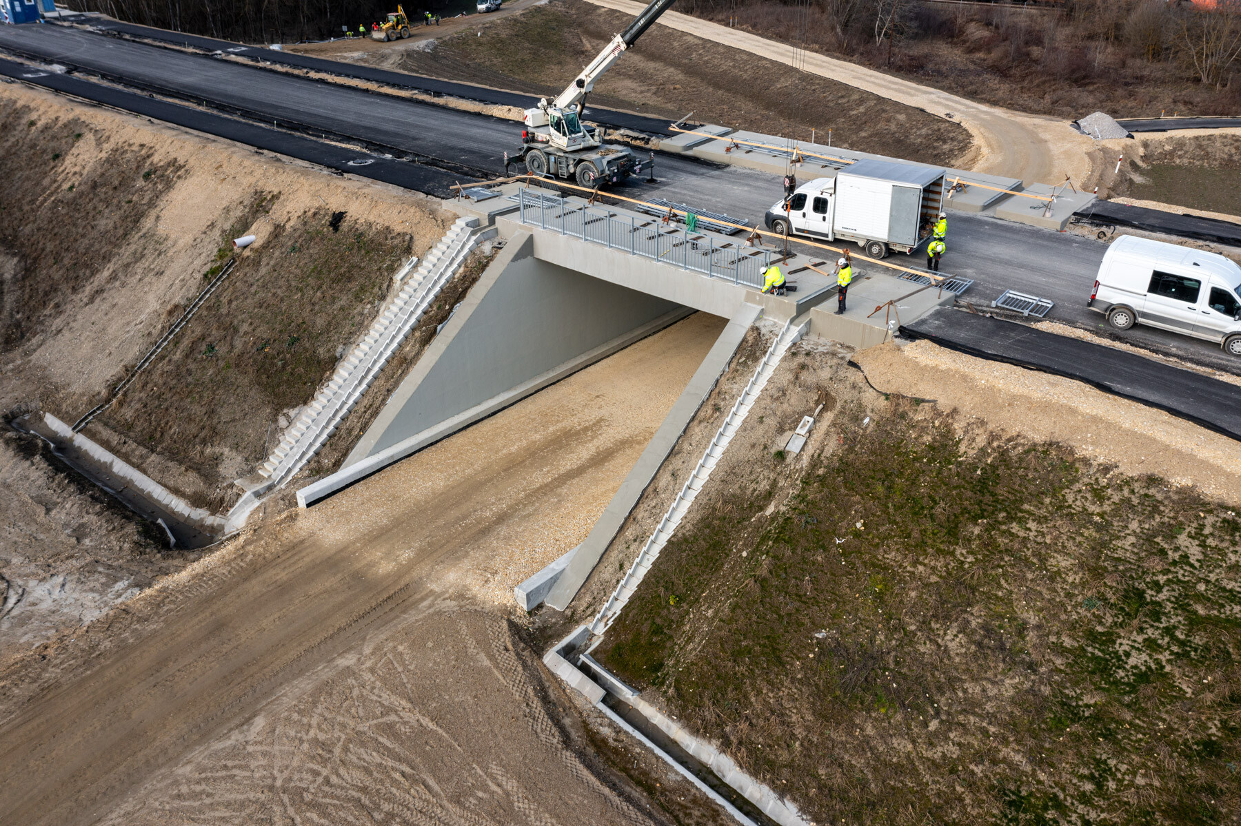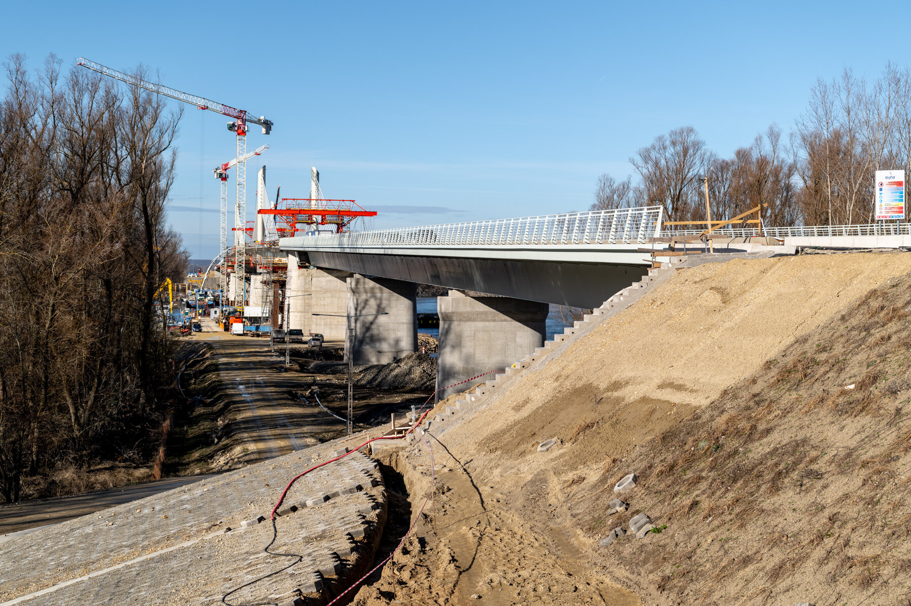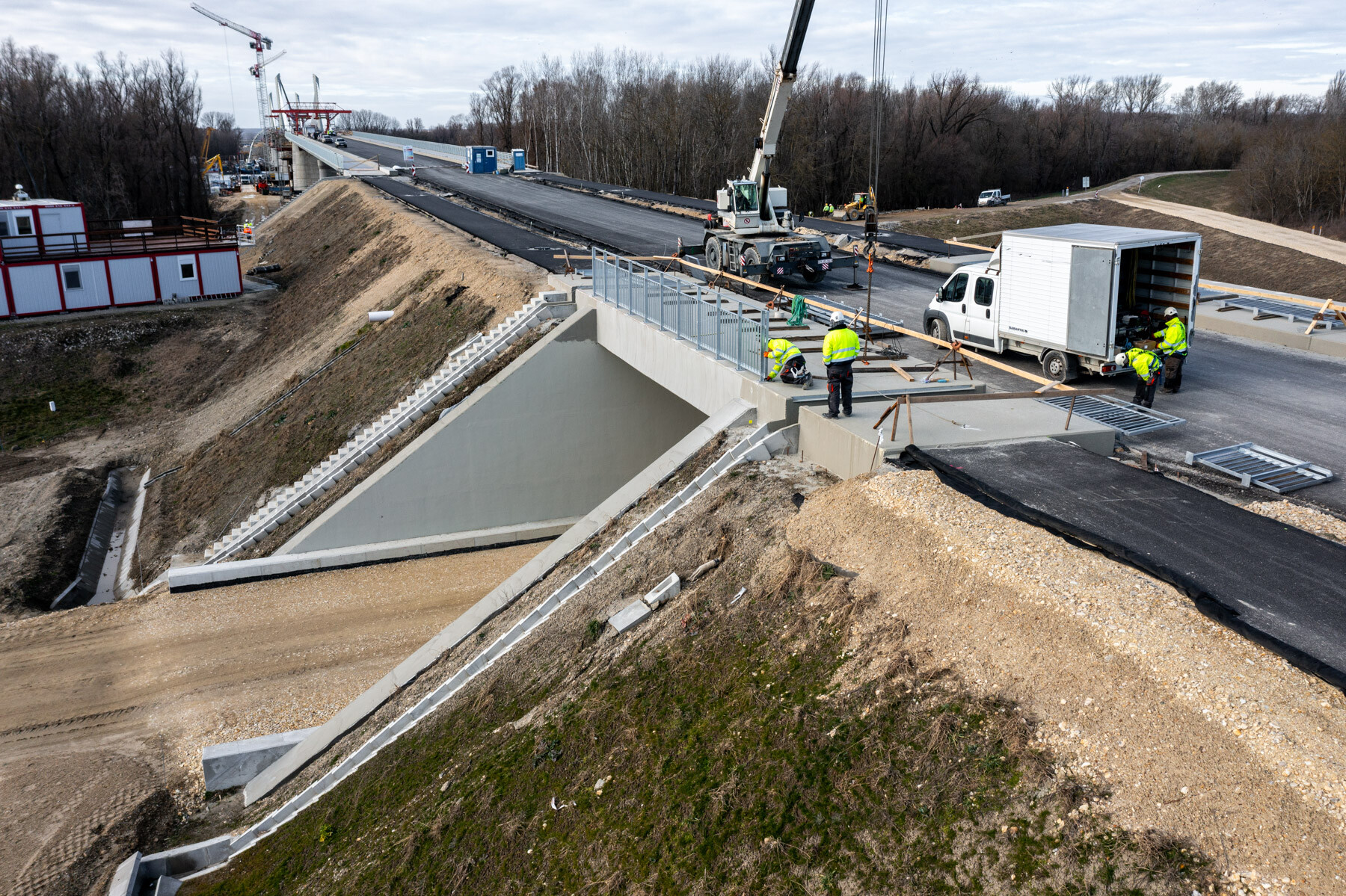 A munkálatok ugyanakkor még korántsem fejeződtek be: most kezdődik meg a híd felöltöztetése. Ennek során megtörténik a szerkezeteket védő bevonatrendszerek felvitele, felkerülnek a korlátok és a csapadékvíz-elvezető rendszerelemek, kiépítésre kerül a híd állapotát figyelő hídmonitoring rendszer.