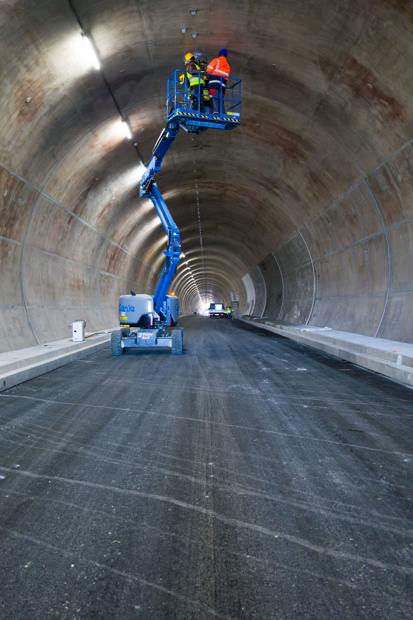 Az AC-11 aszfaltréteg azért is jelentős, mert ezután kezdik meg az alagút belső falazatára rákerülő bevonat előkészítését. Ennek során a fogadó betonfelületet tisztítják, majd festékszóró segítségével felhordják a bevonat rétegeit. „Az előírást betartva az alagút zárt szakaszán a járdabeton felett 5 méteres határig, a nyitott szakaszoknál pedig a teljes boltozatot szükséges bevonattal fedni. Párhuzamosan zajlik a kábeltartó szerkezet szerelése és a járda felső 15 cm-es betonozása mindkét járatban” – áll a beszámolóban.