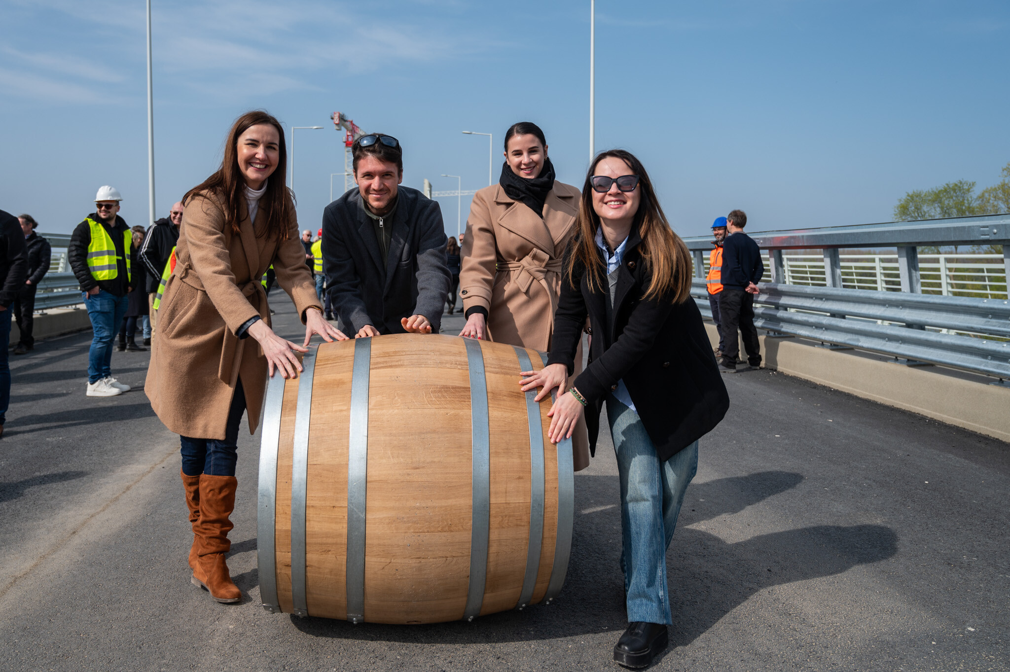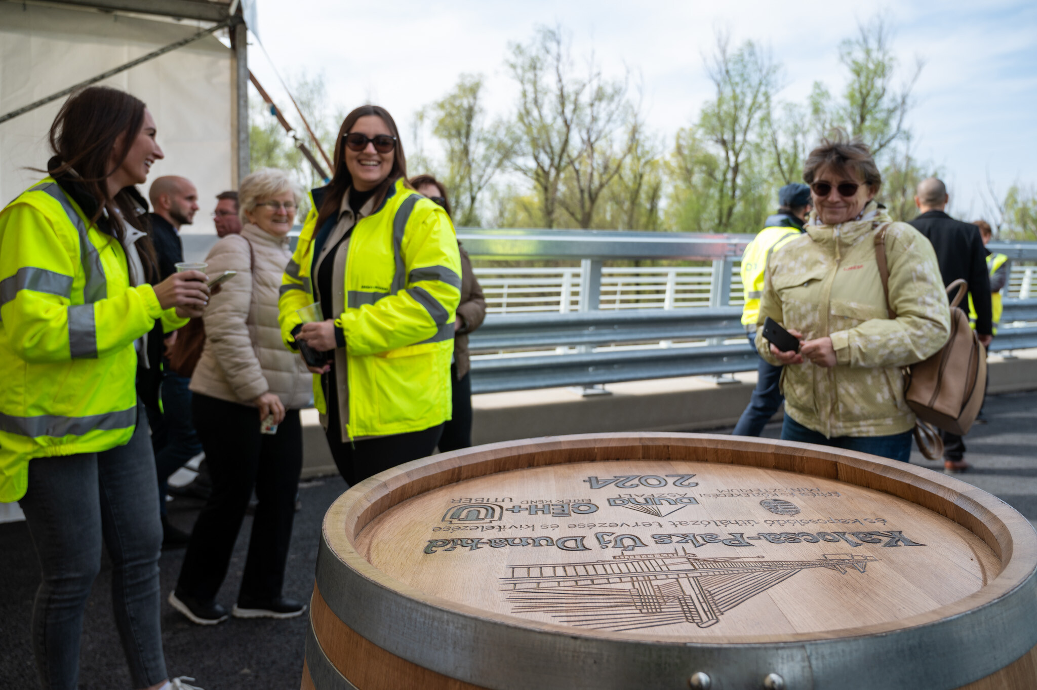 A csütörtöki eseményen a hordógurítás a három elemből álló építmény bal ártéri hídjáról indult, amely után a mederhíd látogatására is lehetőség nyílt. Az eseményen elhangzottak szerint régi hagyomány, hogy egy híd elkészültét hordógurítással ünneplik. A hídépítők ugyanis a hagyomány szerint megegyeztek az ördöggel, hogy sikeres legyen az építkezés, viszont az ördög az első átkelő lelkét kérte fizetségül. Emiatt elsőként egy hordót szokás a hídon átgurítani, hogy az felfogja az átkot.