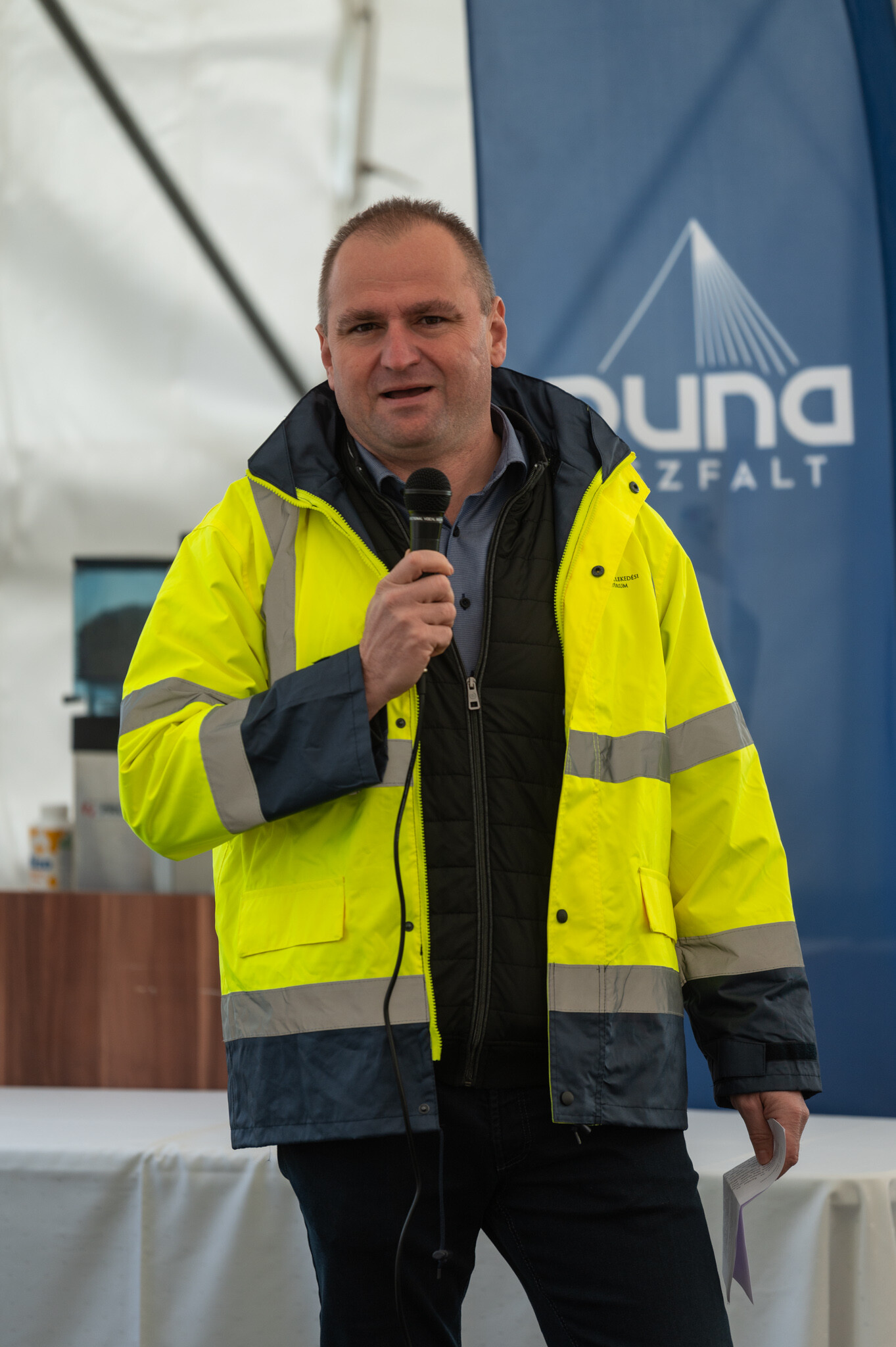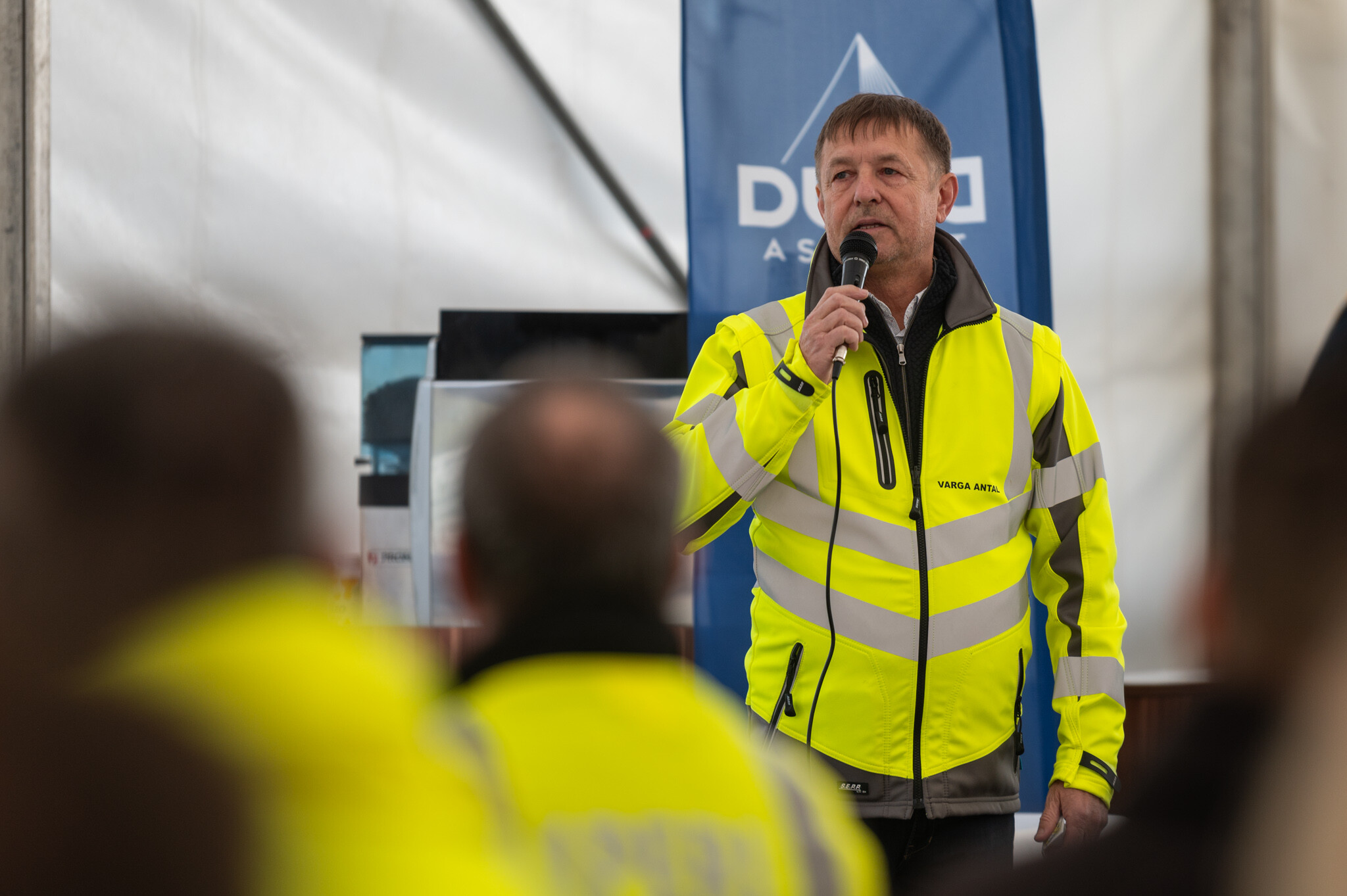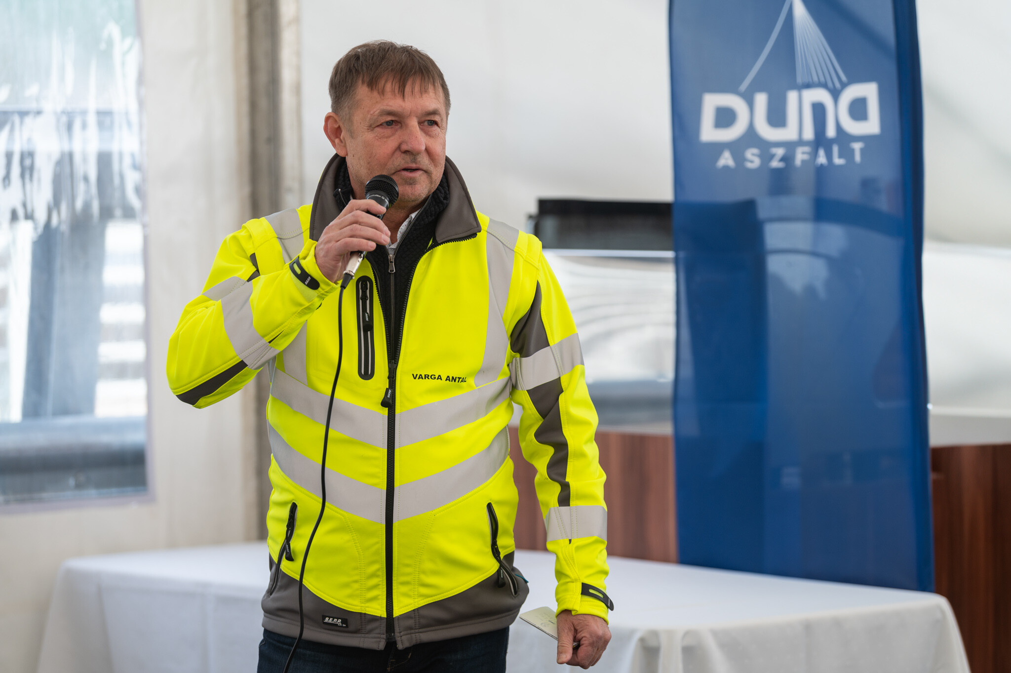 A Fővállalkozó Duna Aszfalt Zrt. képviseletében Varga Antal igazgatósági tag köszöntötte a jelenlévőket. Beszédében kitért arra, hogy az elmúlt időszakban számos folyami híd építésében vett részt a Duna Aszfalt Zrt., melyek közül a Kalocsa-Paks Új Duna-híd a leghosszabb egybefüggő műtárgy, a maga 946 méteres hosszával. Méltatta a megvalósításban résztvevő mintegy 800 fő áldozatos munkáját, beleértve a Megrendelő, a Fővállalkozó, a Tervező és az alvállalkozók munkatársait.