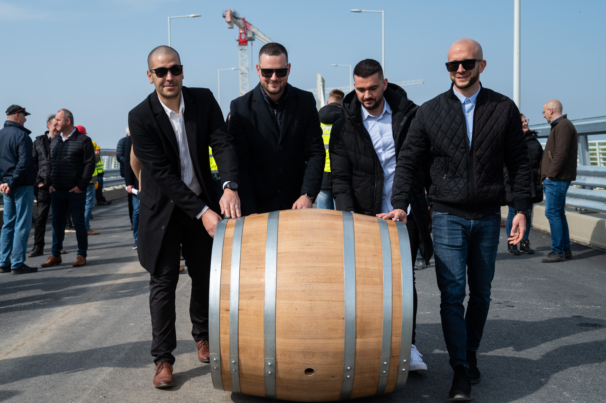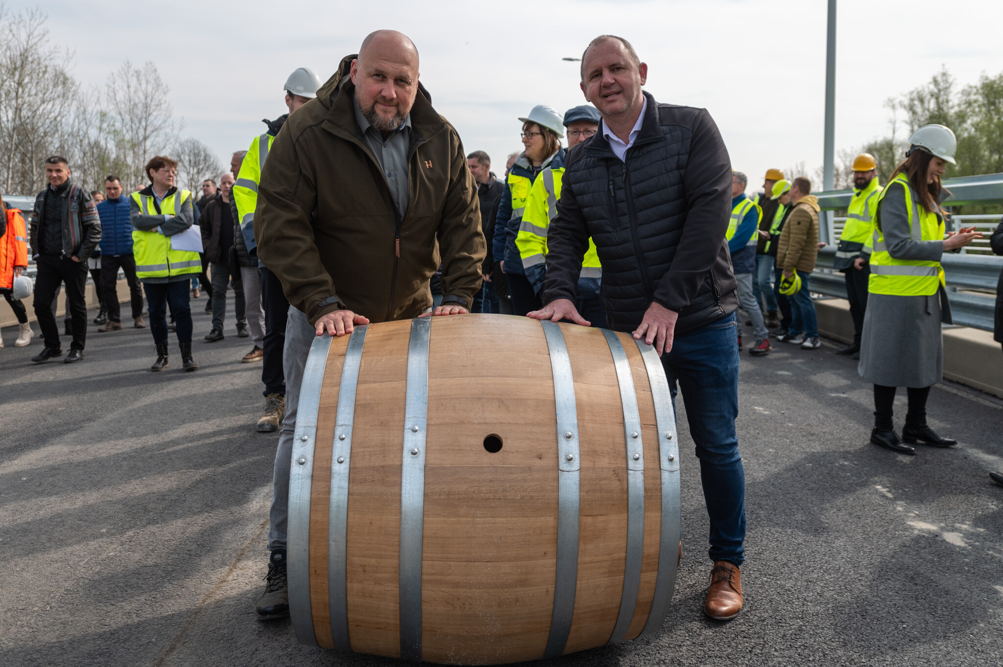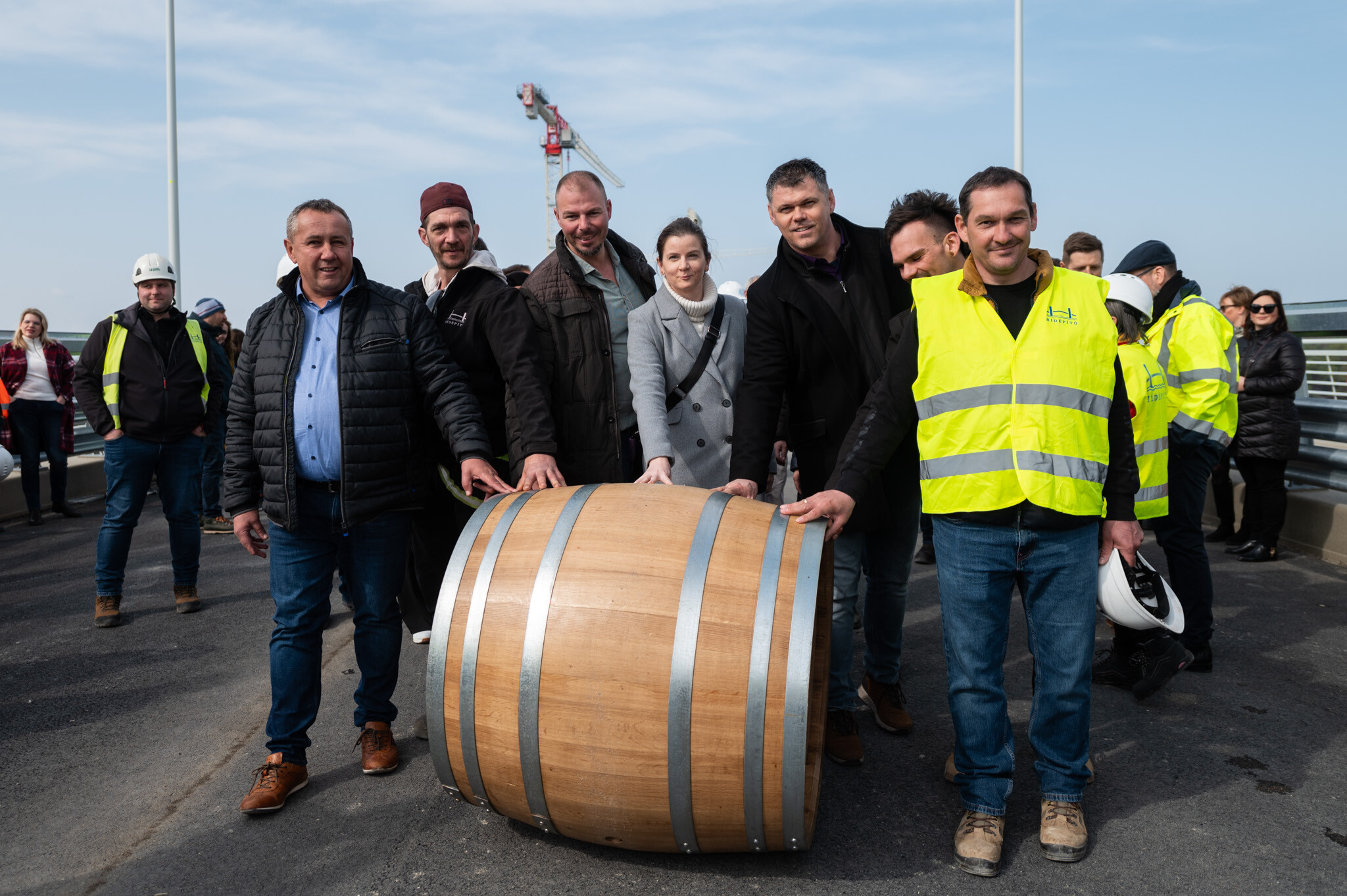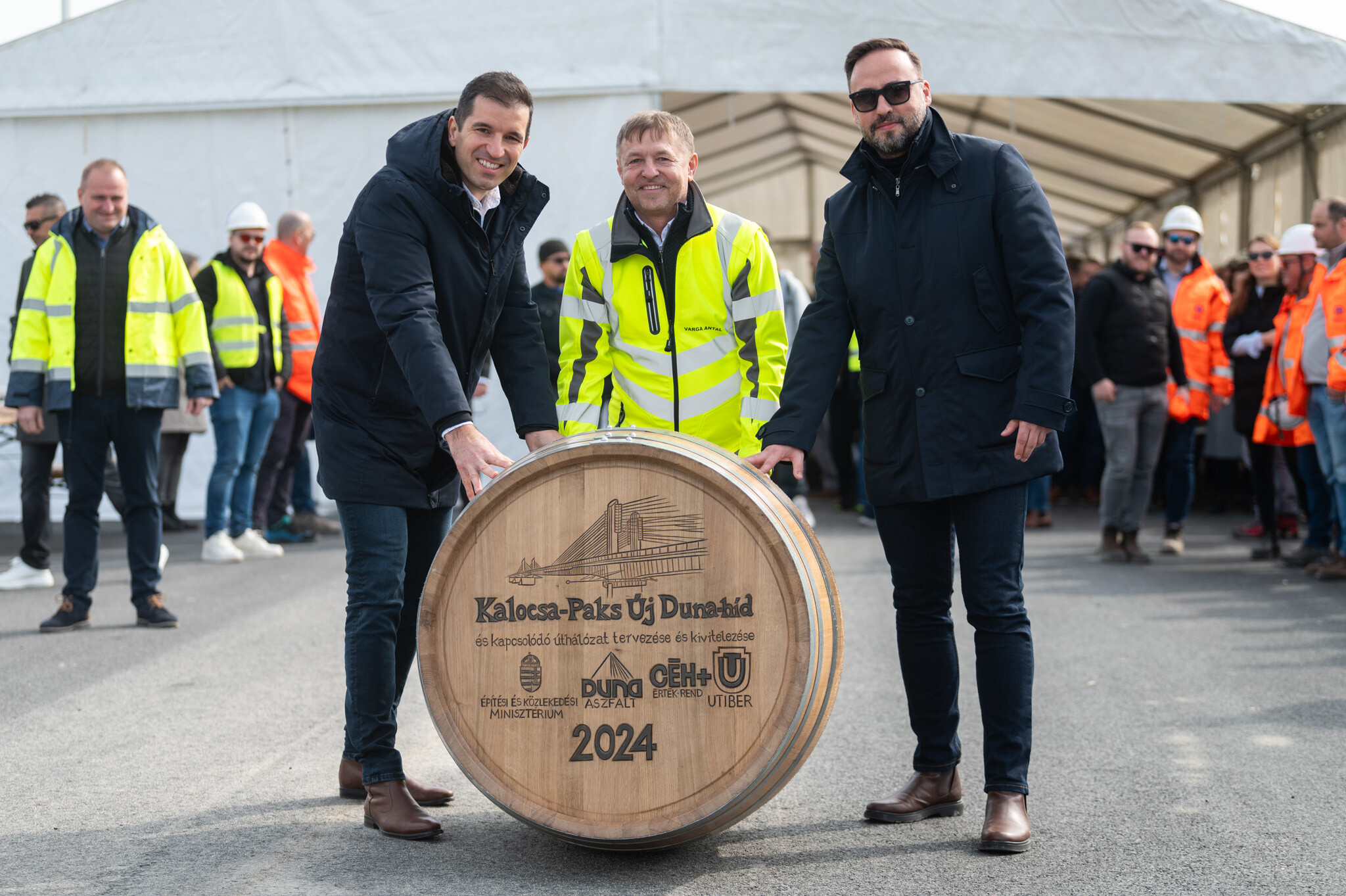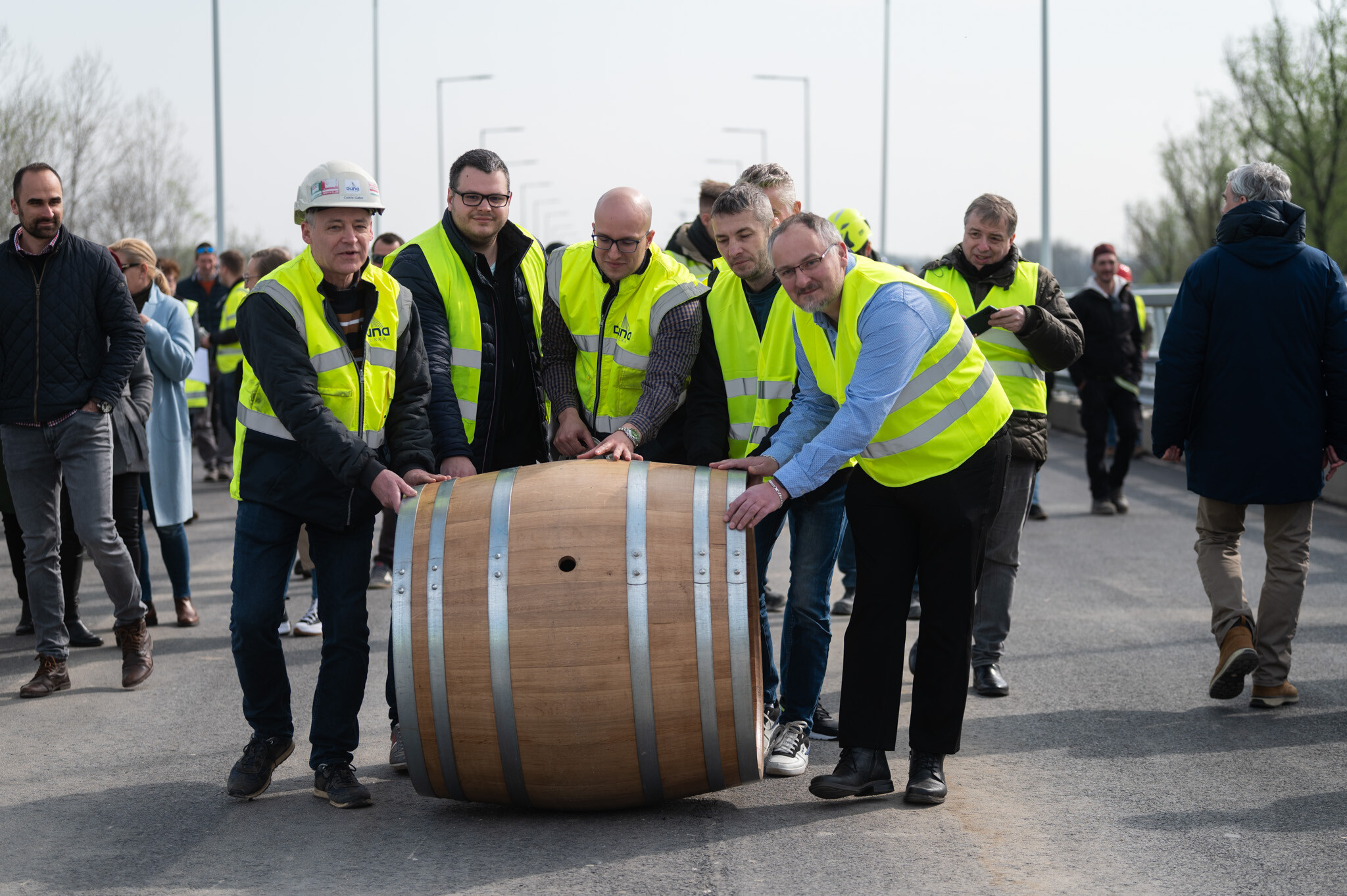 Foktő térségében március 14-én megtartották a Duna Aszfalt Zrt. kivitelezésében épülő Kalocsa-Paks Duna-híd hordógurítását. Az építőipari hagyományokat követő eseményre azt követően kerülhetett sor, hogy idén januárban a közel 1 kilométeres építményen teljessé vált a pályalemez. Ahogy azt az akkor beszámolónkban is jeleztük, ezt az tette lehetővé, hogy a balparti ártéri híd, majd a jobbparti ártéri híd szerkezetének betolását követően január 26-án a középső elemet képező mederhíd is bezárult.