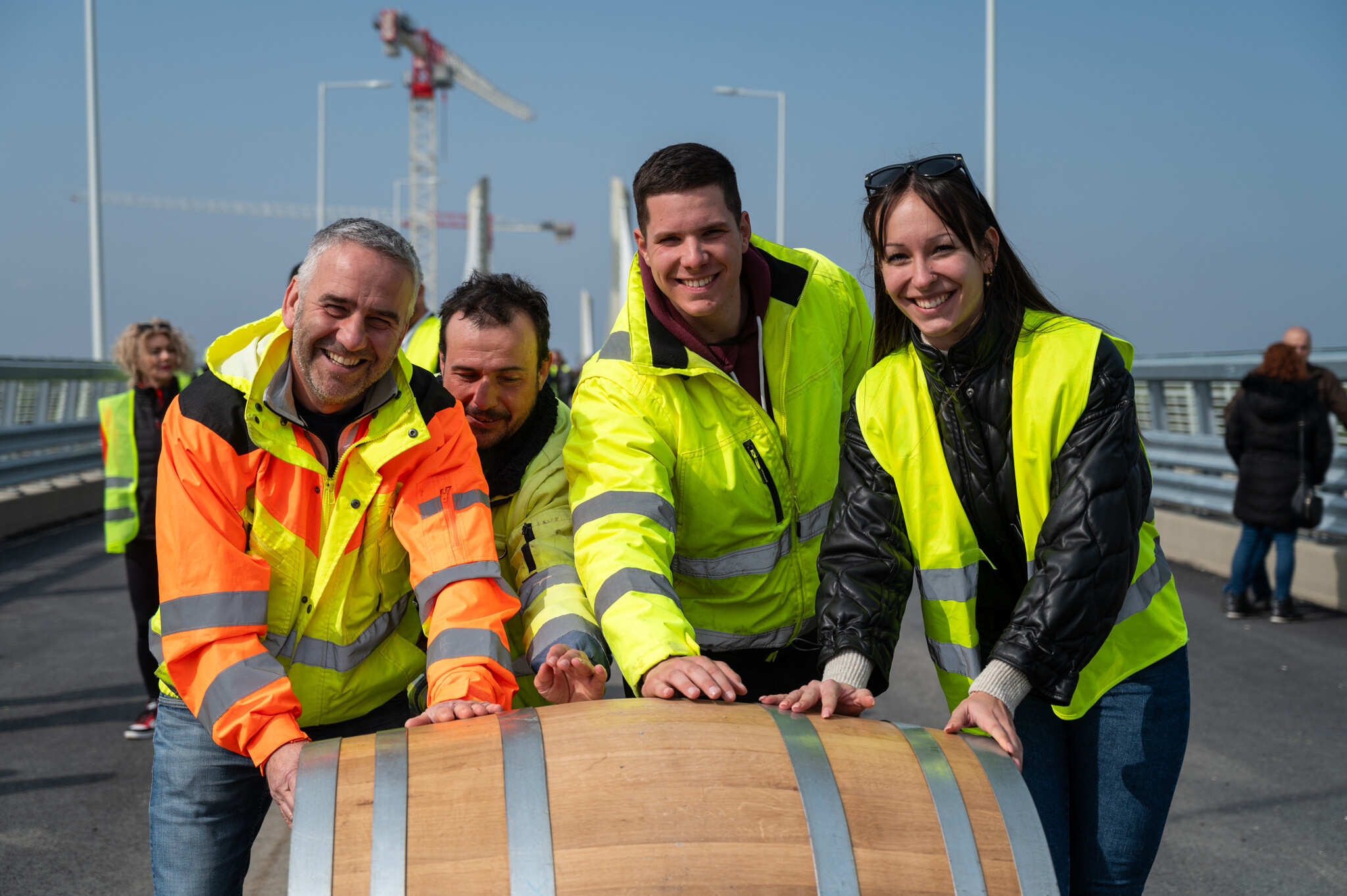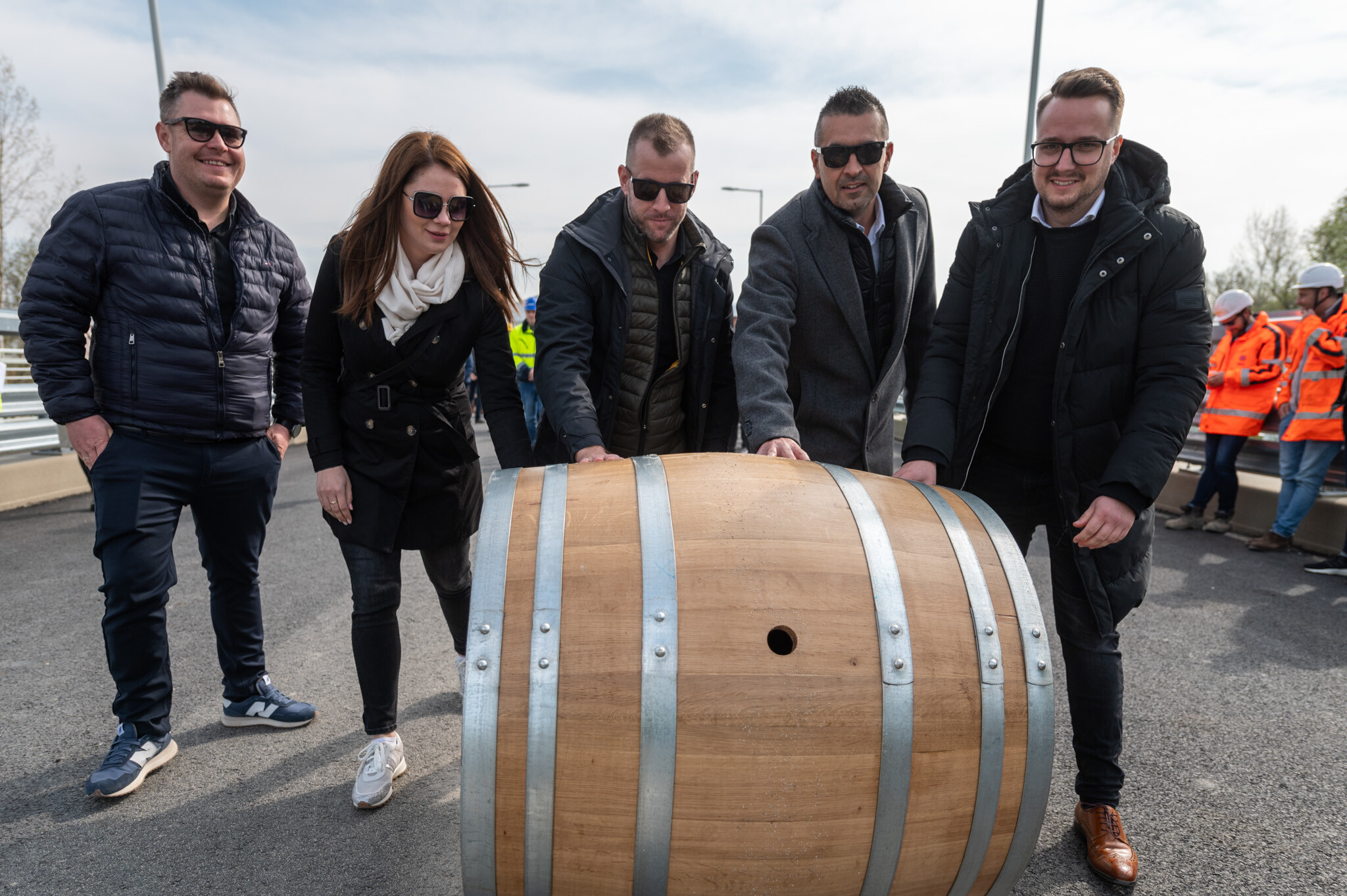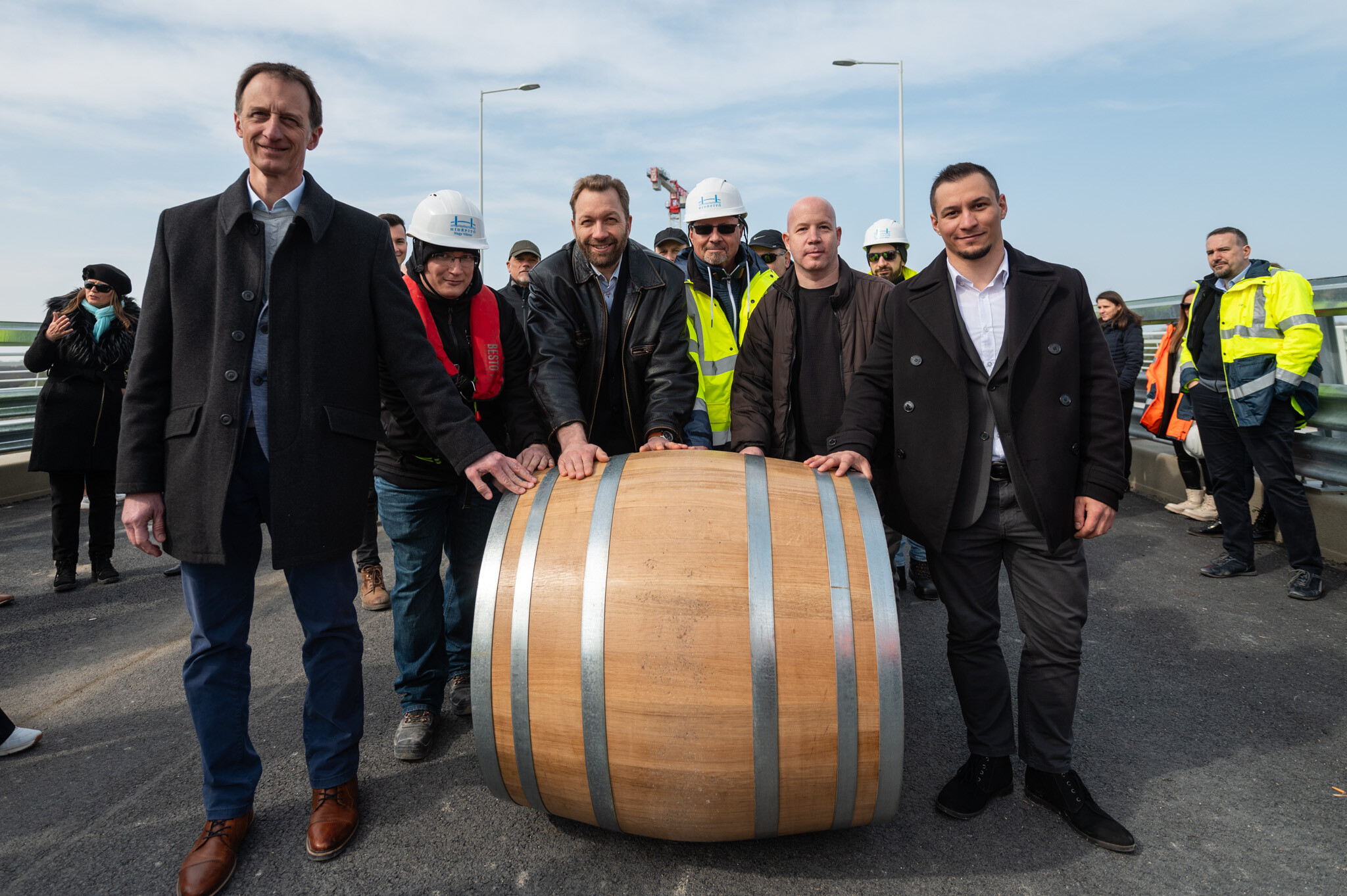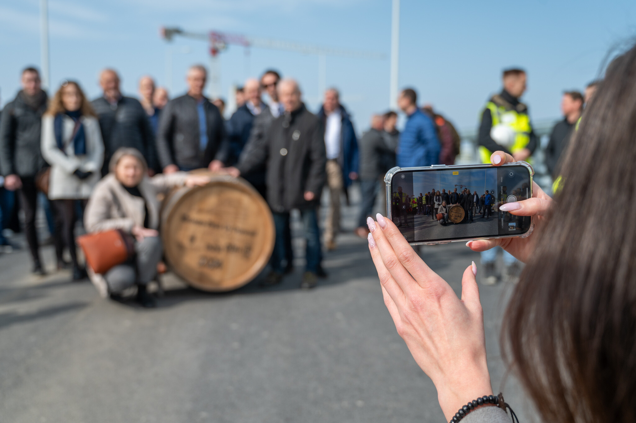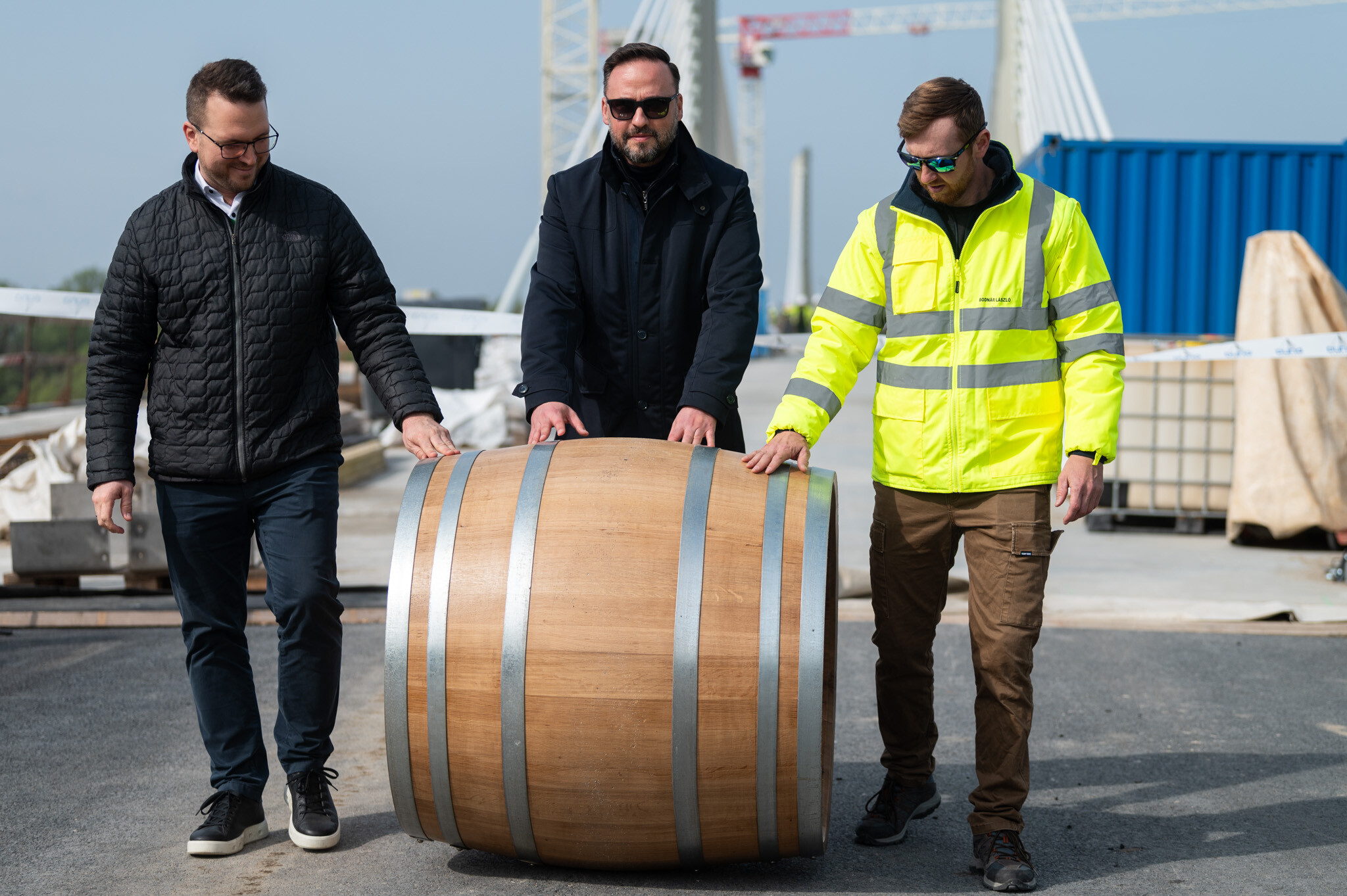 Foktő térségében március 14-én megtartották a Duna Aszfalt Zrt. kivitelezésében épülő Kalocsa-Paks Duna-híd hordógurítását. Az építőipari hagyományokat követő eseményre azt követően kerülhetett sor, hogy idén januárban a közel 1 kilométeres építményen teljessé vált a pályalemez. Ahogy azt az akkor beszámolónkban is jeleztük, ezt az tette lehetővé, hogy a balparti ártéri híd, majd a jobbparti ártéri híd szerkezetének betolását követően január 26-án a középső elemet képező mederhíd is bezárult.