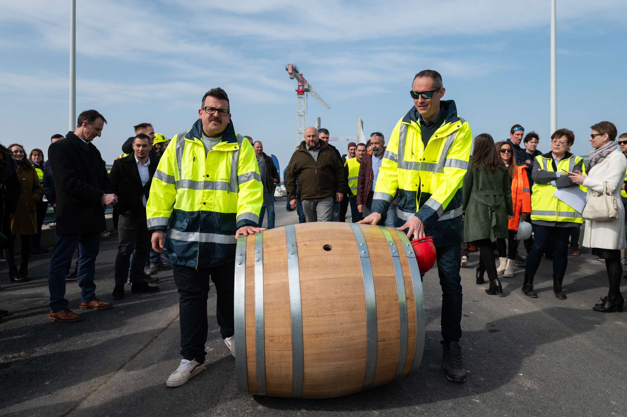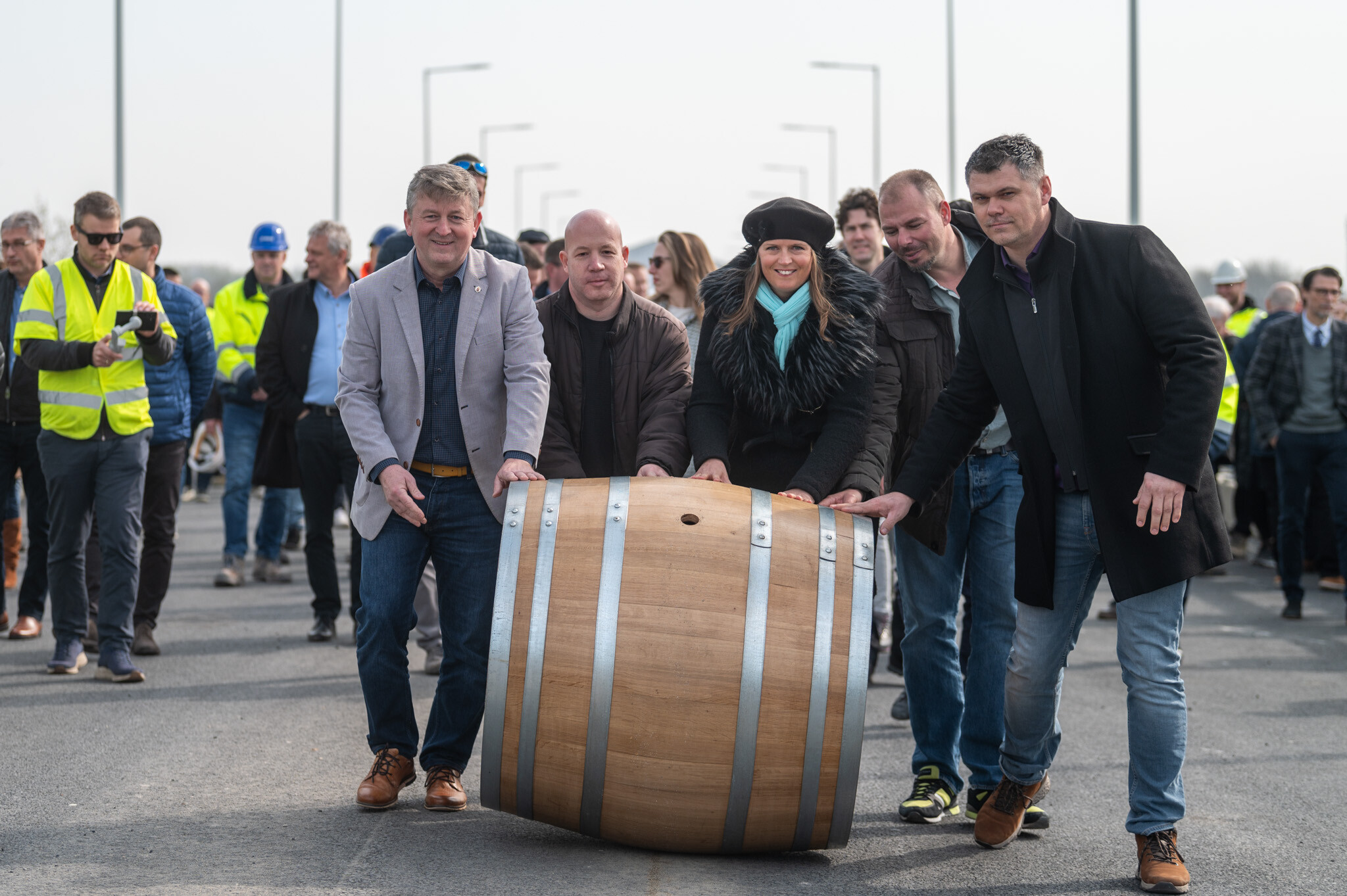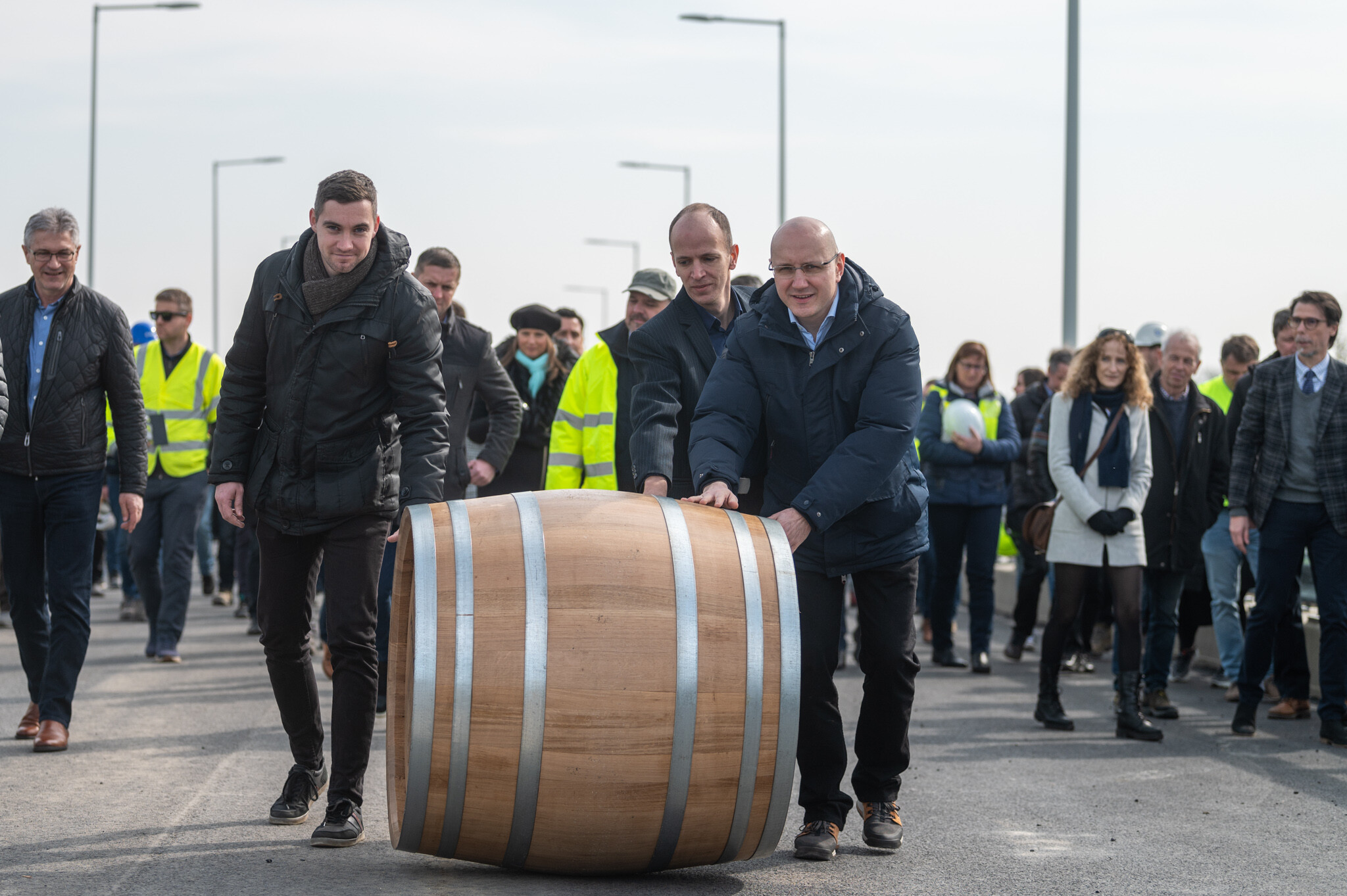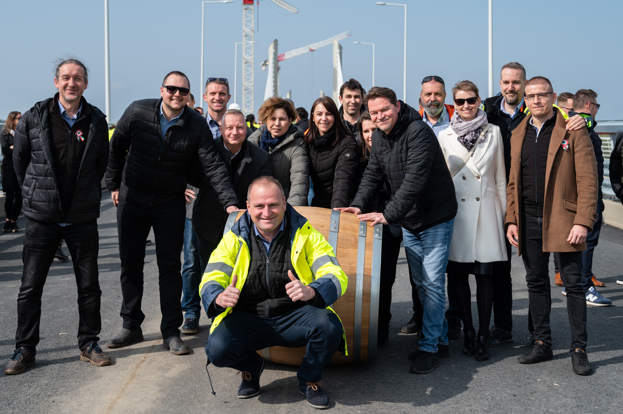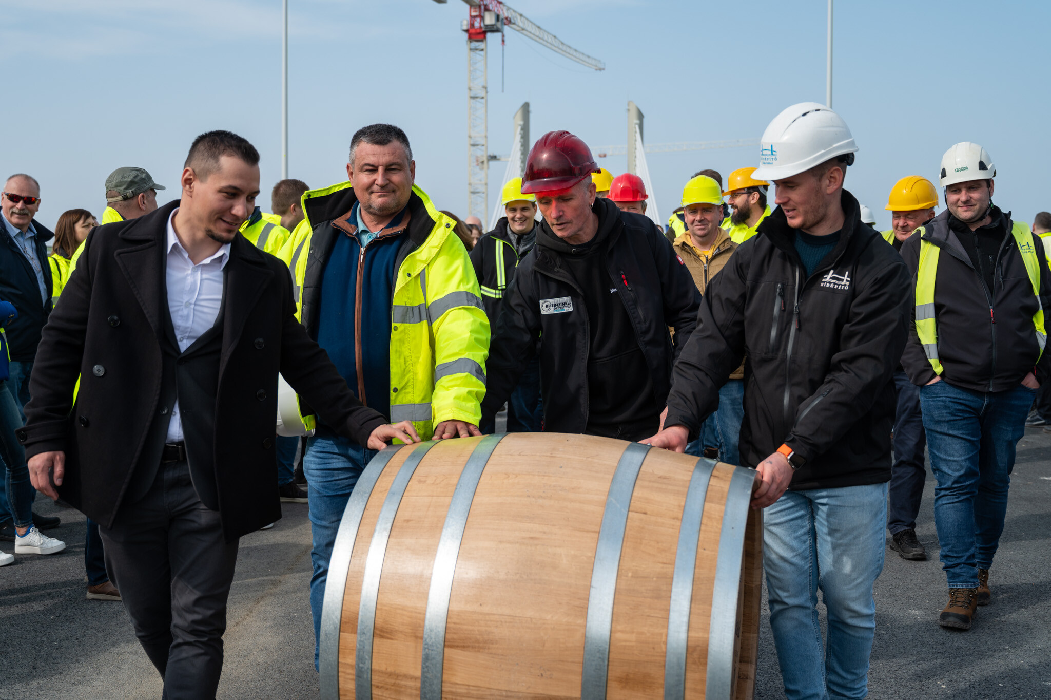 Foktő térségében március 14-én megtartották a Duna Aszfalt Zrt. kivitelezésében épülő Kalocsa-Paks Duna-híd hordógurítását. Az építőipari hagyományokat követő eseményre azt követően kerülhetett sor, hogy idén januárban a közel 1 kilométeres építményen teljessé vált a pályalemez. Ahogy azt az akkor beszámolónkban is jeleztük, ezt az tette lehetővé, hogy a balparti ártéri híd, majd a jobbparti ártéri híd szerkezetének betolását követően január 26-án a középső elemet képező mederhíd is bezárult.