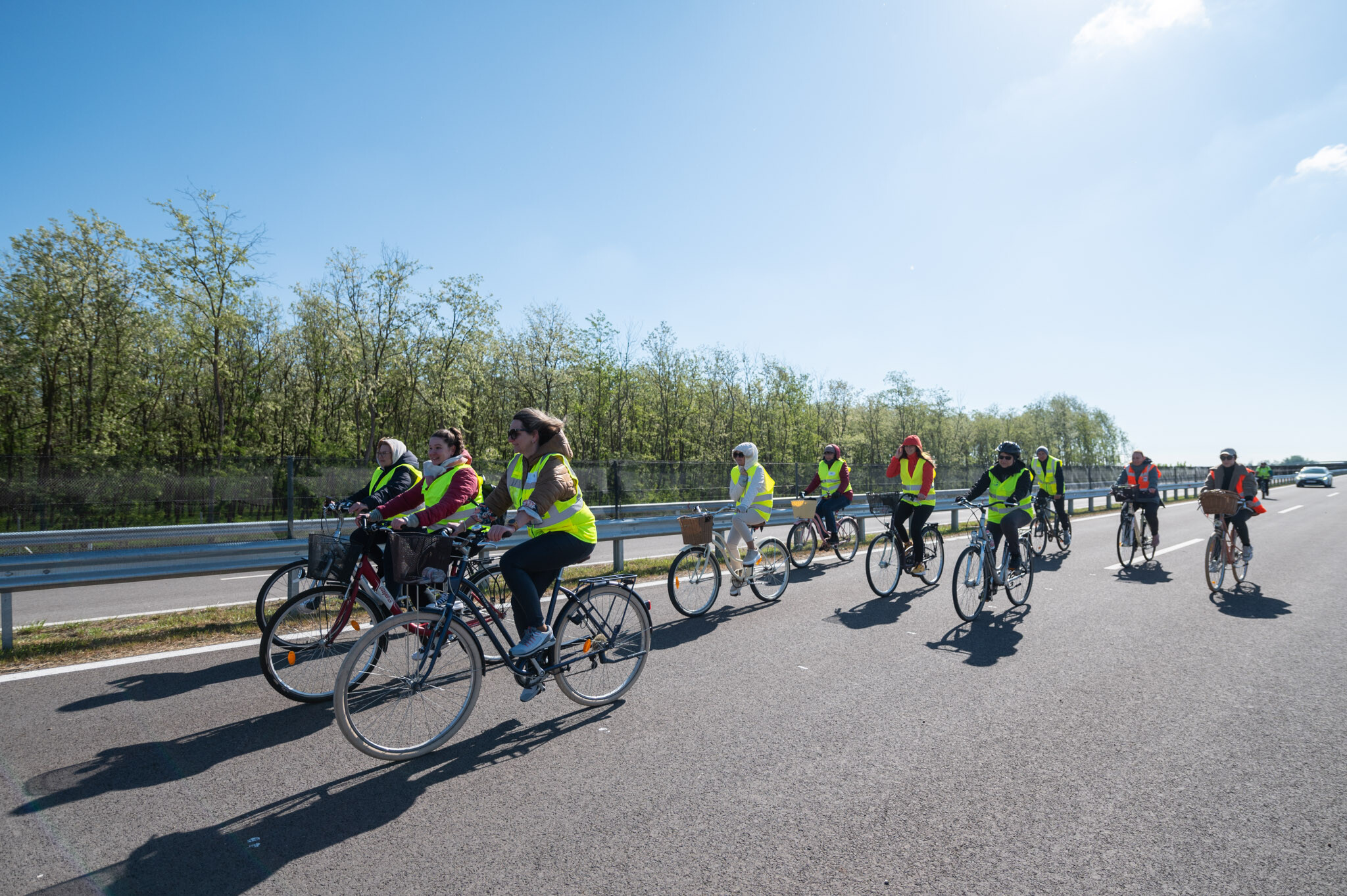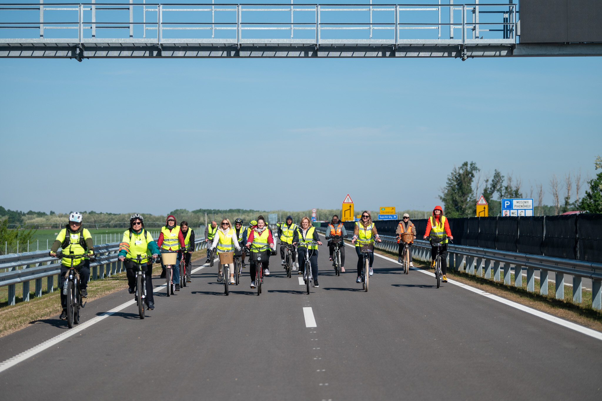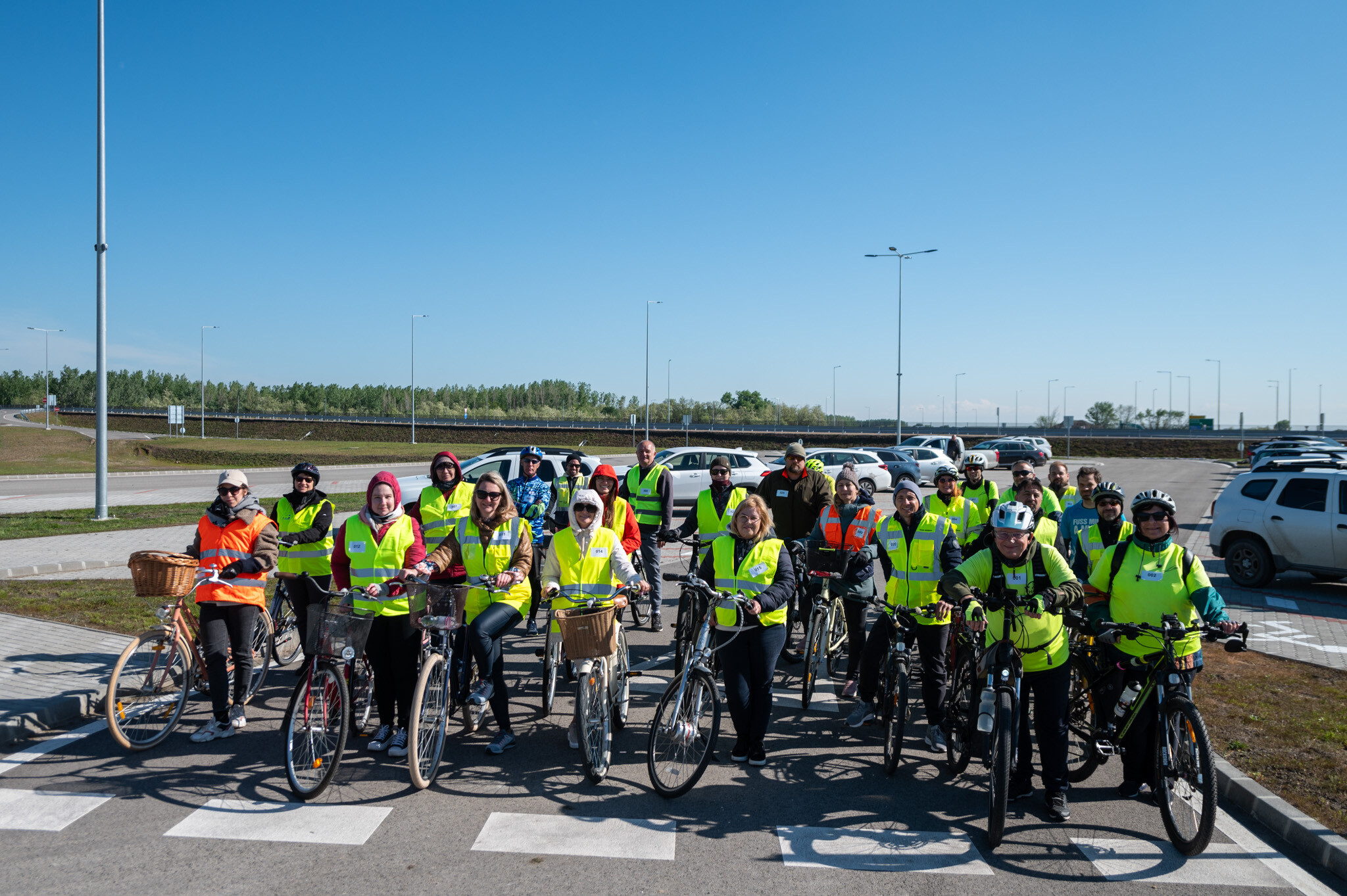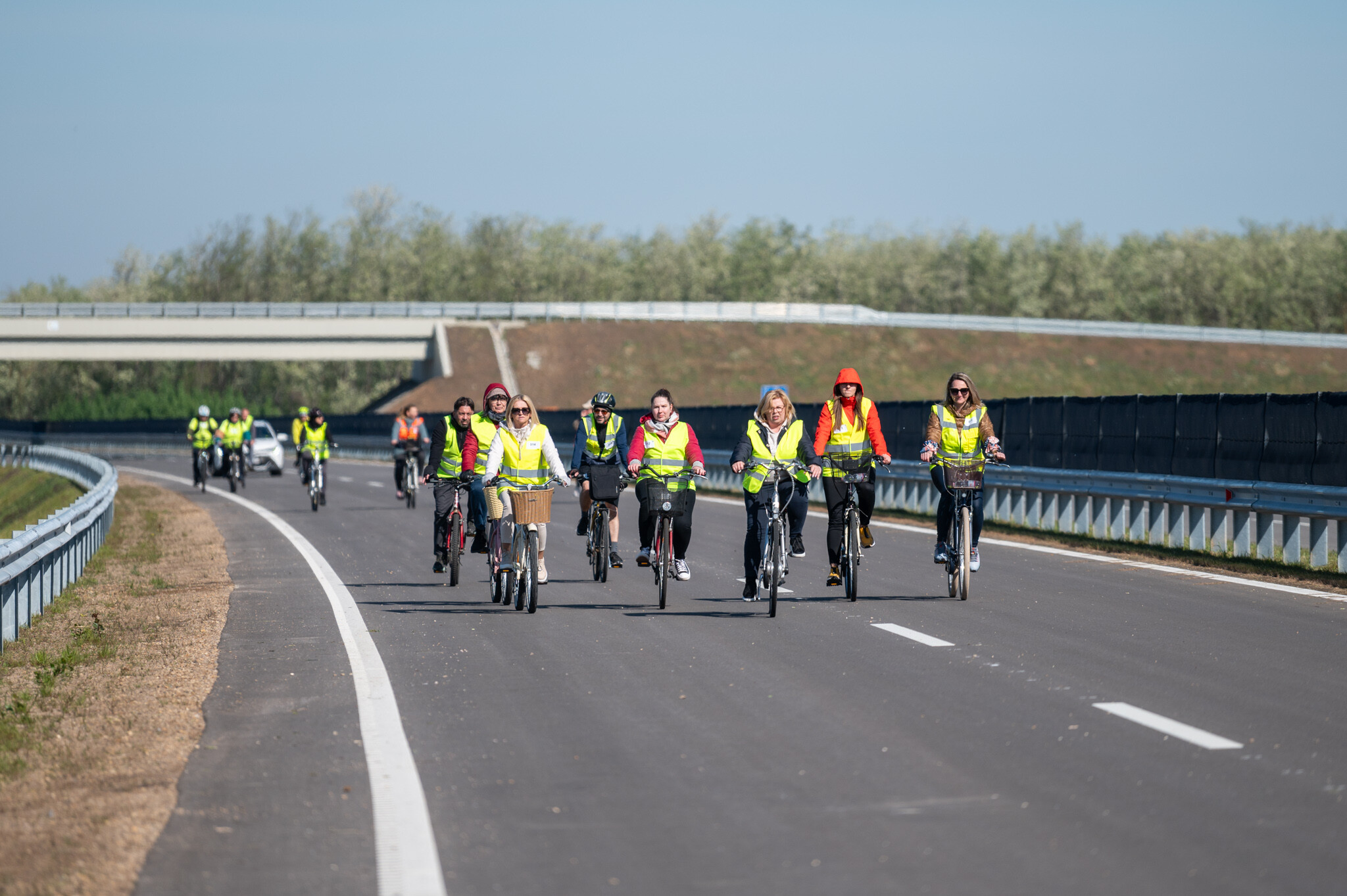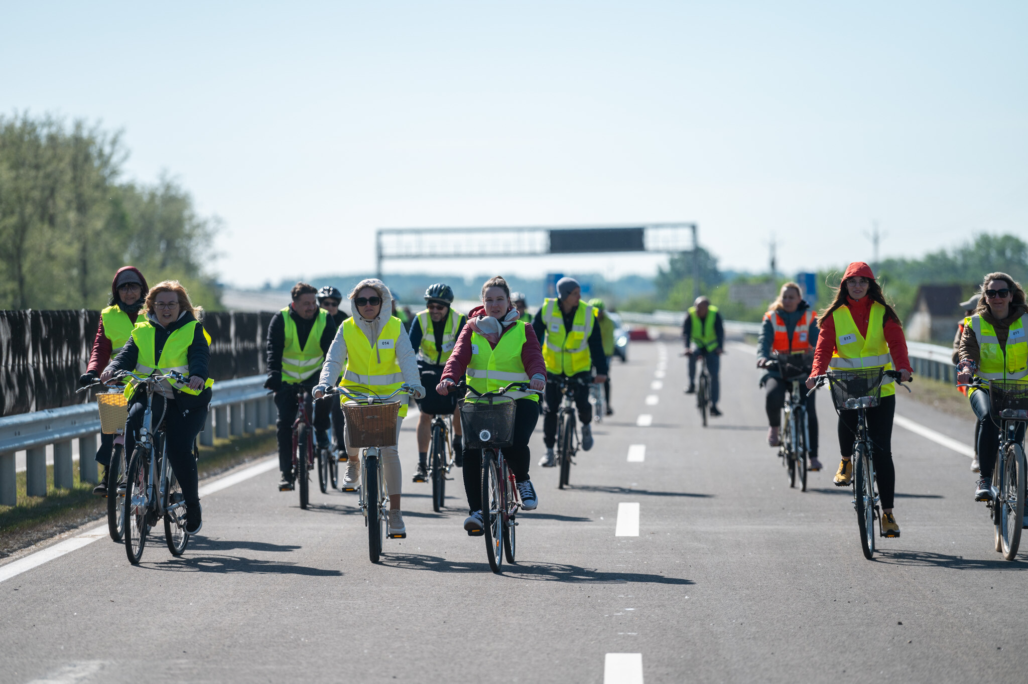 Az okos világítási rendszerrel ellátott pihenőhely felavatása előtt a tradícióknak megfelelően a kivitelező és a megrendelő cég munkavállalói egy kerékpártúrával járták be az újonnan elkészült szakaszt.
