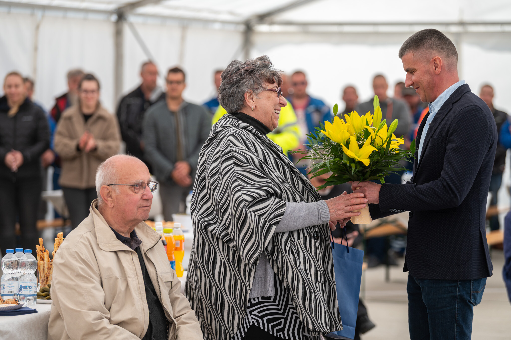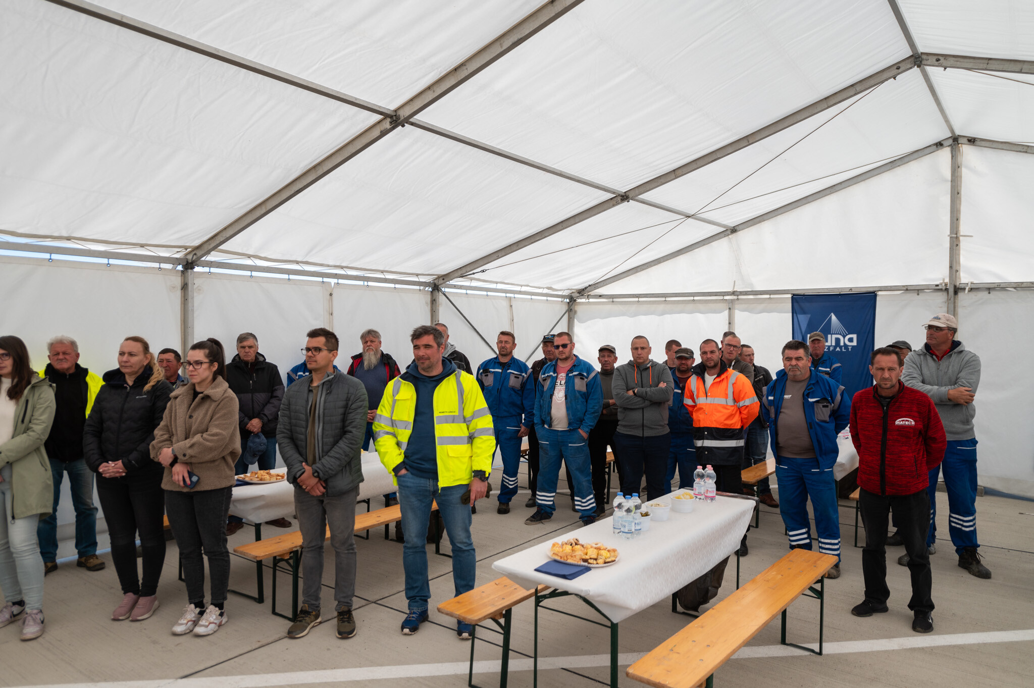„Szeretném most a Laci családjának, azaz nektek és nekünk, azaz a Duna Aszfaltnak is bejelenteni, hogy ez az álom megvalósul, megcsináljuk!” – fogalmazott az alapító-tulajdonos. Zárásként arra biztatott mindenkit, hogy amikor elhalad a pályán a pihenő mellett, süvegelje meg a szakembert, akire méltán nézett fel mindenki a Duna Aszfaltnál.