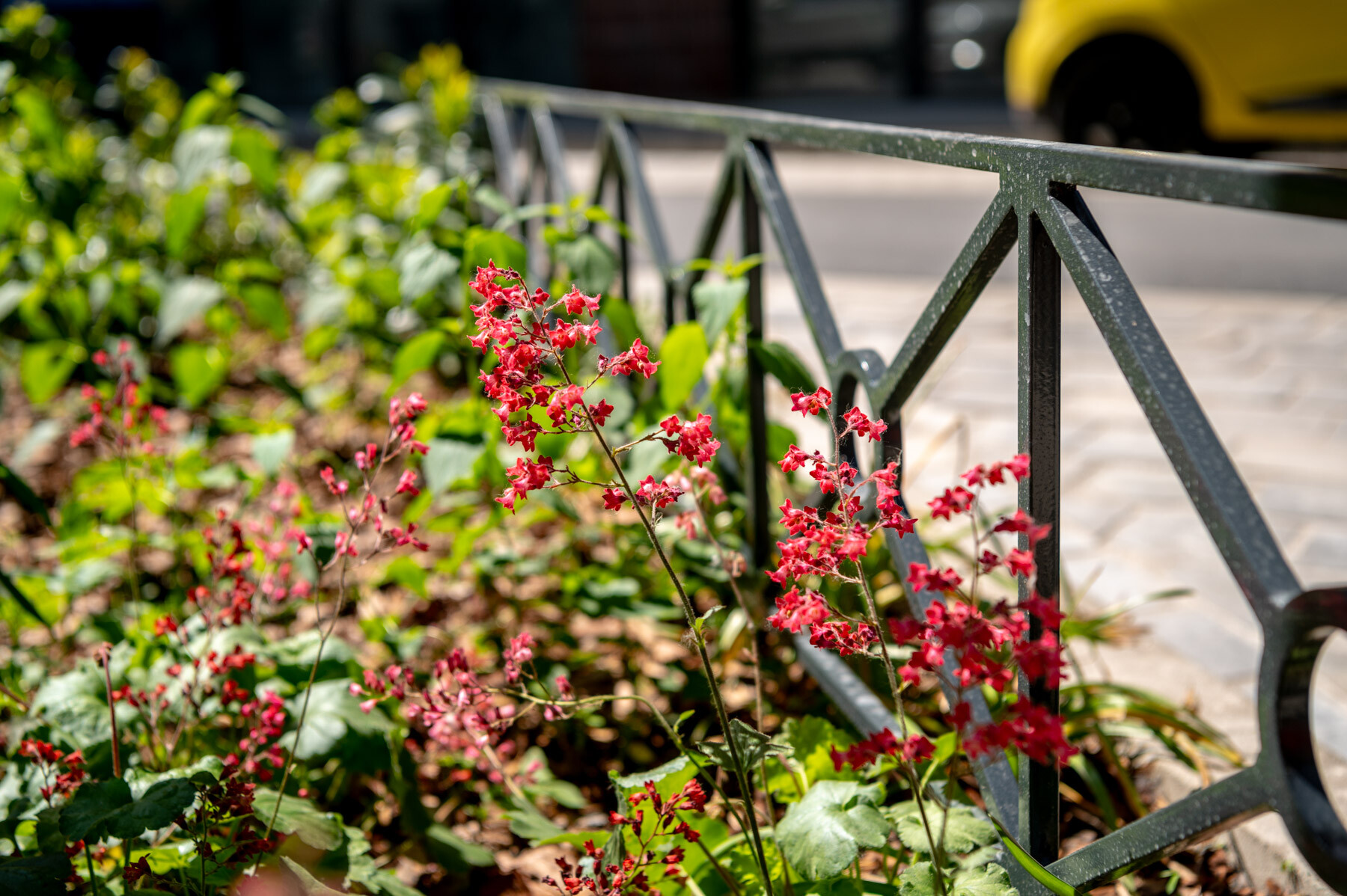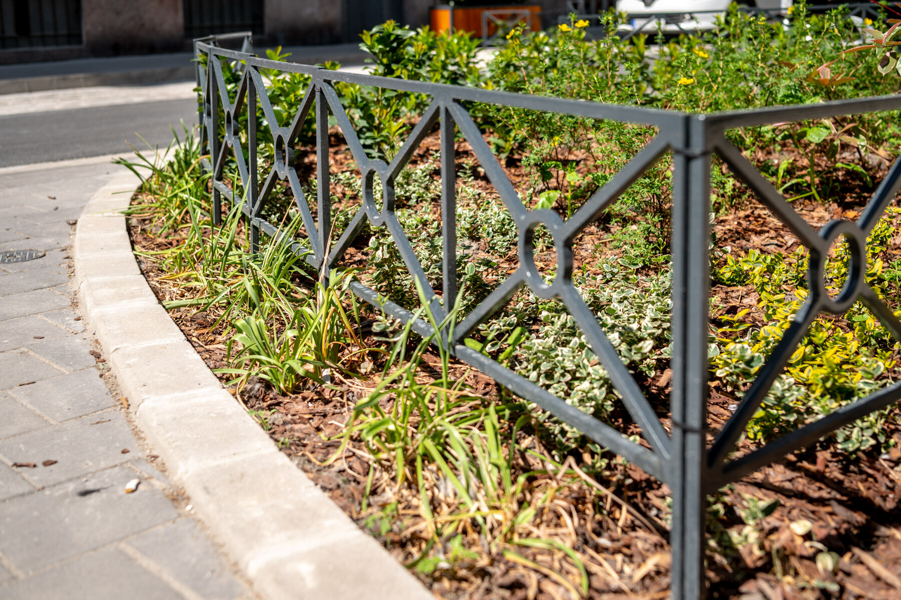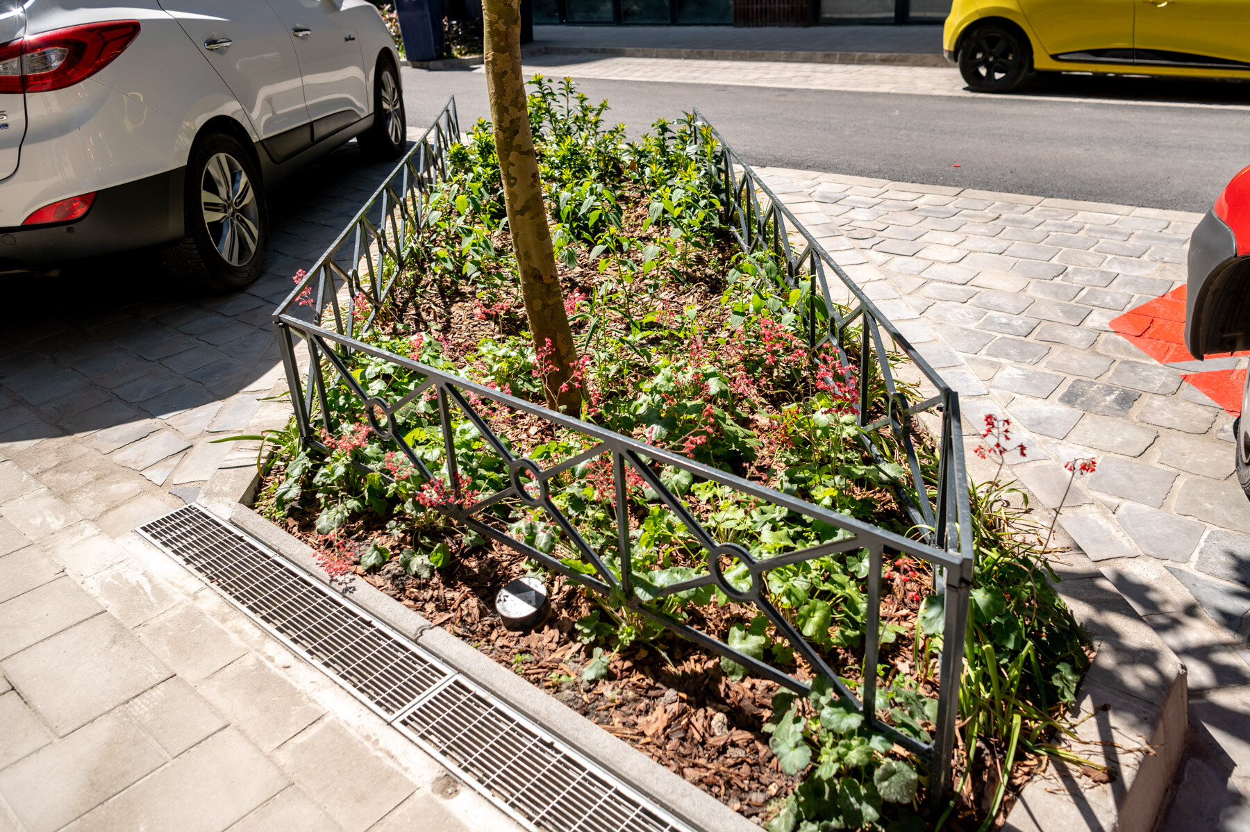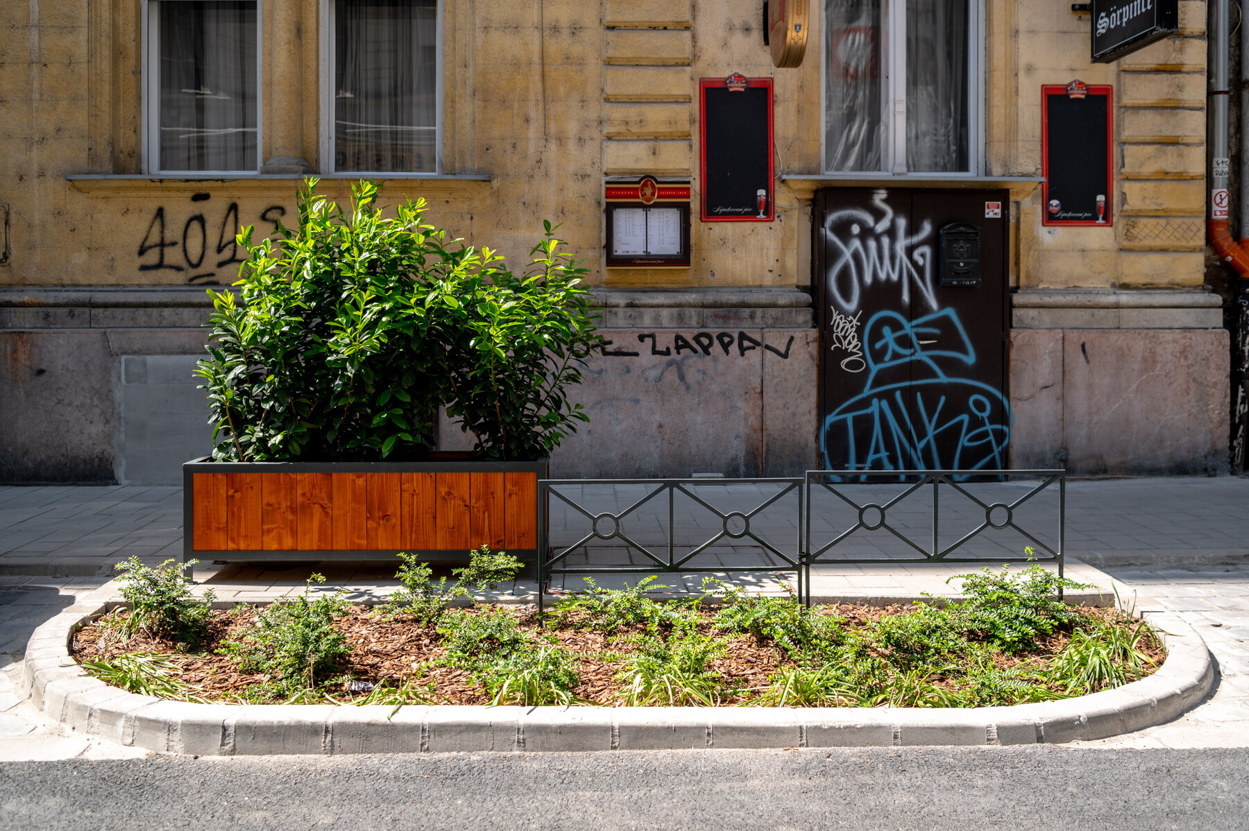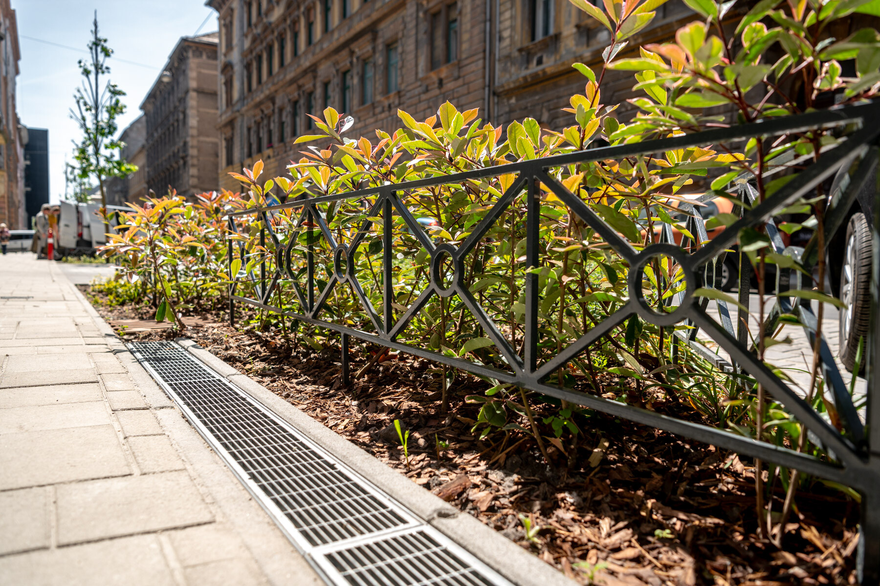 A fejlesztés további fontos elemeként a megújult utcában 20 darab oszlopos platánfát, valamint közel 1700 bokrot és cserjét ültettek ki a kockakő burkolat helyén újonnan létesített zöld szigetekbe. A növények jólétéről vezetékes öntöző rendszer és speciális ültetőközeg gondoskodik a belvárosi környezetben. A szigetekbe ültetett növényeket díszkerítés óvja a közlekedőktől, kutyáktól.