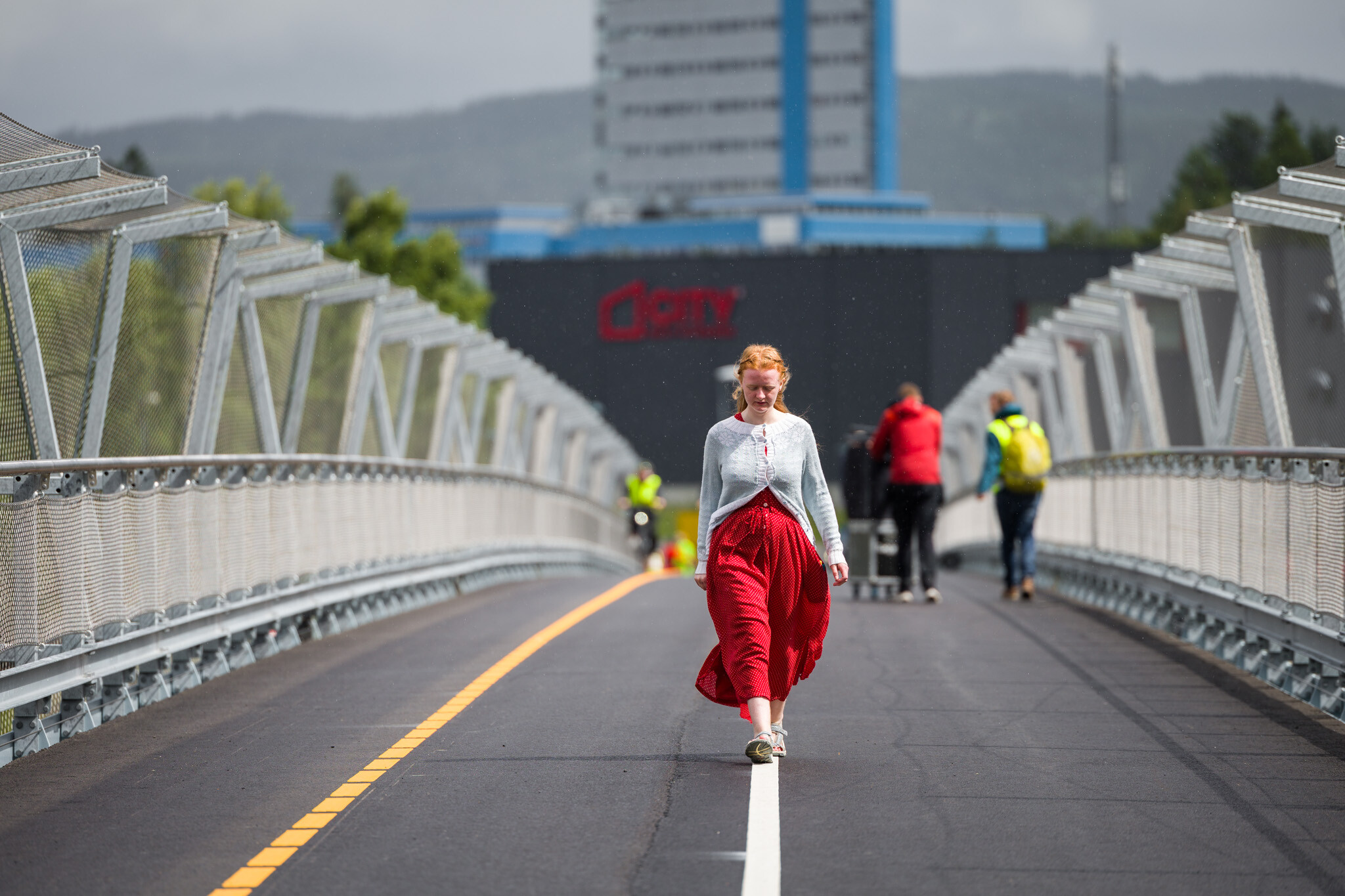 Érdekesség, hogy az átadón a profi országúti kerékpáros Idar Andersen és a norvég másodosztályban játszó focista, Michael Stilson versenyzett a hídon, hangsúlyozva, hogy egy kerékpáros-gyalogos híd épült.