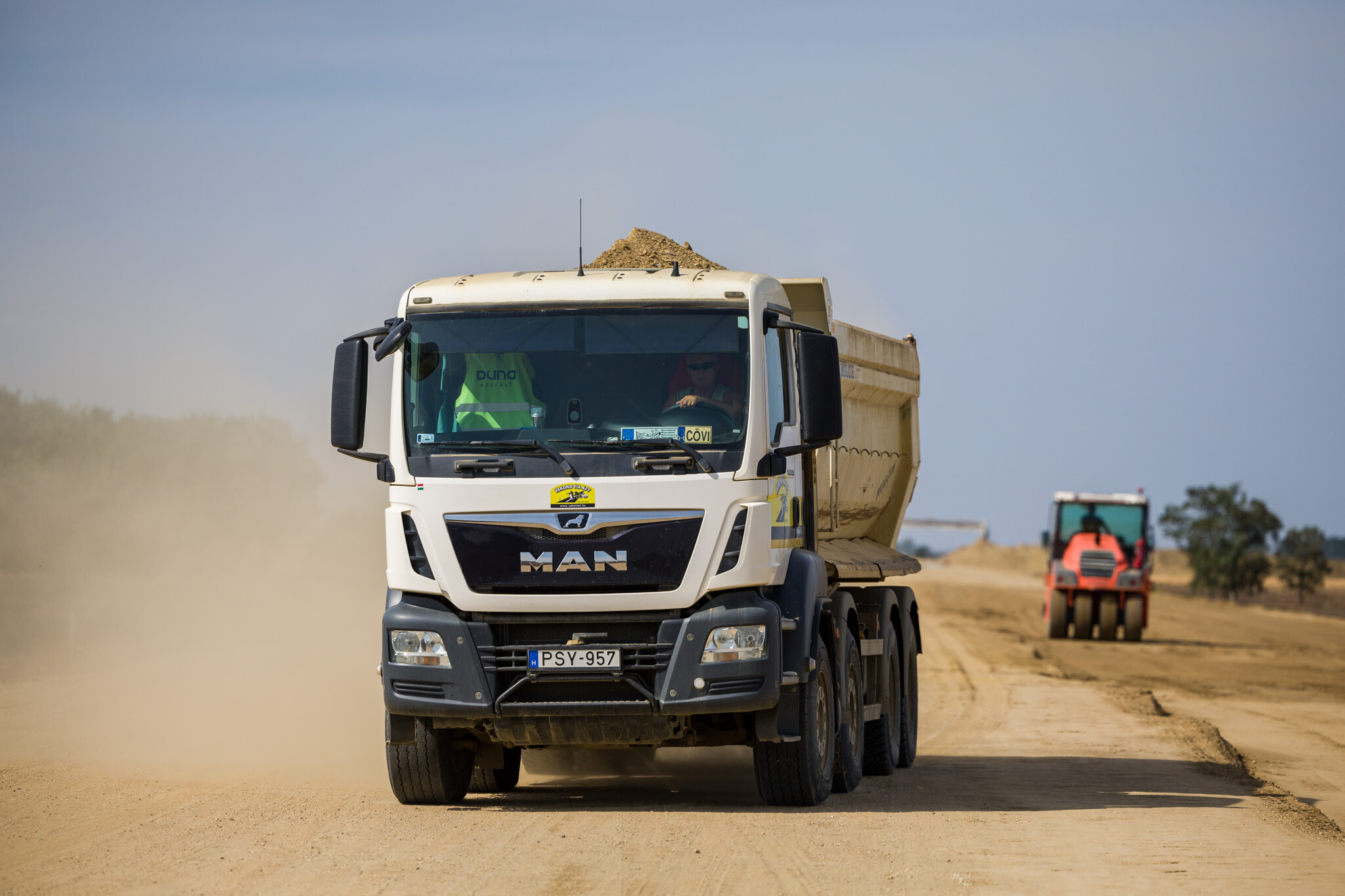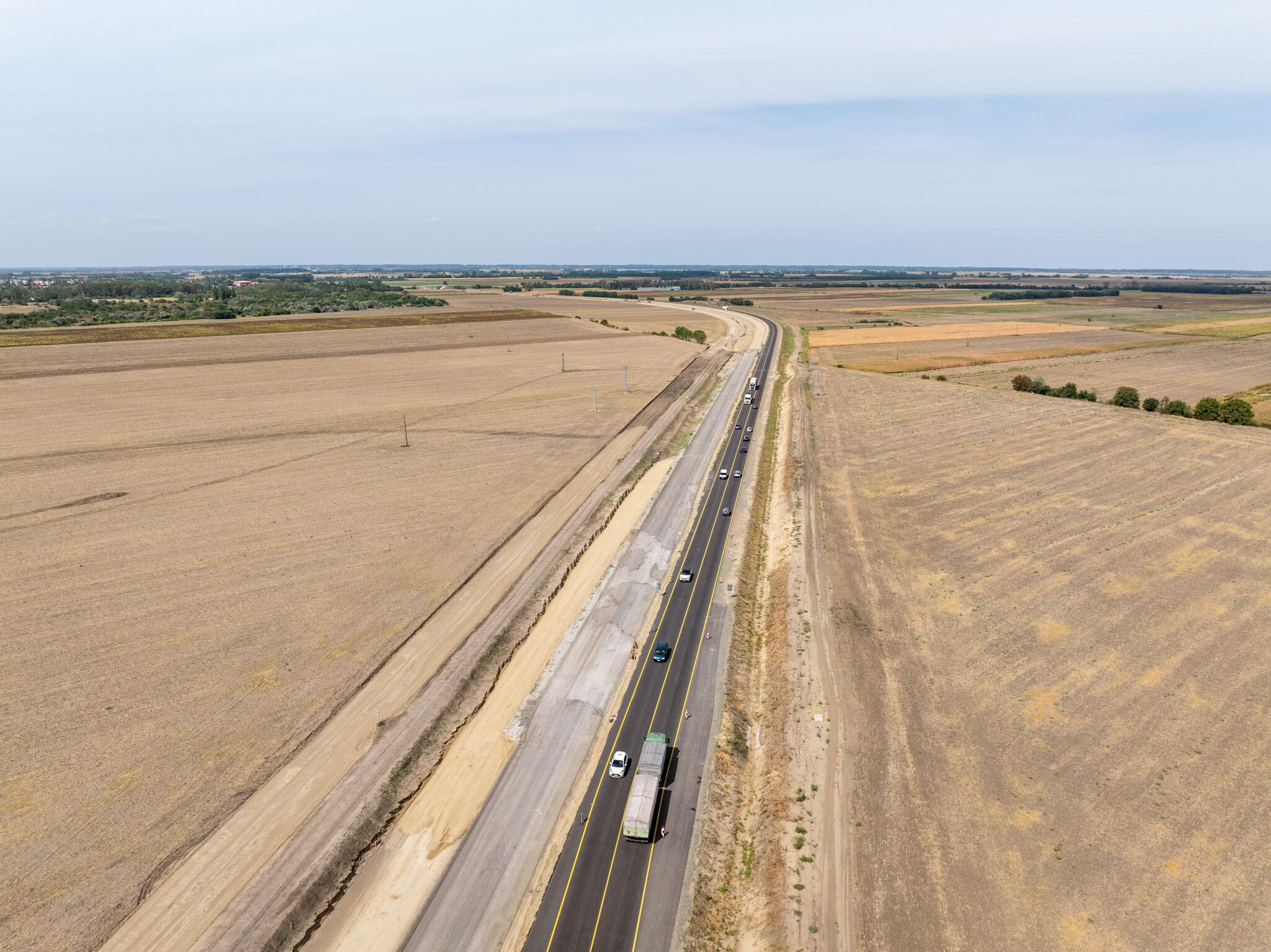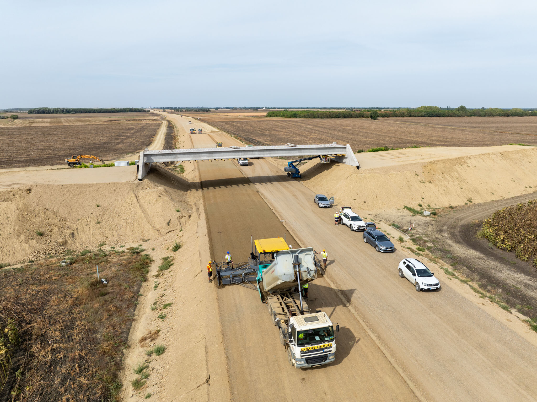 A Törökszentmiklós és Kisújszállás közötti közel 35 kilométeres szakaszon ugyanakkor már az új nyomvonalon is aszfaltoznak a Duna Aszfalt generálkivitelezésében zajló projektben.