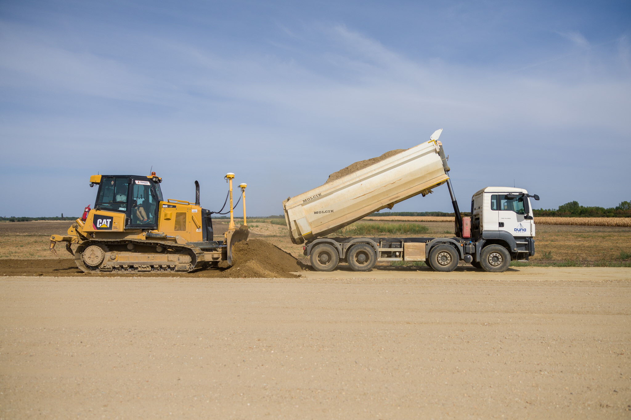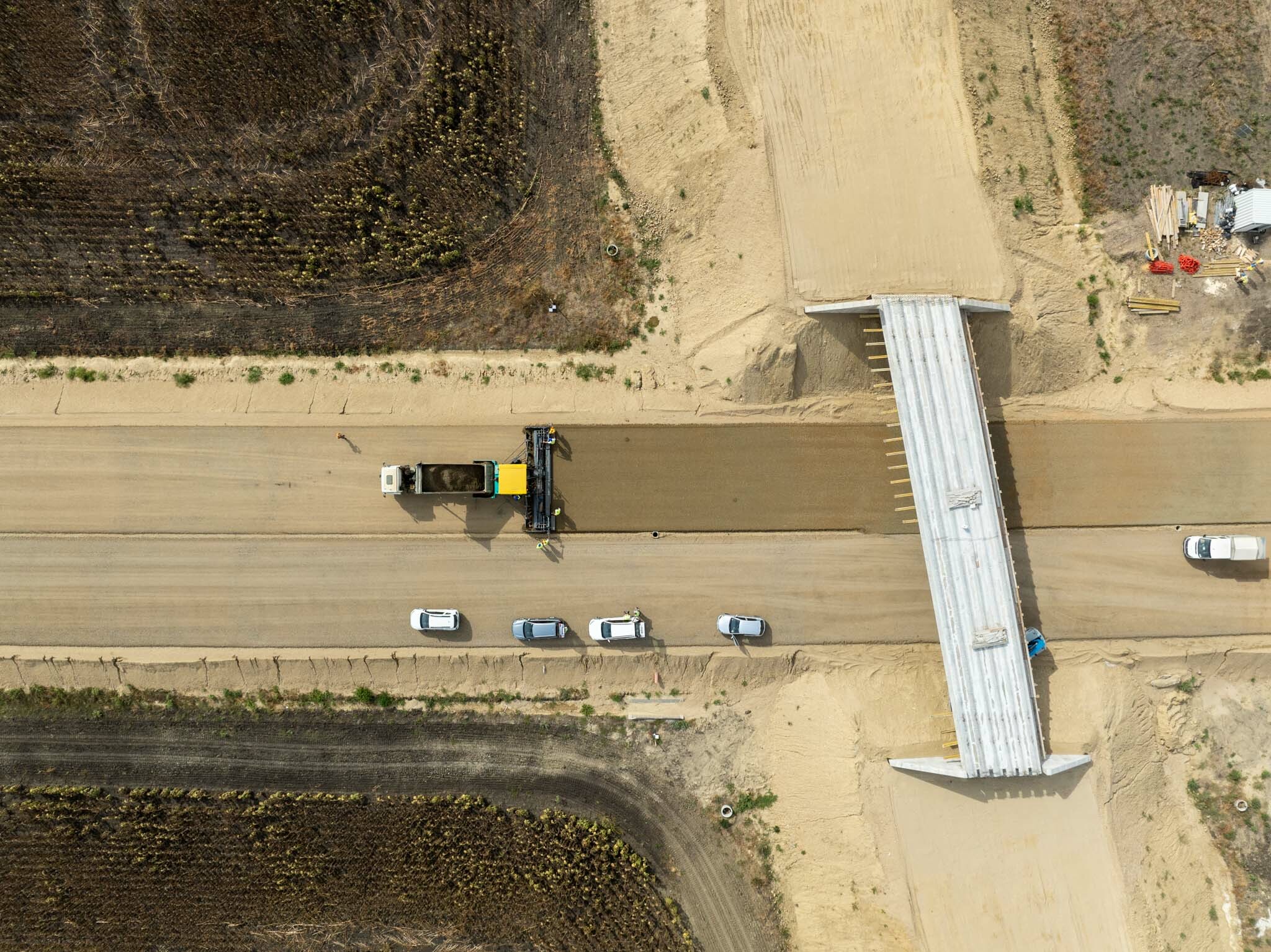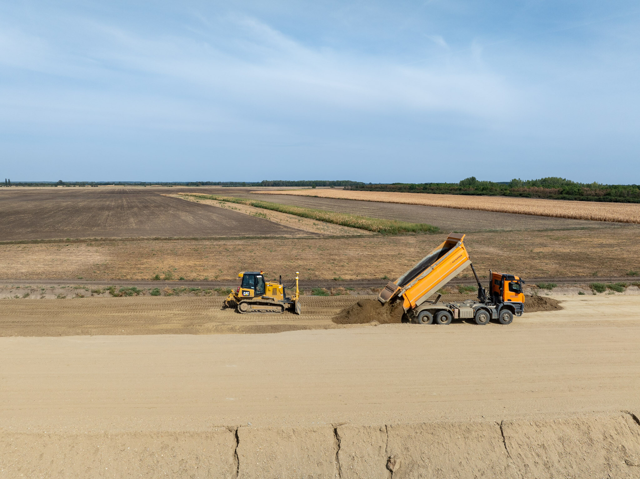A Törökszentmiklós és Kisújszállás közötti közel 35 kilométeres szakaszon ugyanakkor már az új nyomvonalon is aszfaltoznak a Duna Aszfalt generálkivitelezésében zajló projektben.