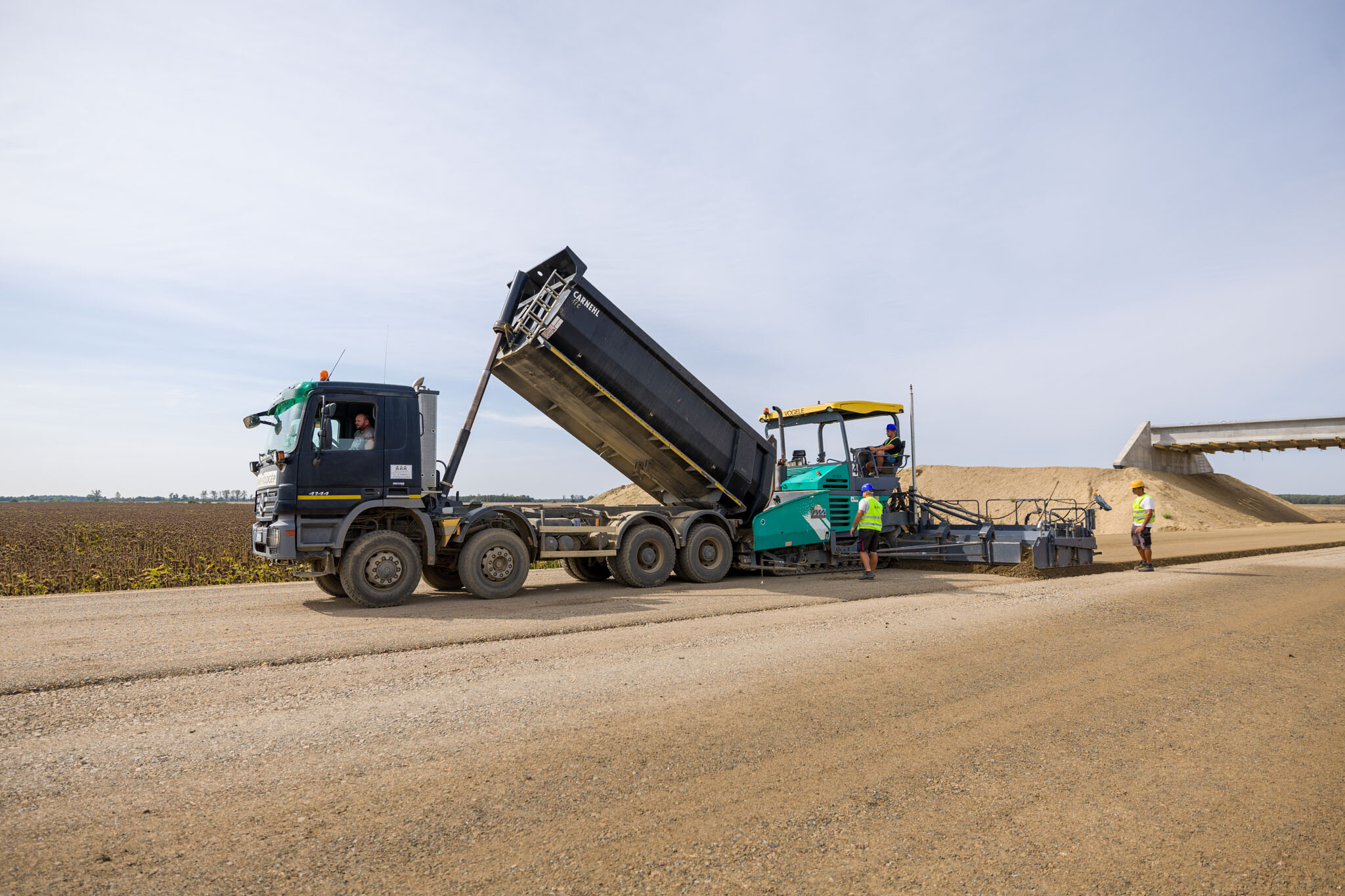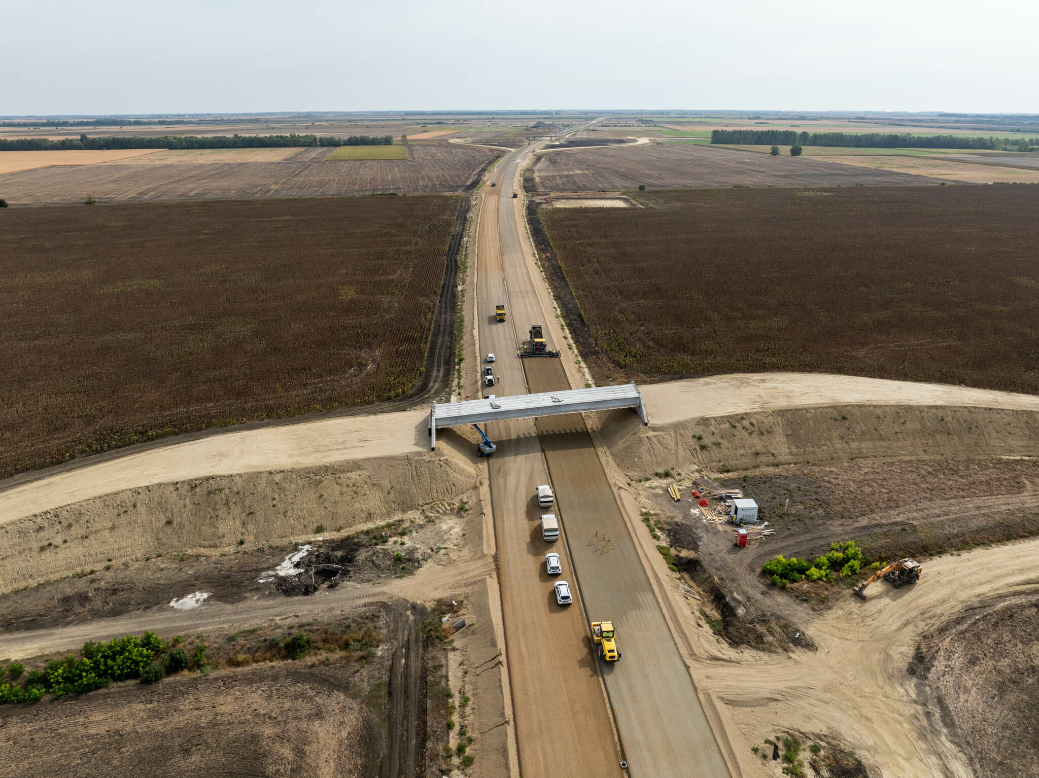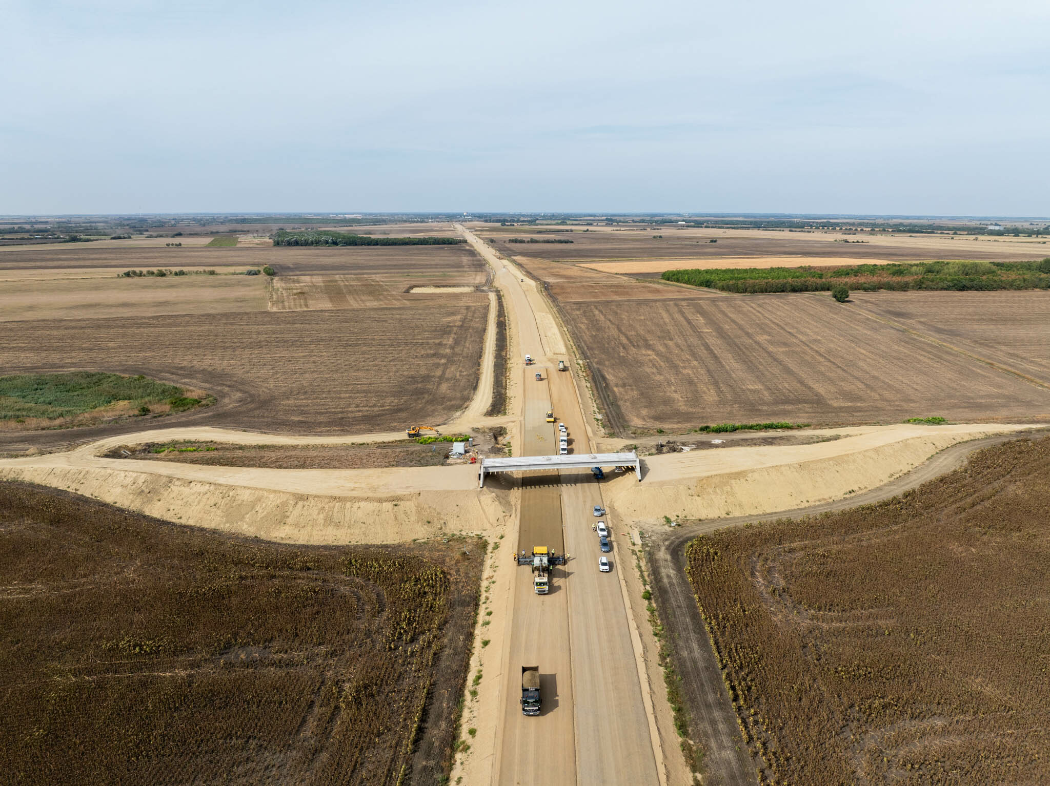 Ugyanitt megkezdődött az FZKA-útalap építése, és augusztus végéig 11 kilométeren mindkét oldalon elkészült. „Ugyanakkor zajlanak az aszfaltozási munkák: a 9-9 cm vastagságú AC-16 kötő mI és AC-22 mI kötőrétegből 10 km megépült.”